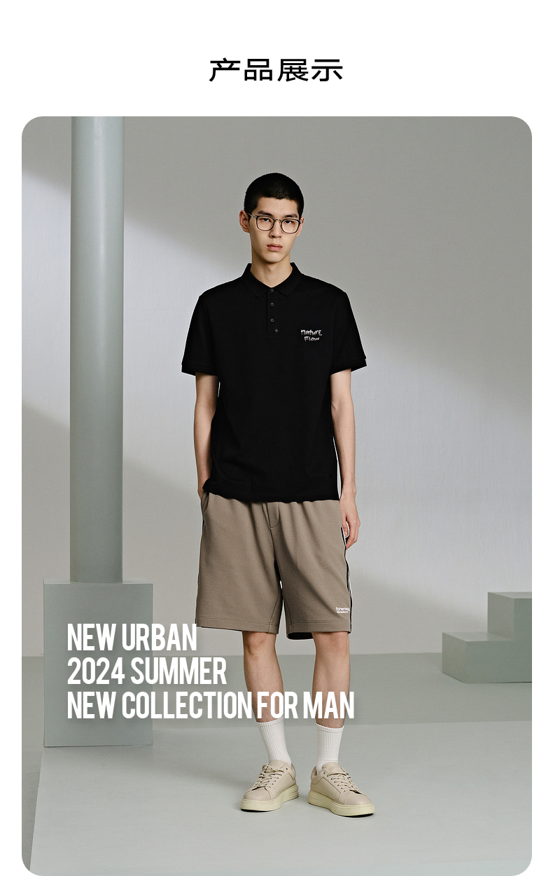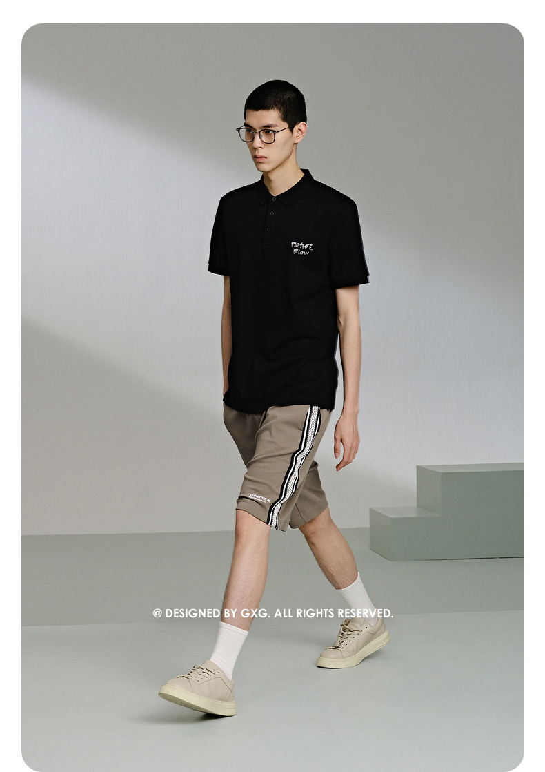 GXG男装 肌理感休闲短裤织带运动短裤 24年夏G24X222010