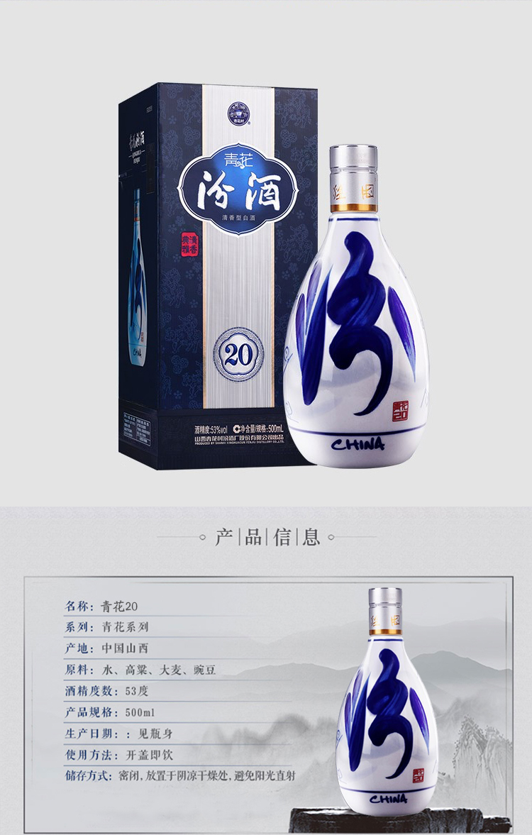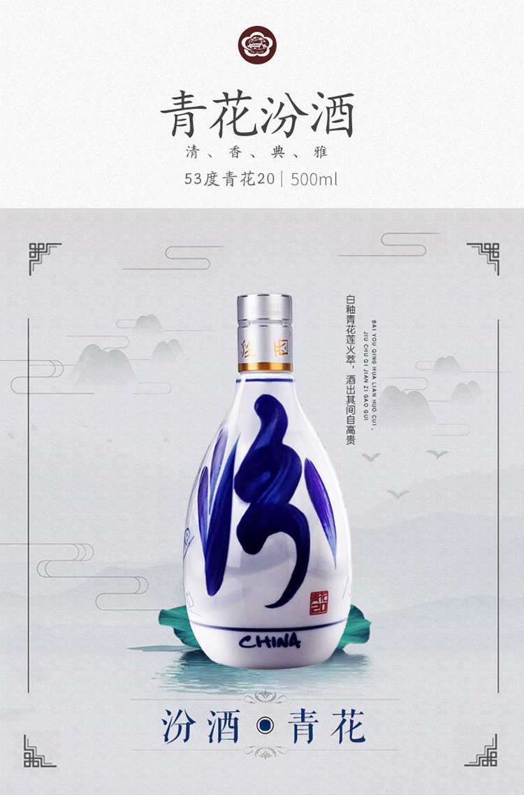 汾酒 白酒 青花20 清香型 高度白酒 53度 500ml