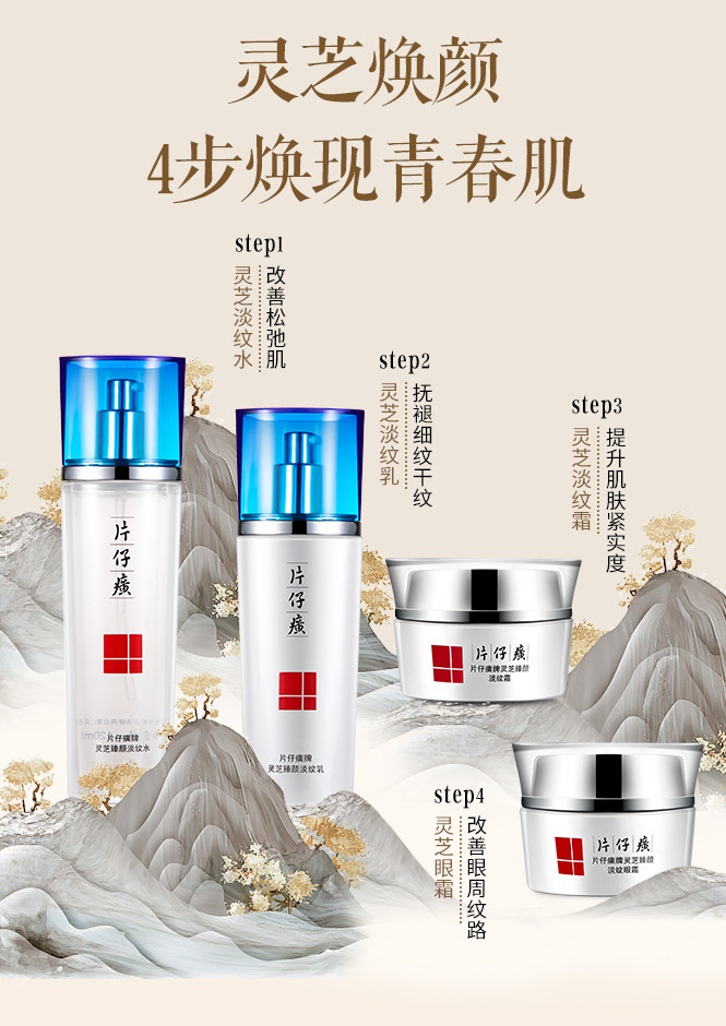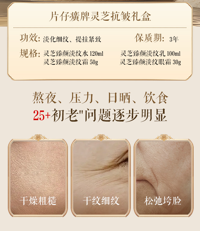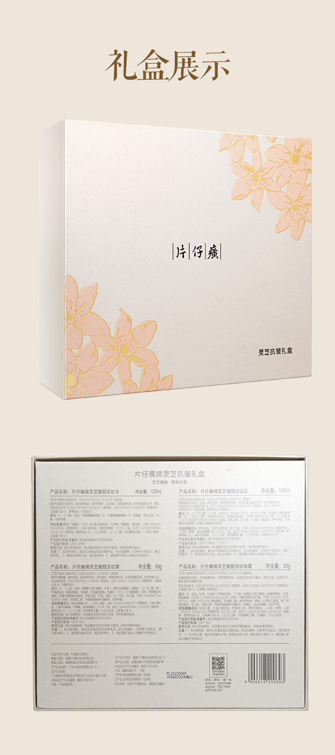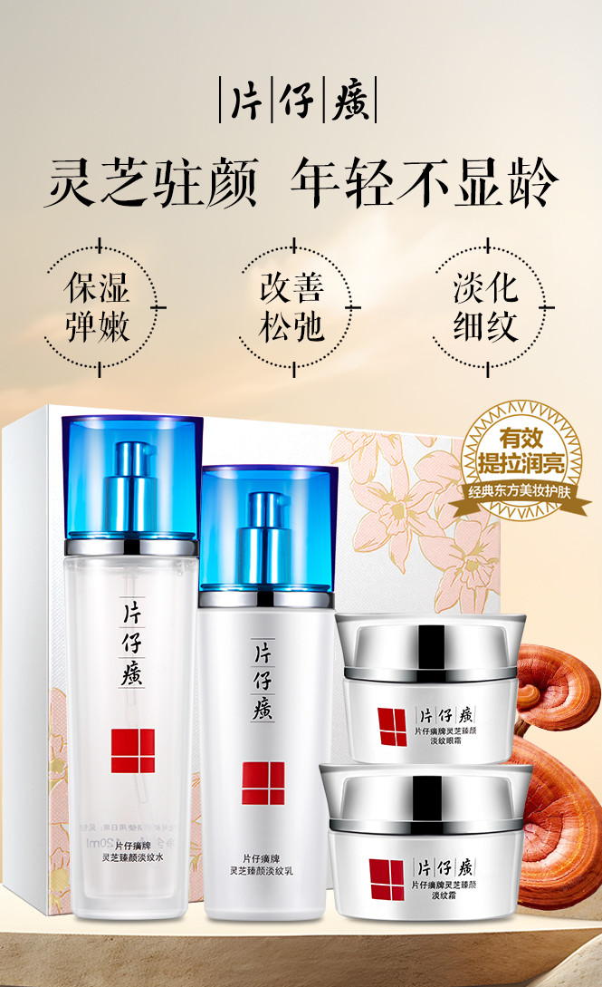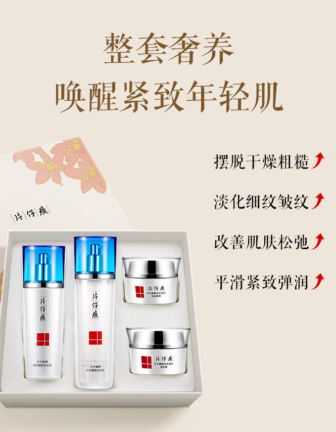 【片仔癀灵芝抗皱4件套装】 紧致淡纹保湿补水护肤品礼盒水乳眼霜面霜