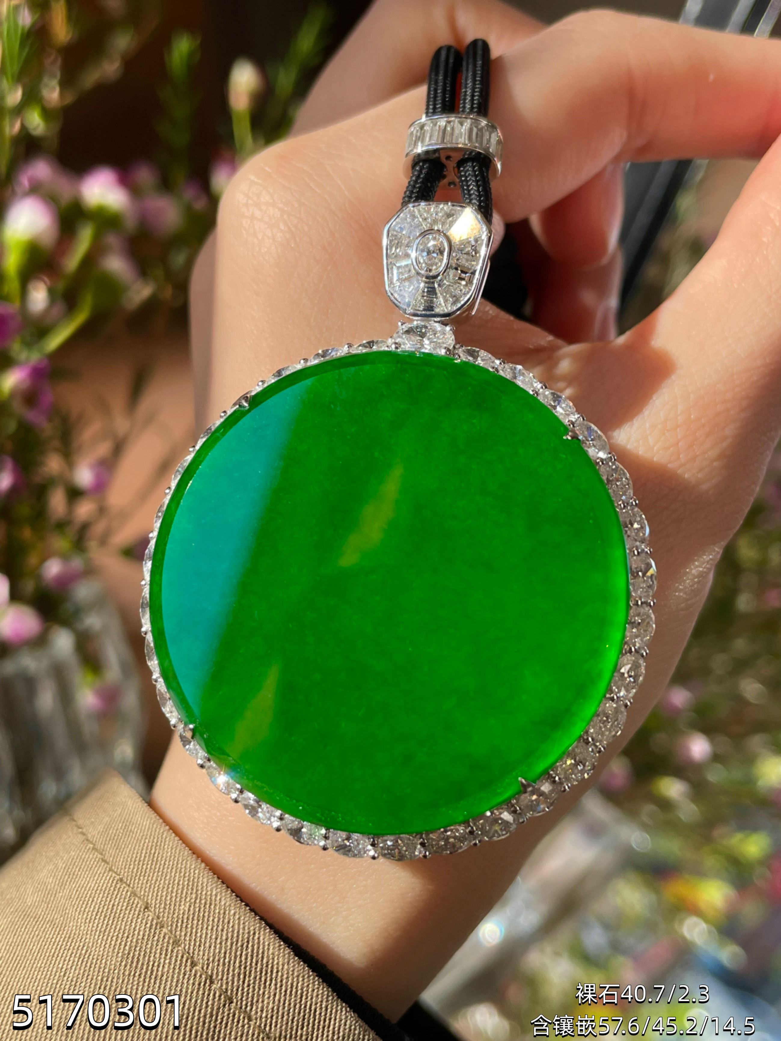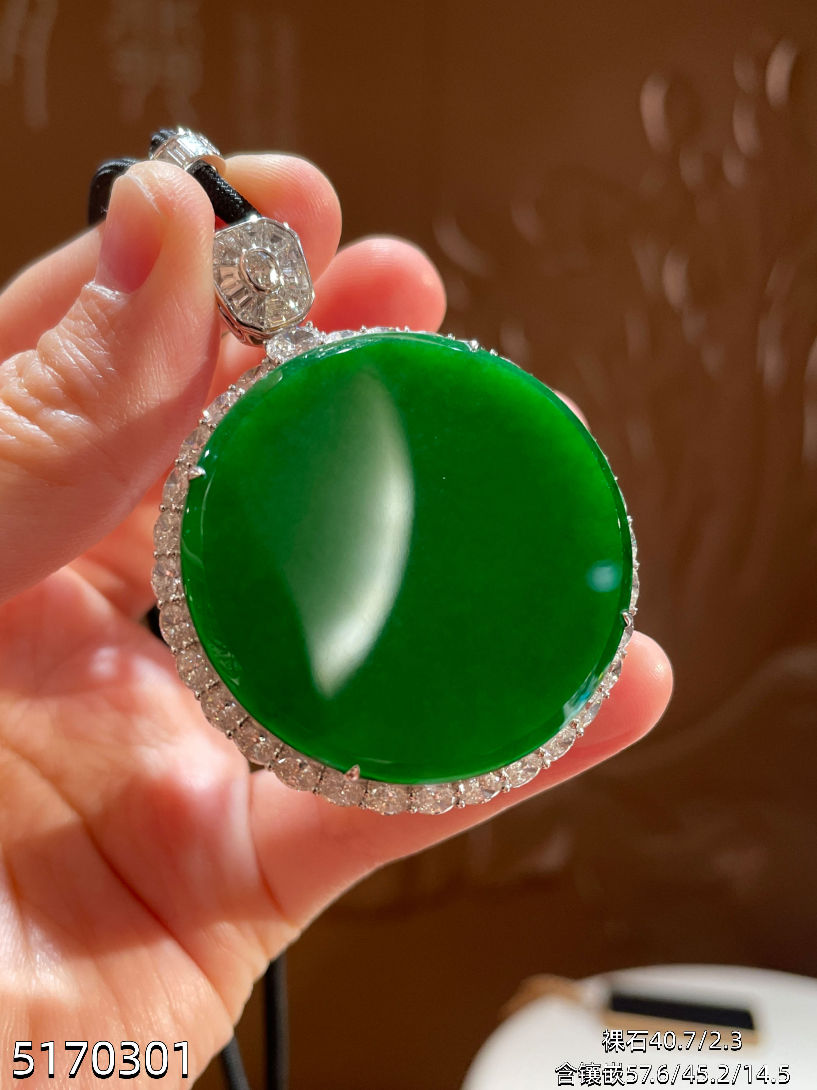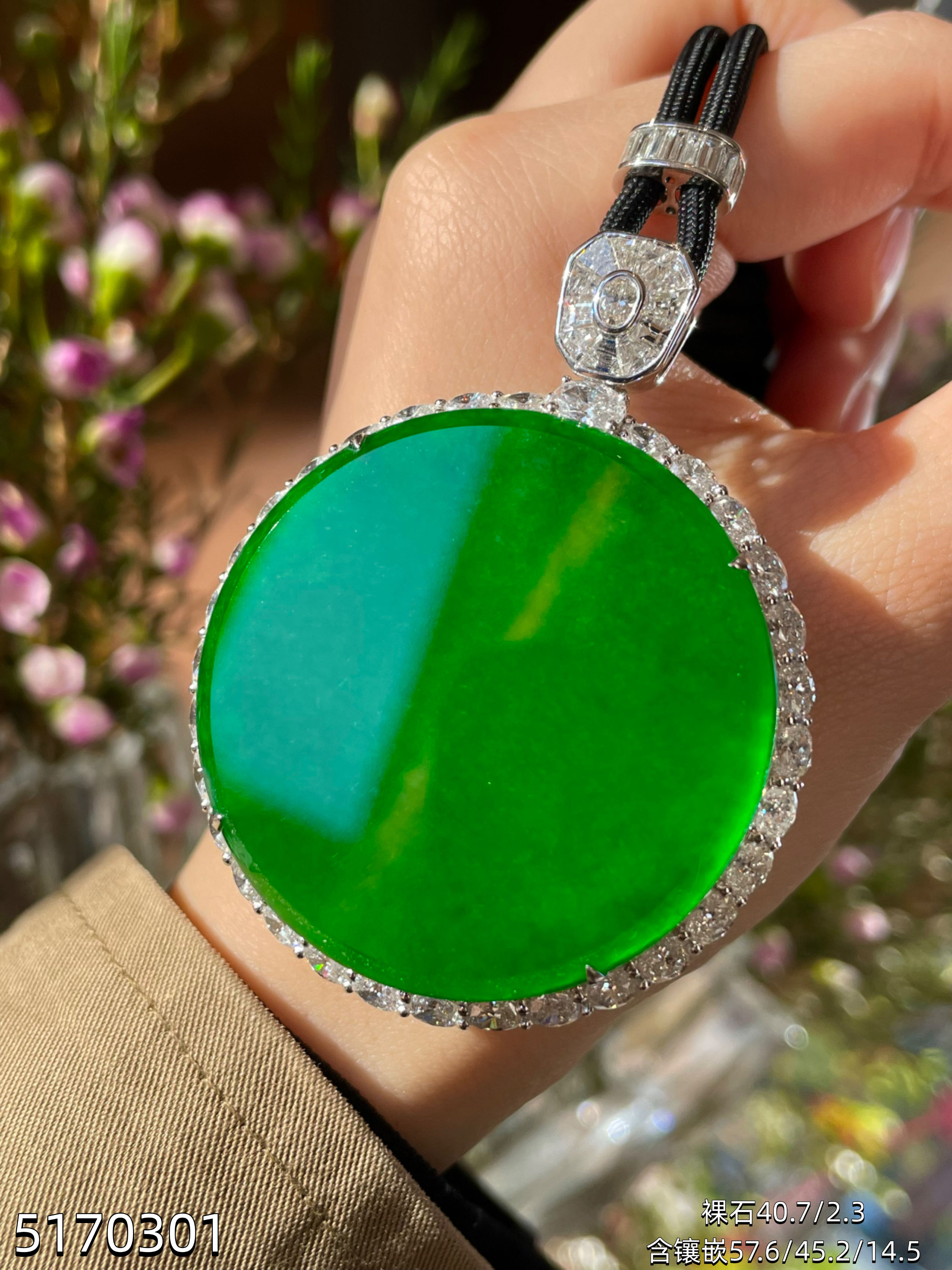 老坑艳绿圆牌吊坠【5170301】具体价格微信咨询