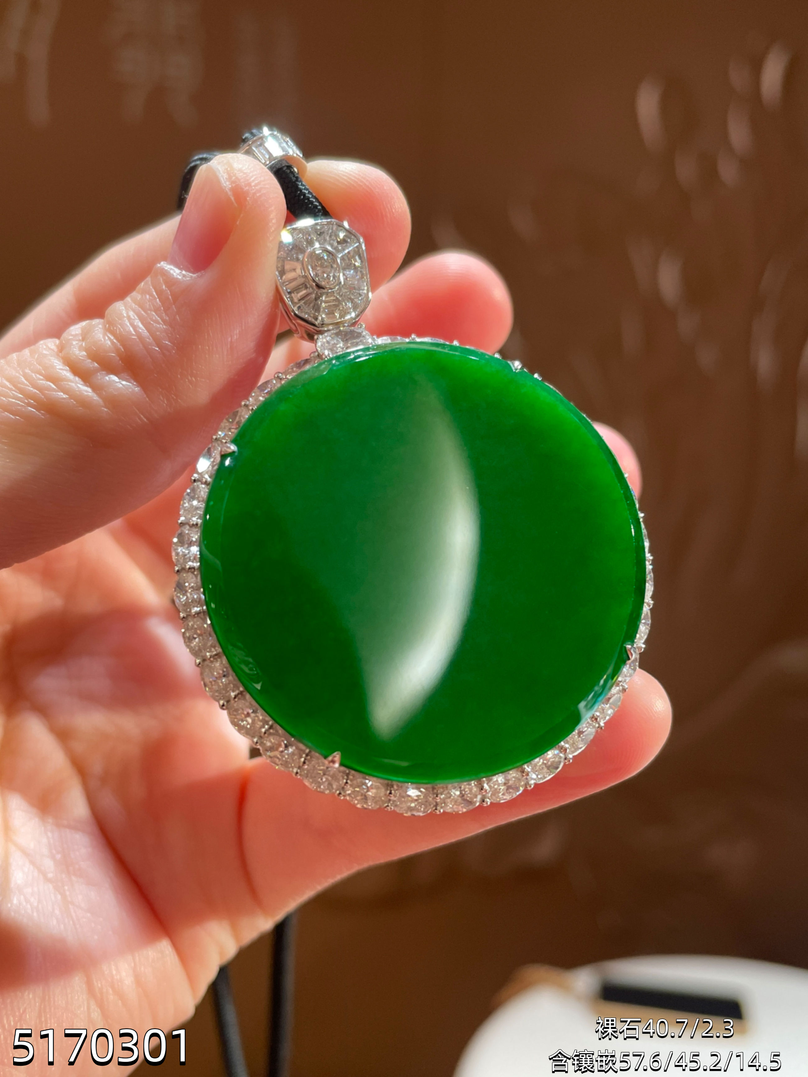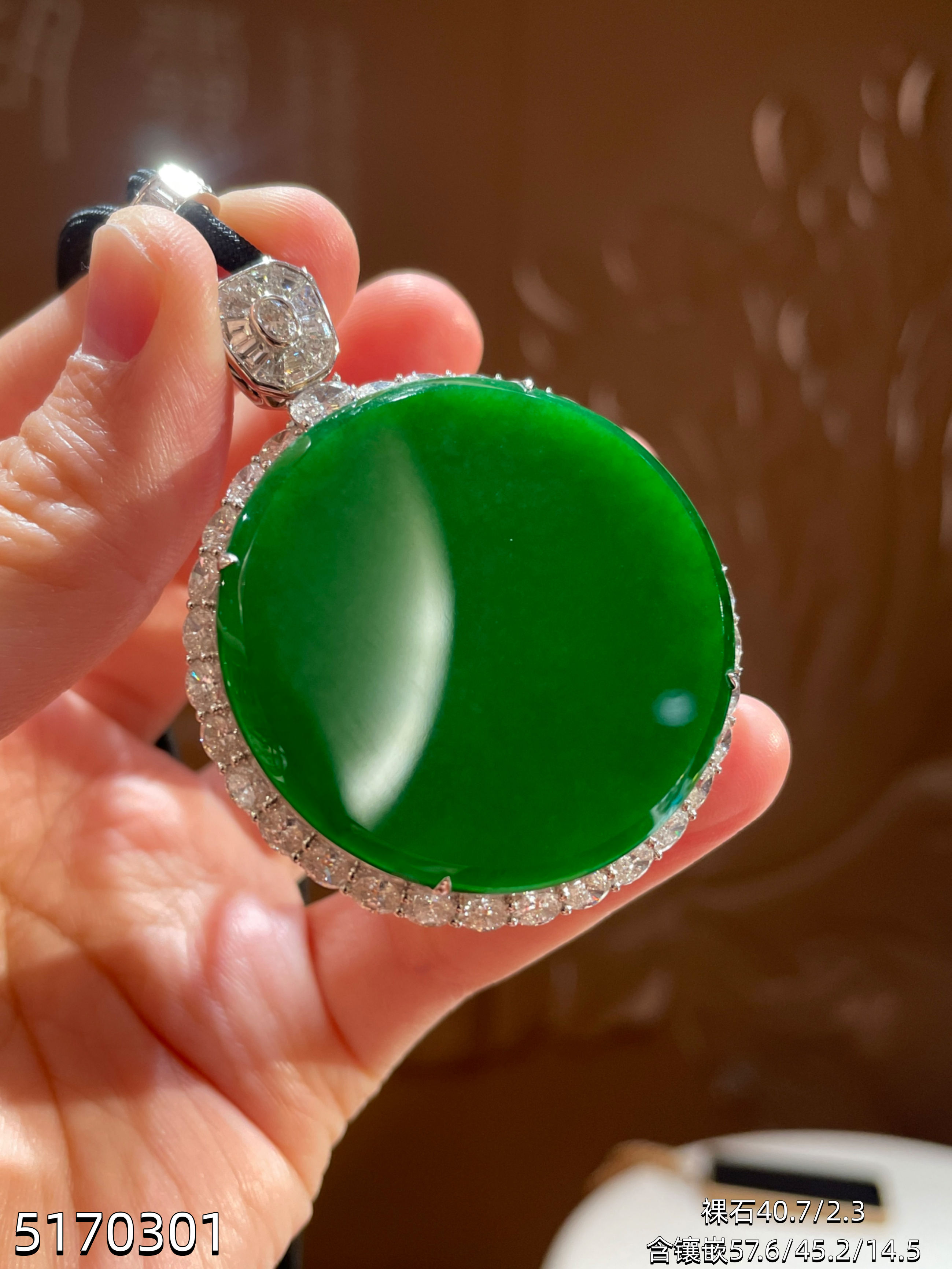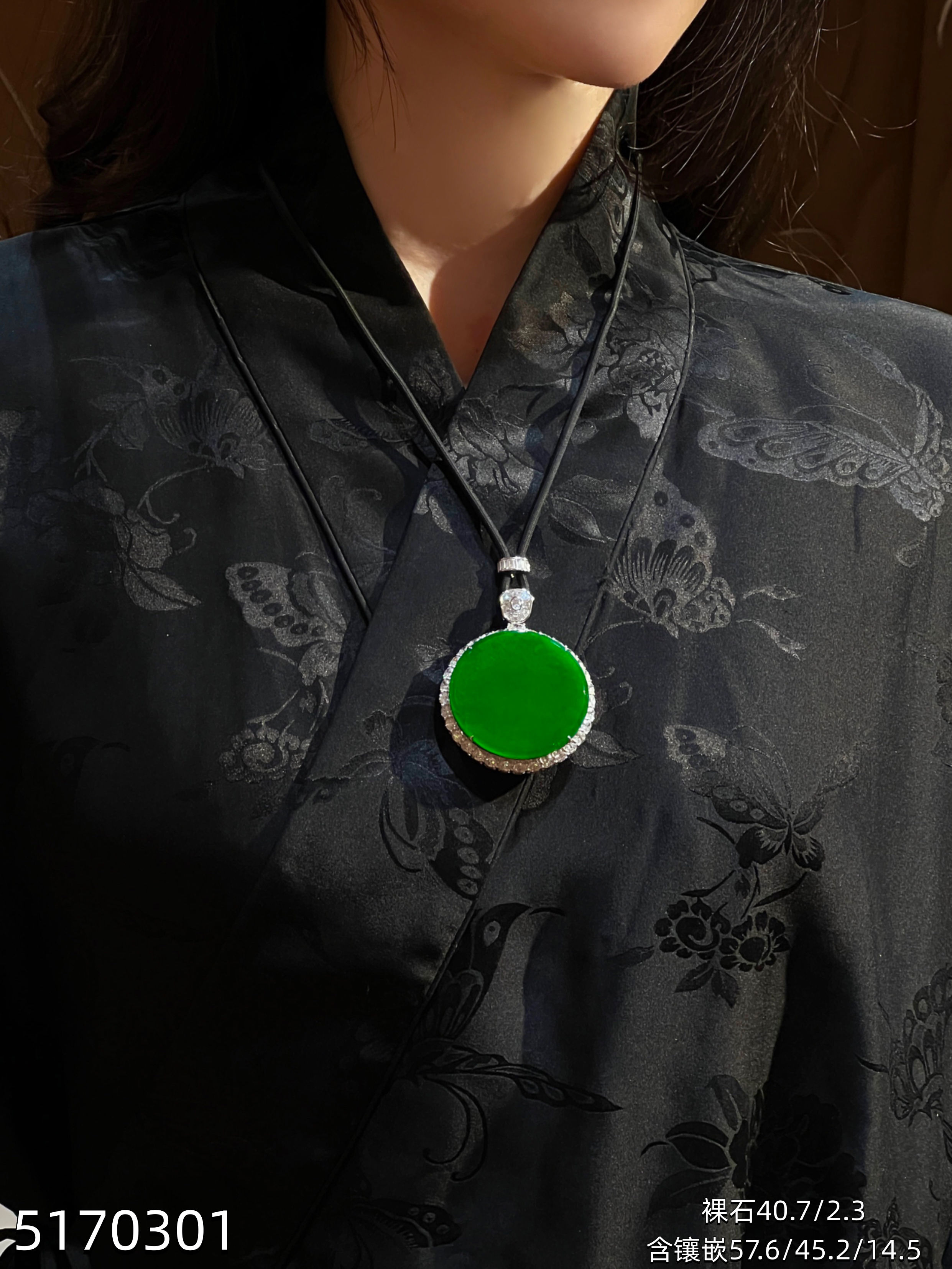 老坑艳绿圆牌吊坠【5170301】具体价格微信咨询