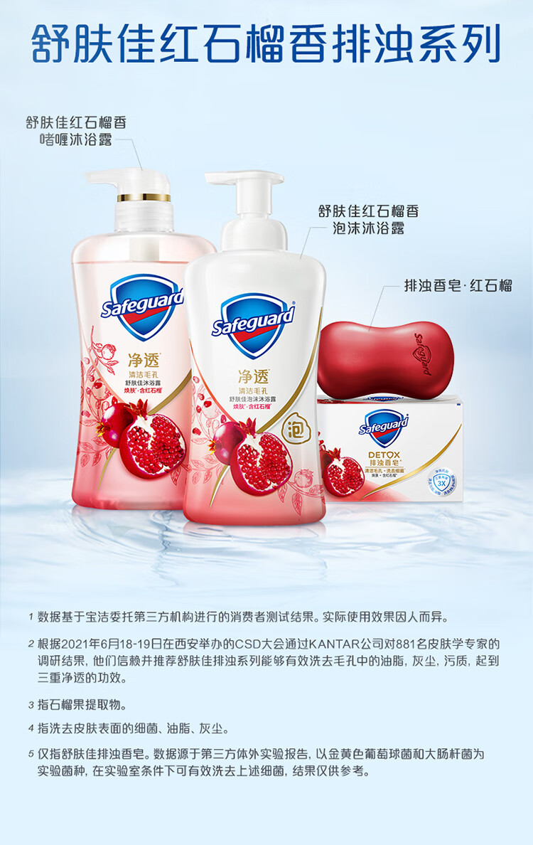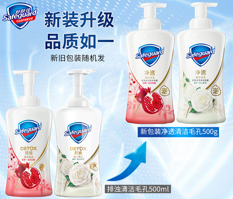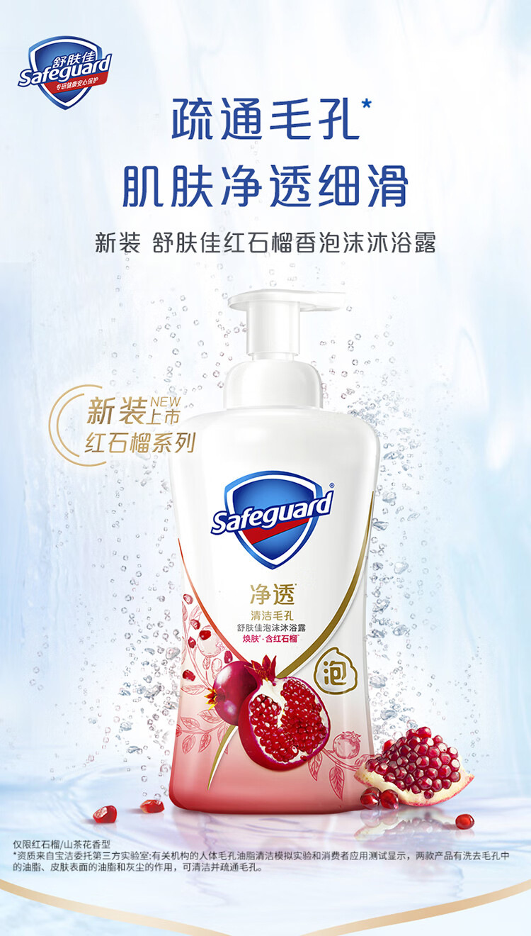 「绵密泡沫~两款香型」舒肤佳泡沫沐浴露500g 红石榴山茶花泡泡沐浴露排浊净透清洁毛孔