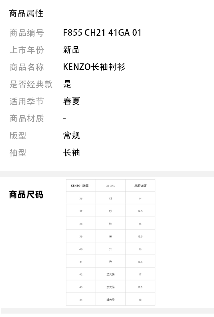 KENZO 高田贤三 男士长袖衬衫 白色 F855 CH214 1GA 01