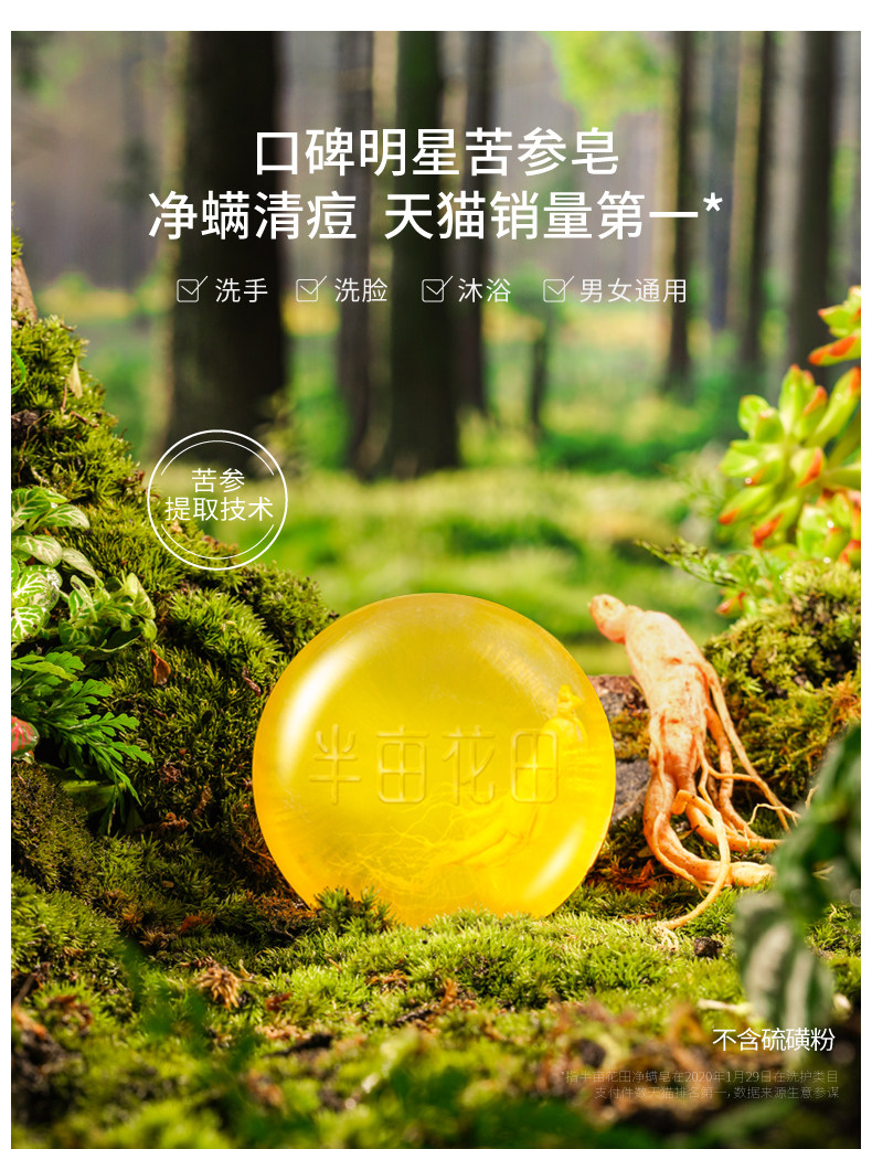 半亩花田苦参除螨皂【正品带防伪】洗脸硫磺皂非海盐香皂面部男女深层清洁手工皂