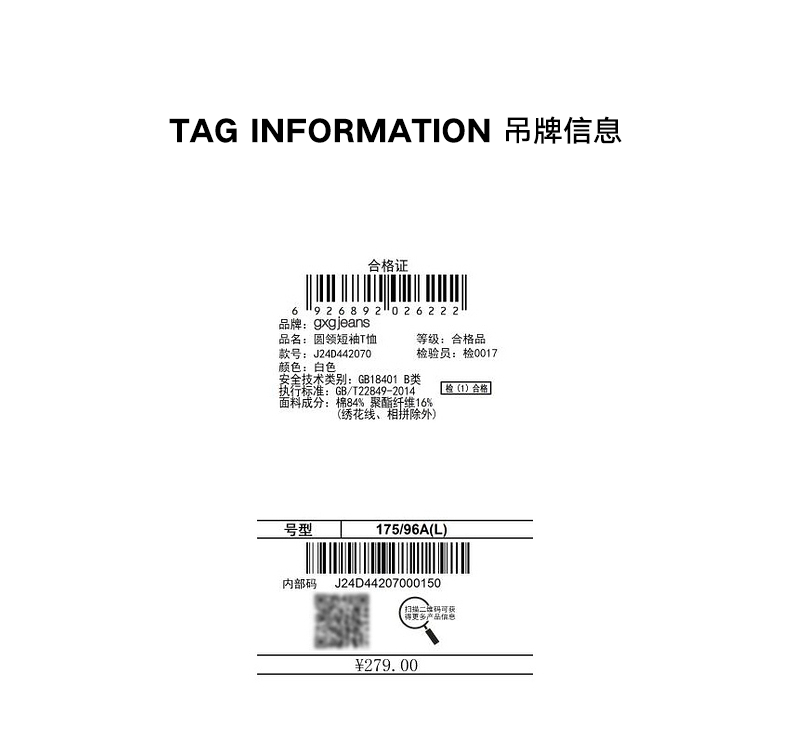 gxg.jeans男装夏季热卖圆领短袖T恤J24D442070