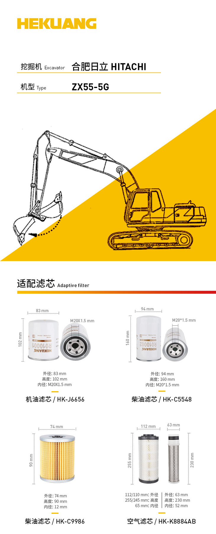 日立ZX55-5G挖掘机滤芯 机油柴油空气滤芯 液压油先导滤芯