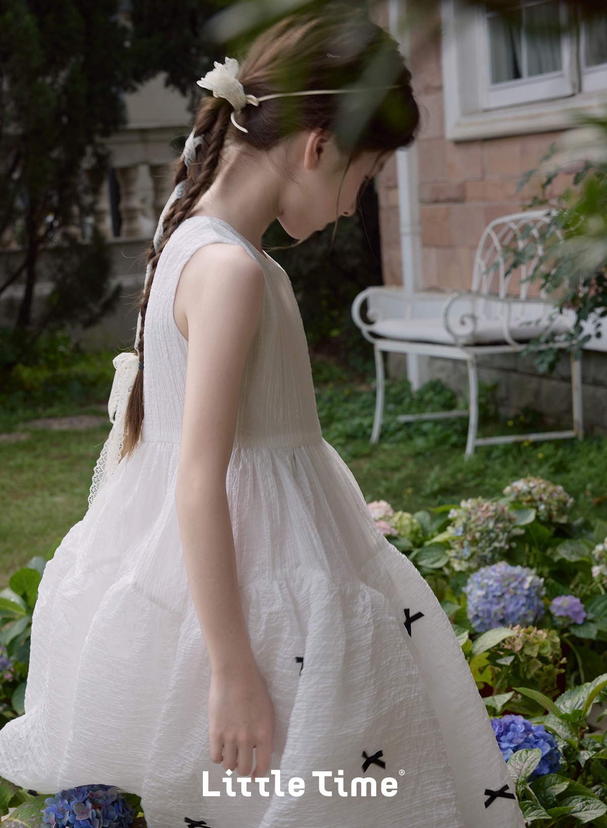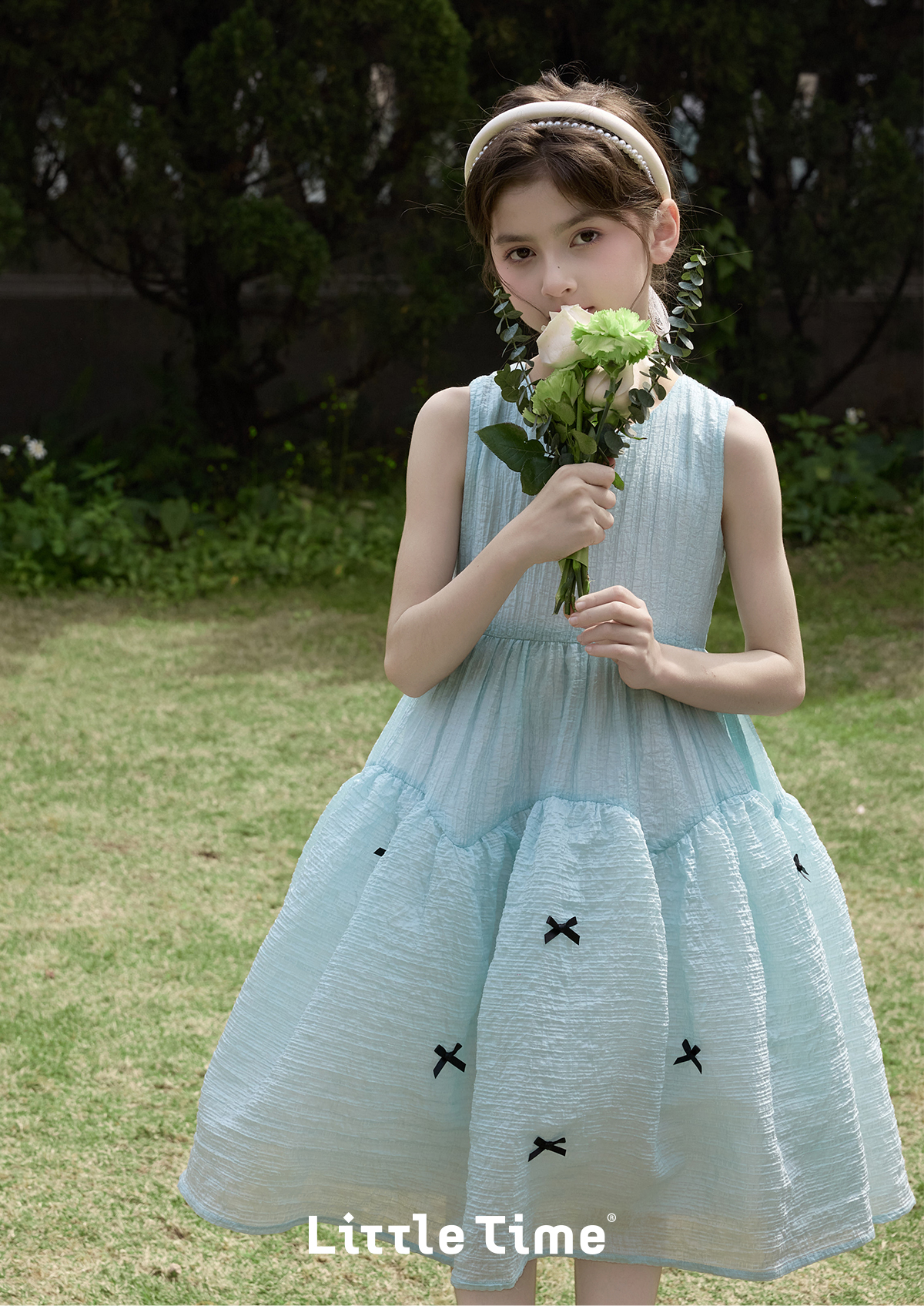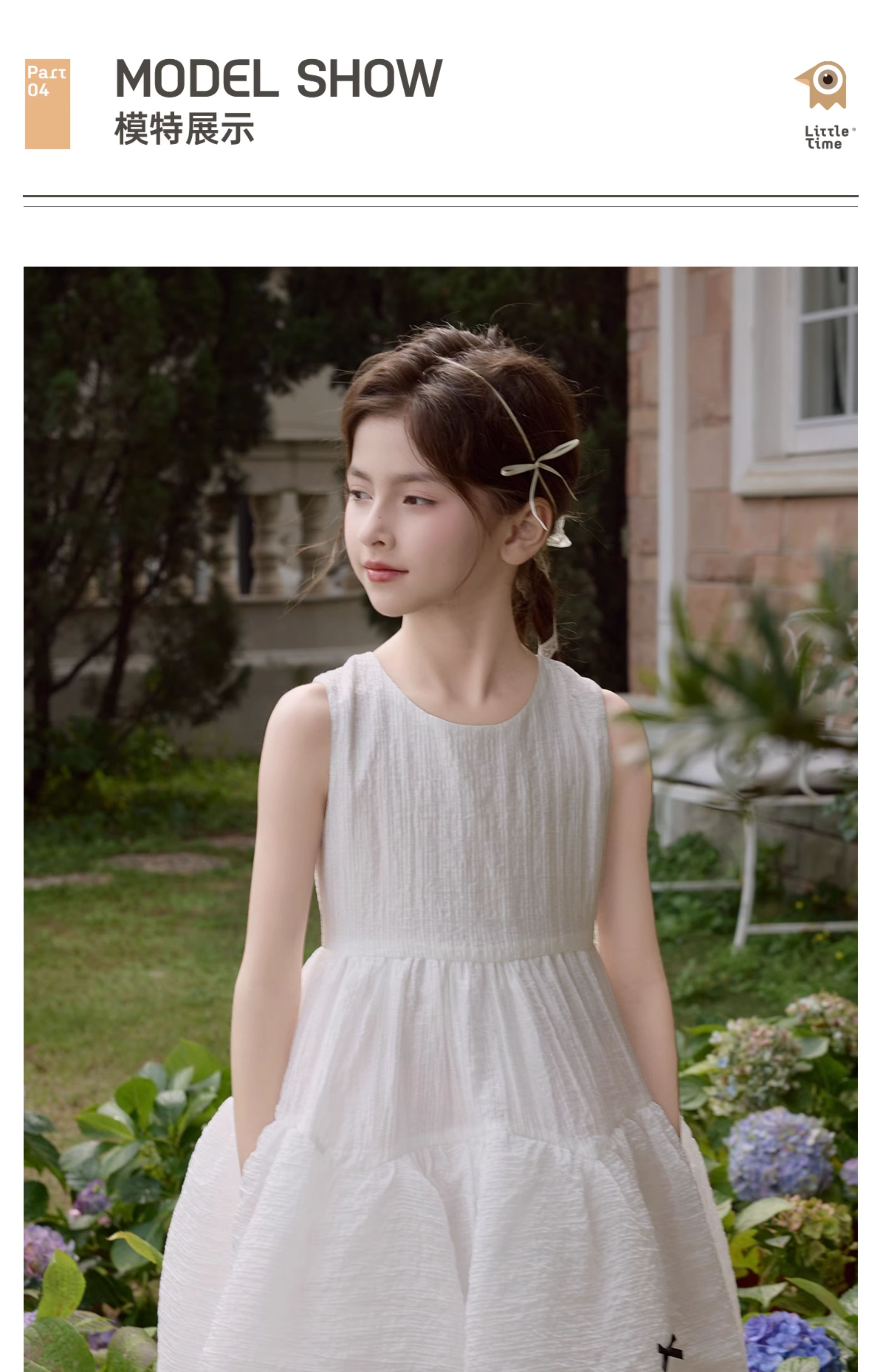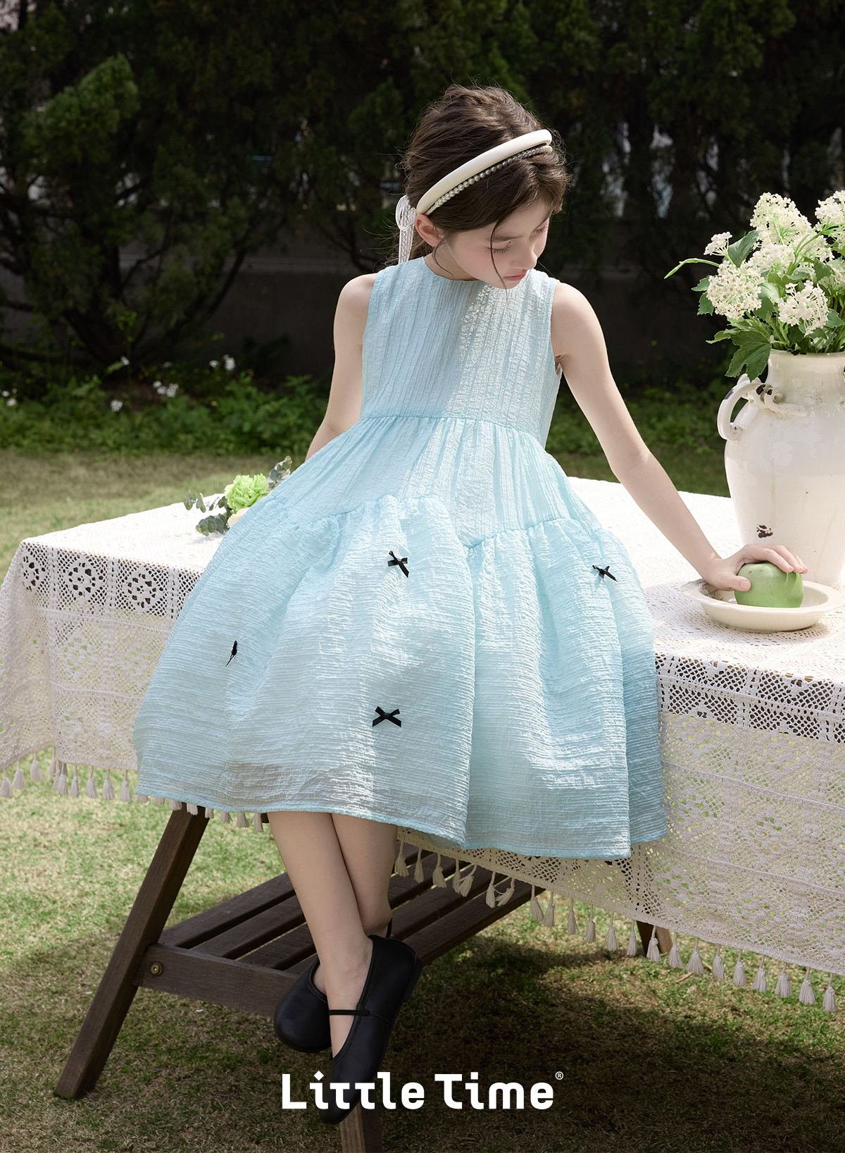 littletime女童连衣裙2025夏新款儿童洋气时尚蝴蝶结背心公主裙