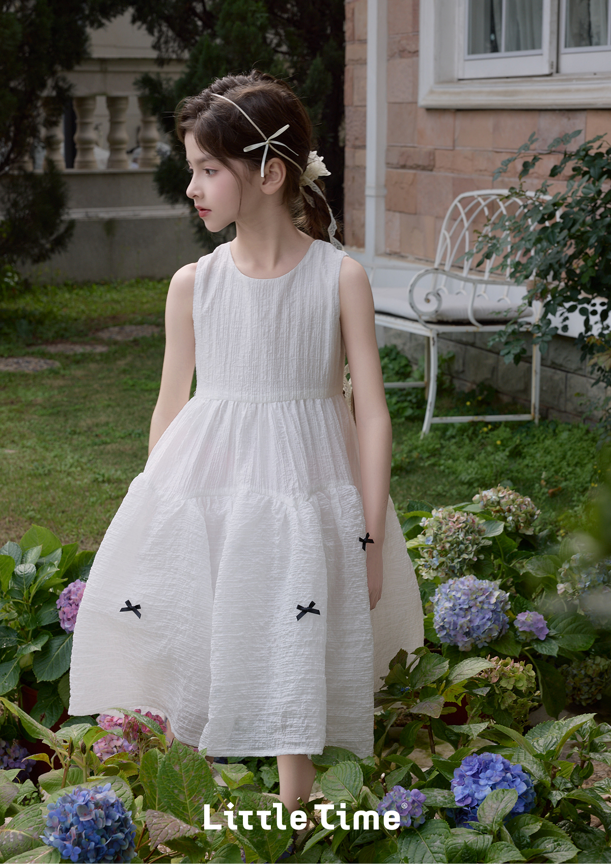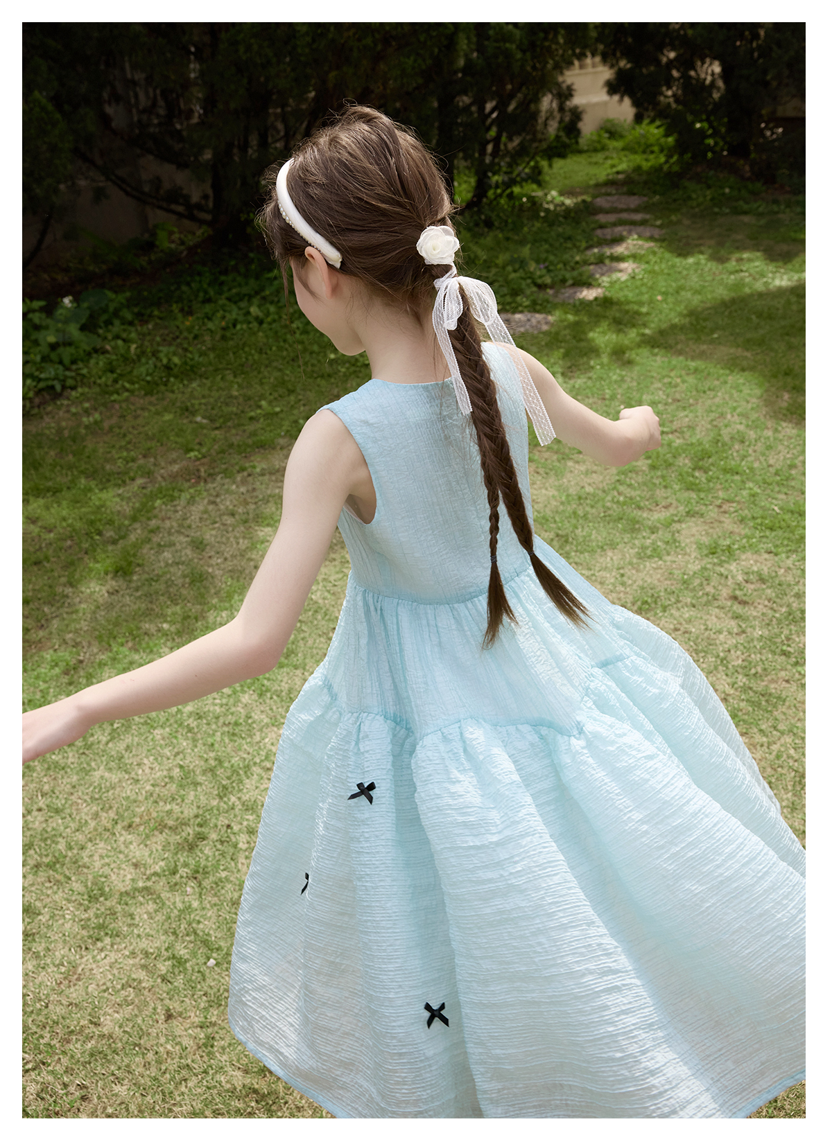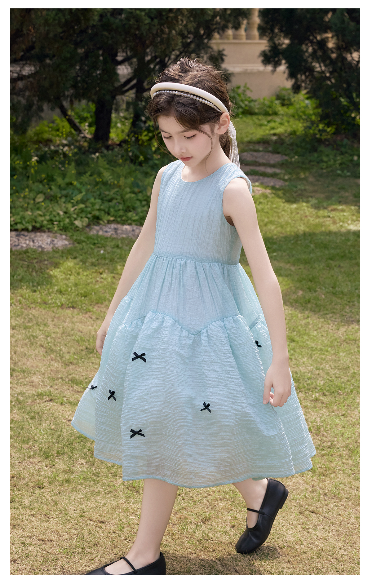 littletime女童连衣裙2025夏新款儿童洋气时尚蝴蝶结背心公主裙