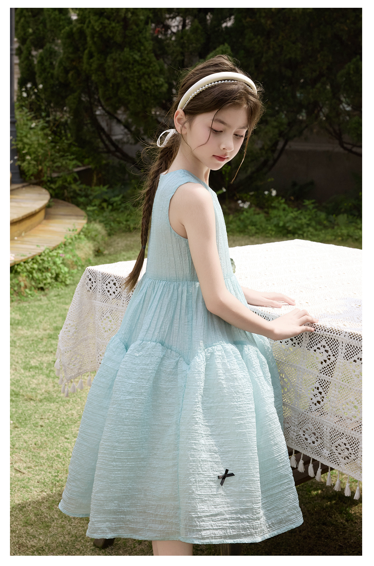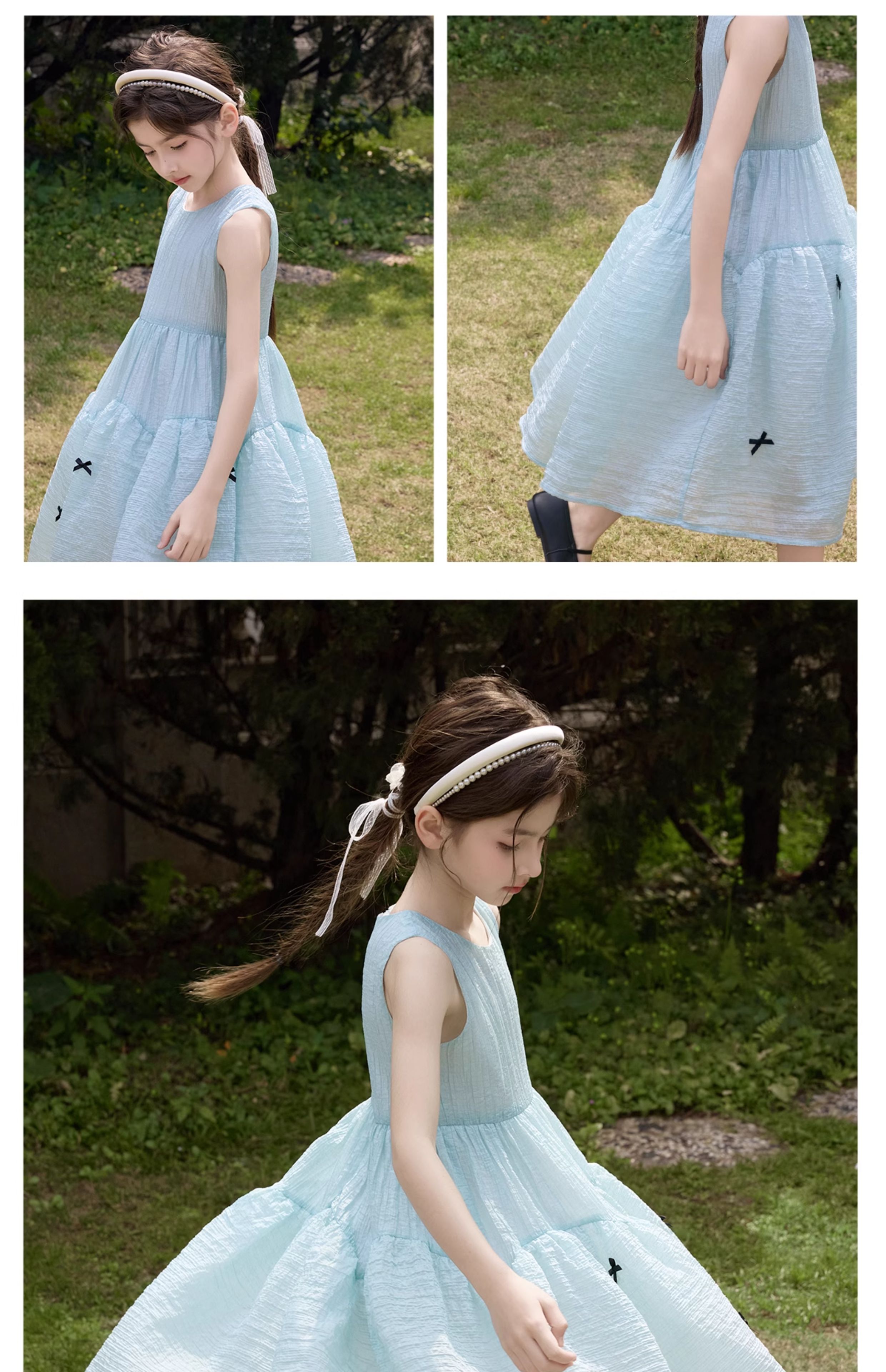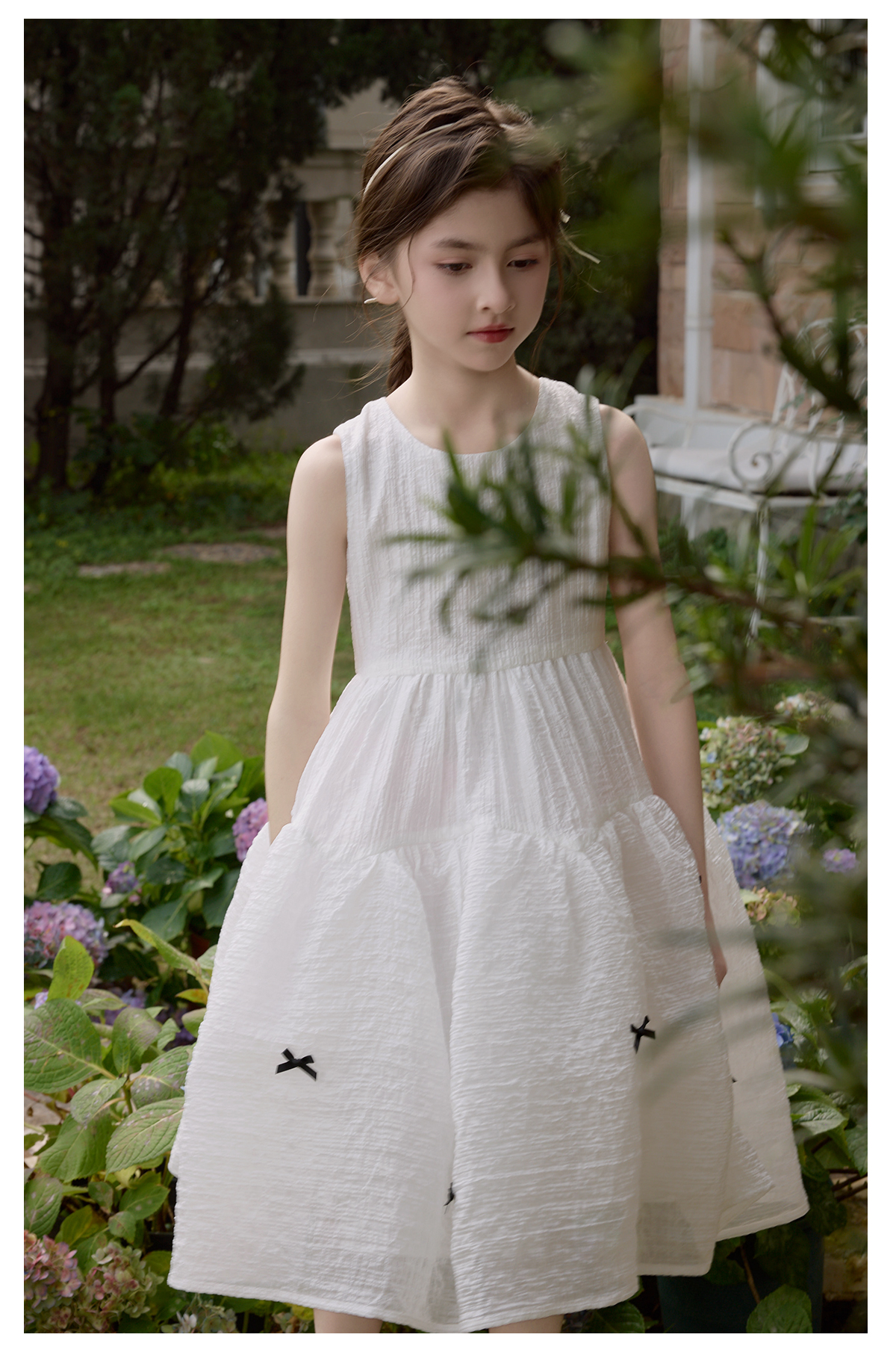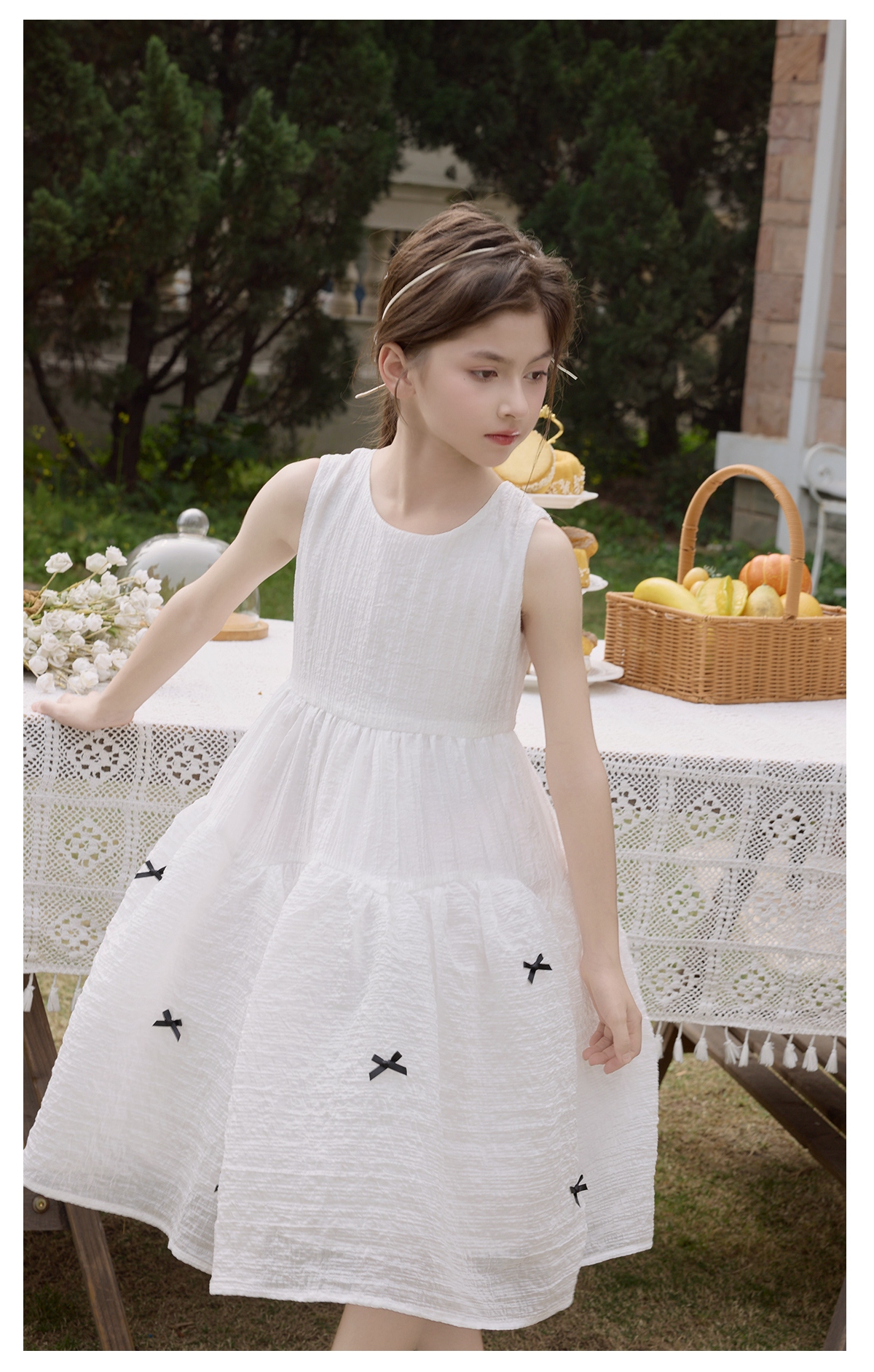 littletime女童连衣裙2025夏新款儿童洋气时尚蝴蝶结背心公主裙