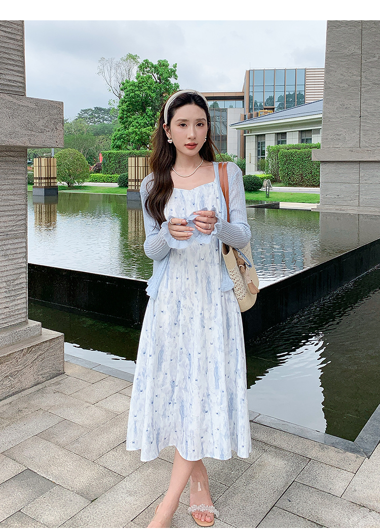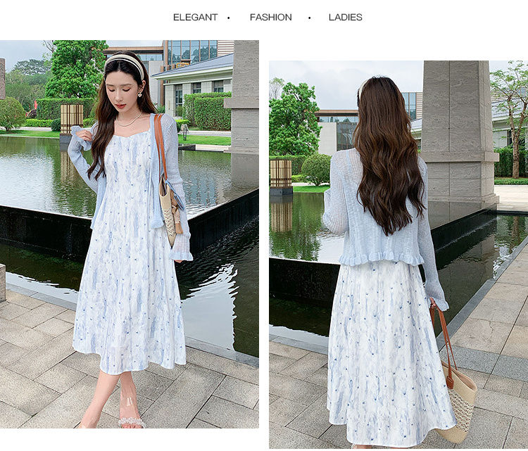 奢姿大码女装2025夏季减龄蝴蝶结针织碎花两件套胖妹妹时尚套装9952935028