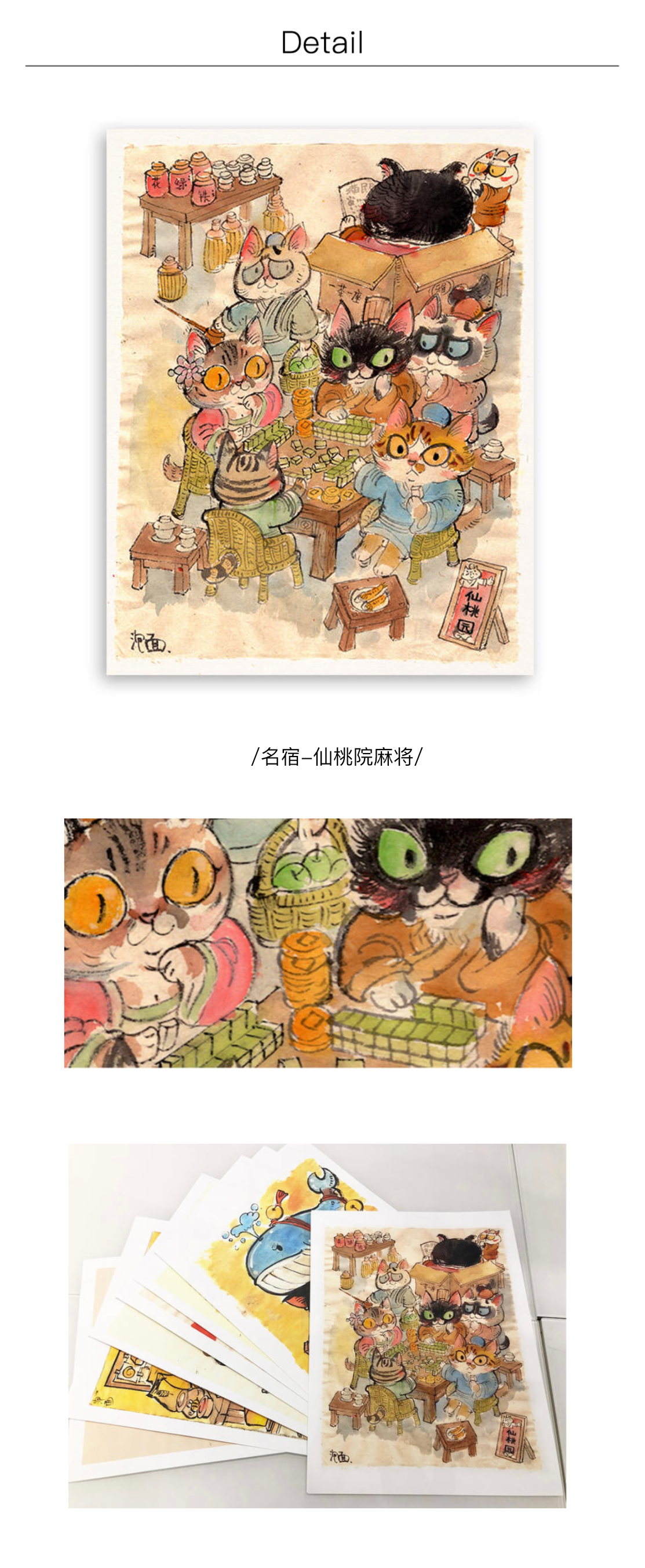 泡面猫丨国风民俗系列-茶馆麻将