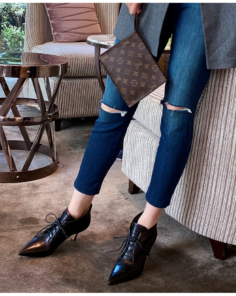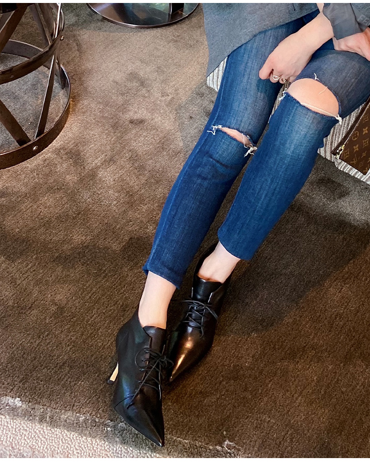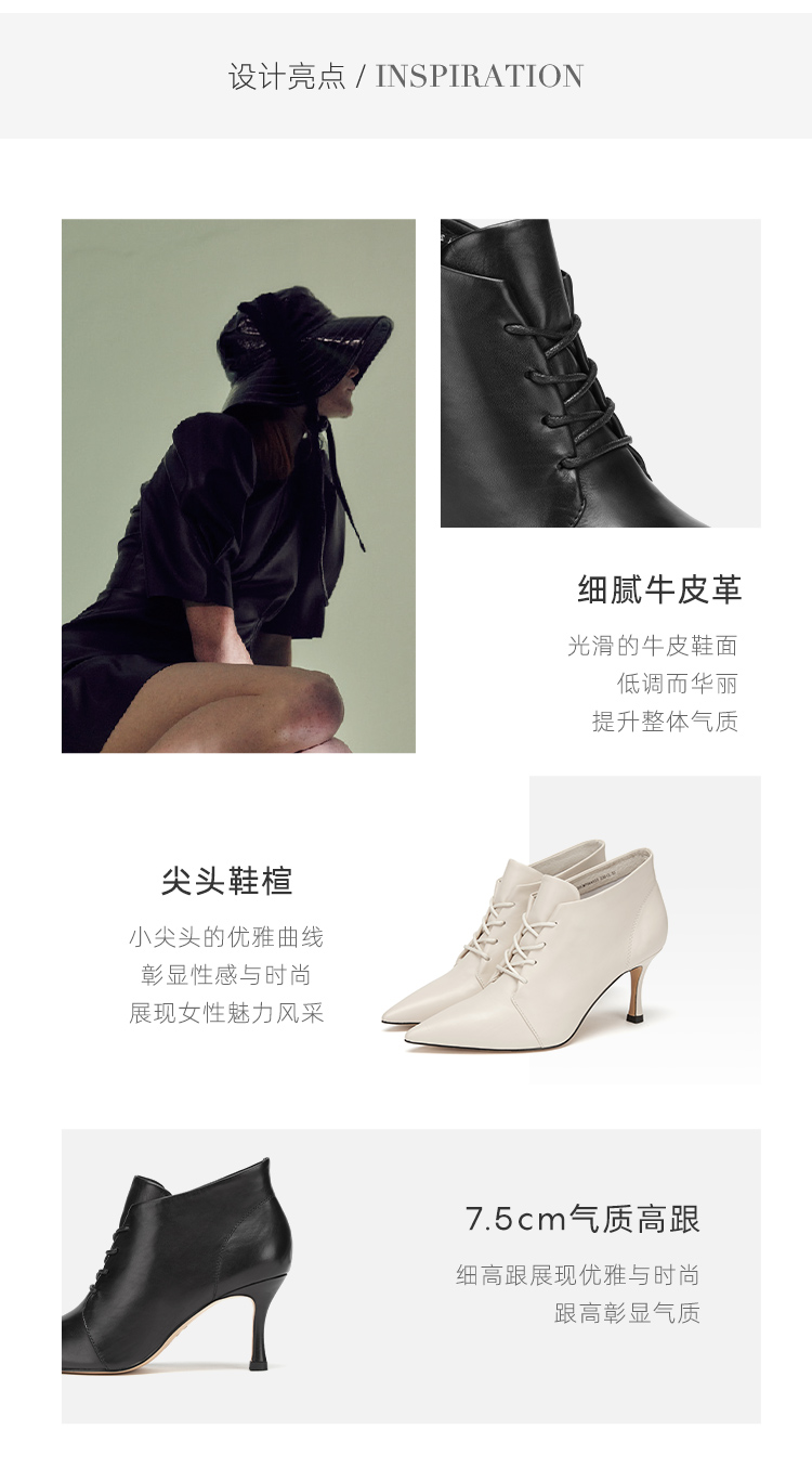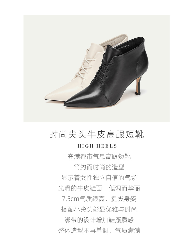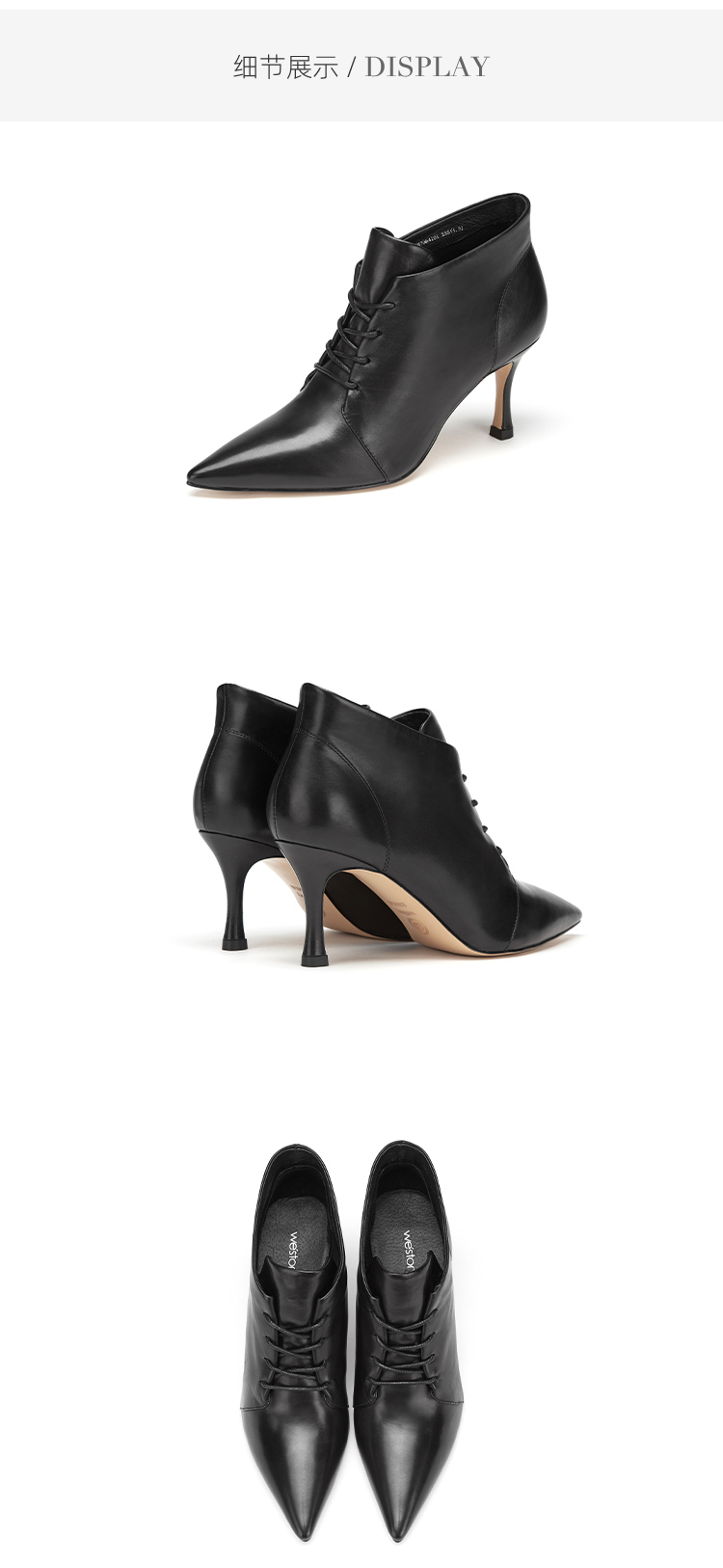 westory秋季新款尖头真皮系带中筒高跟时尚靴W20CM70641