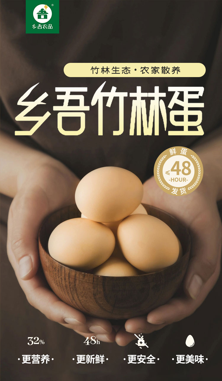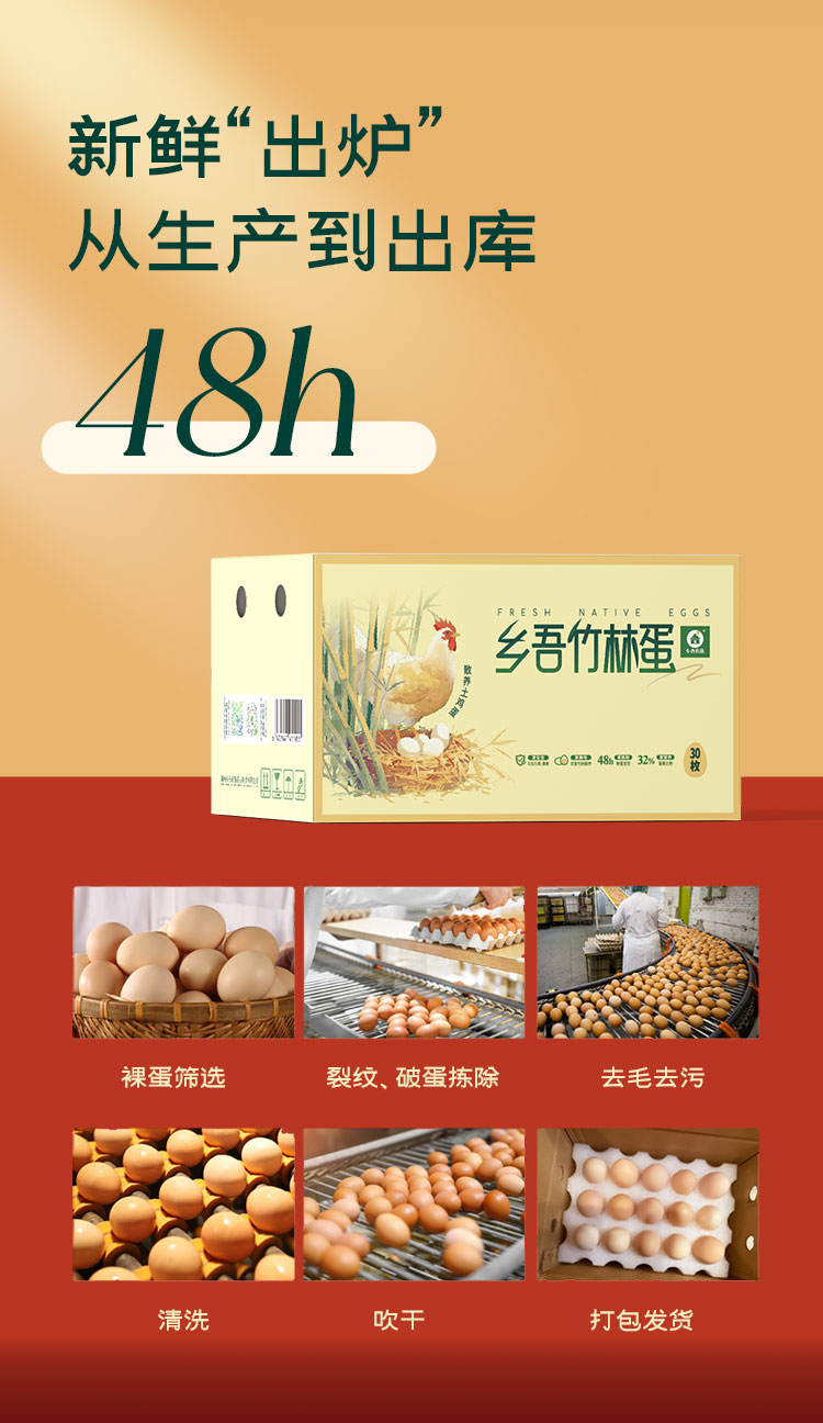 乡吾农品竹林鸡蛋 蛋黄饱满 蛋清粘稠 蛋香味纯粹 不腥,不噎,更软糯 30枚/箱*1