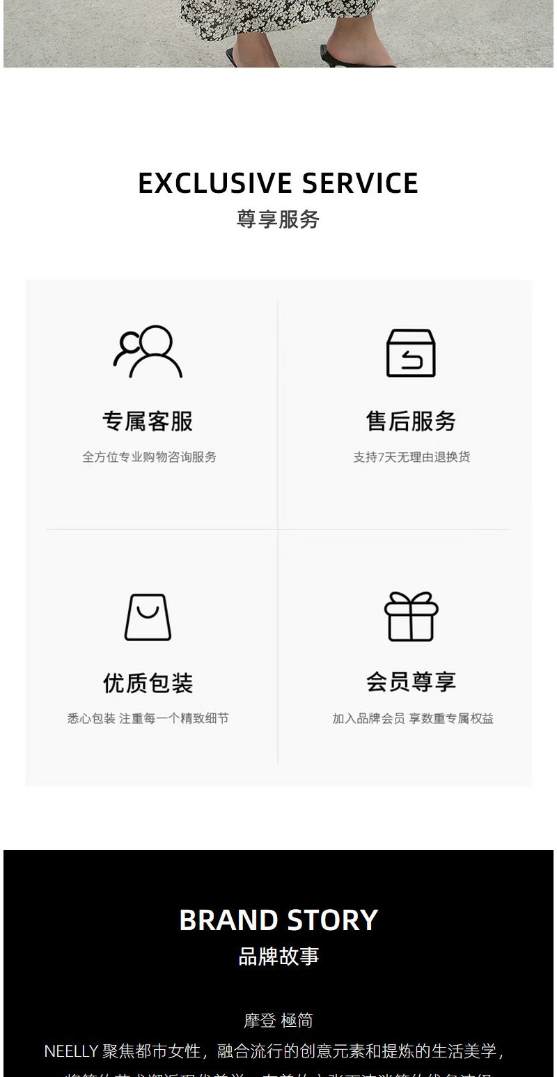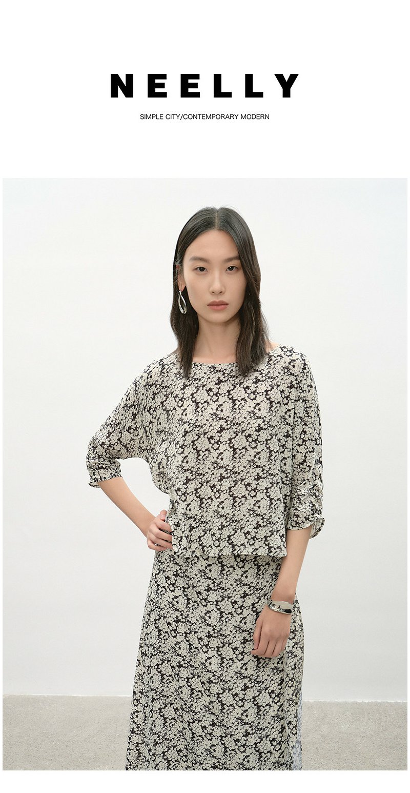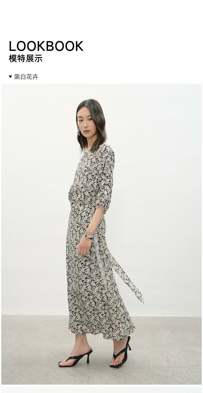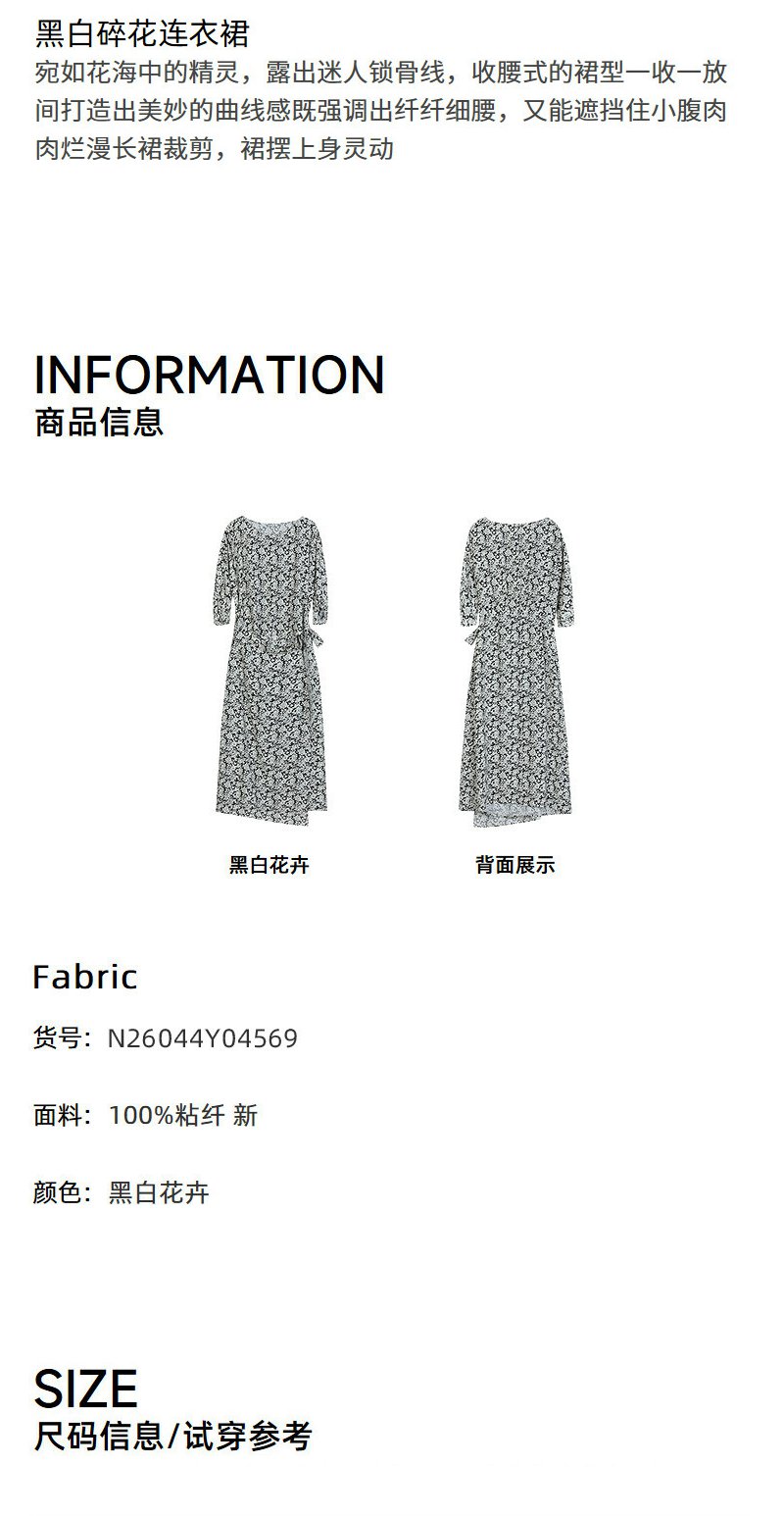 NEELLY纳俪商场同款夏季新款黑白碎花收腰连衣裙女显瘦休闲长裙N26044Y04569
