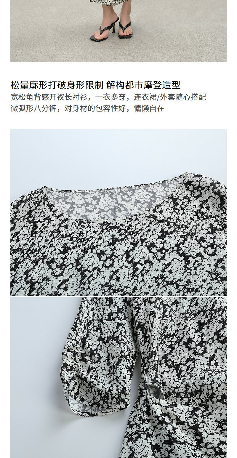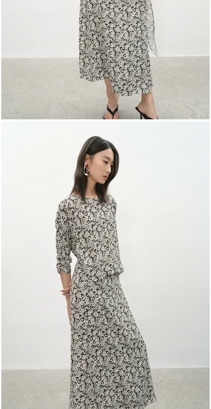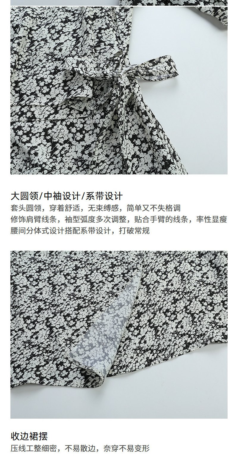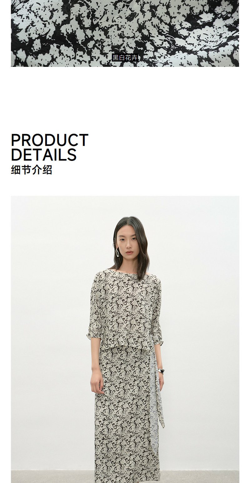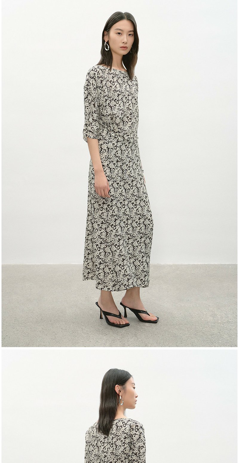 NEELLY纳俪商场同款夏季新款黑白碎花收腰连衣裙女显瘦休闲长裙N26044Y04569
