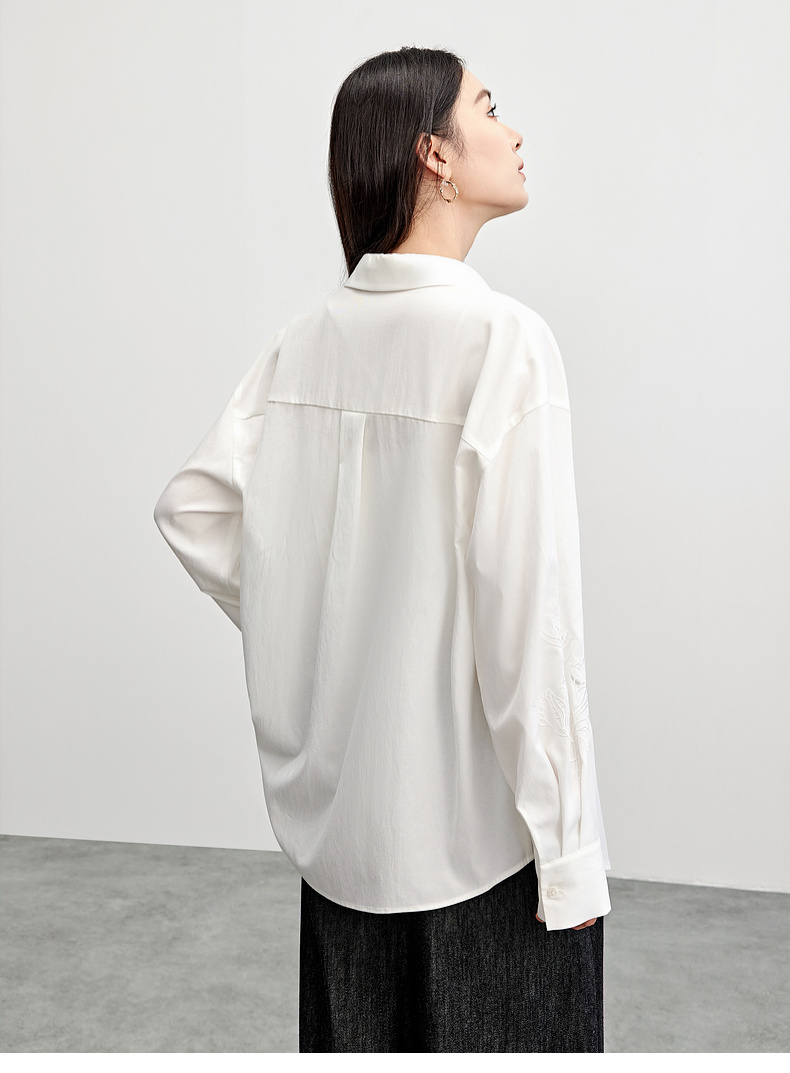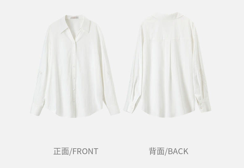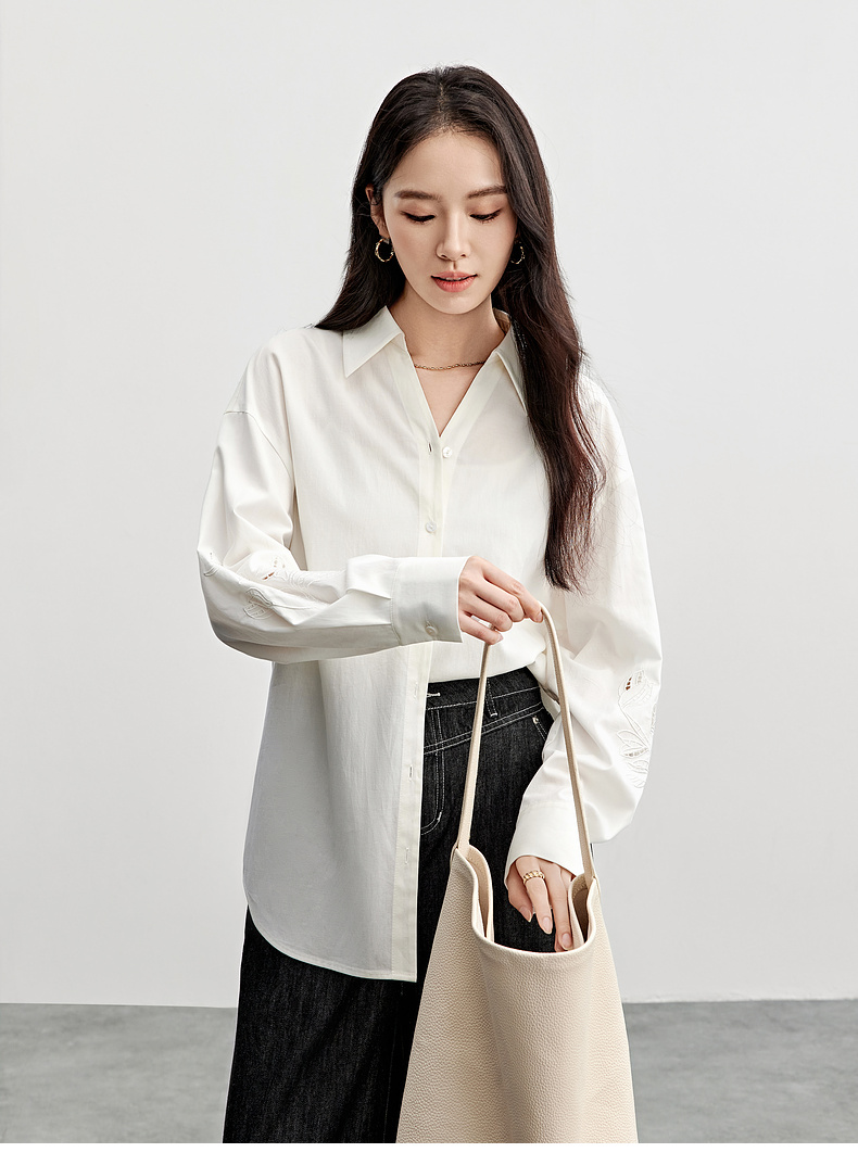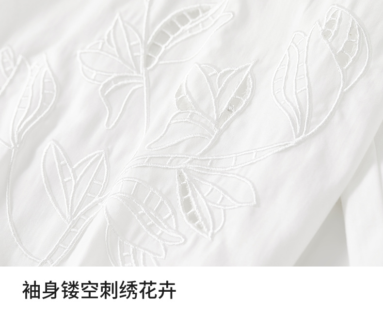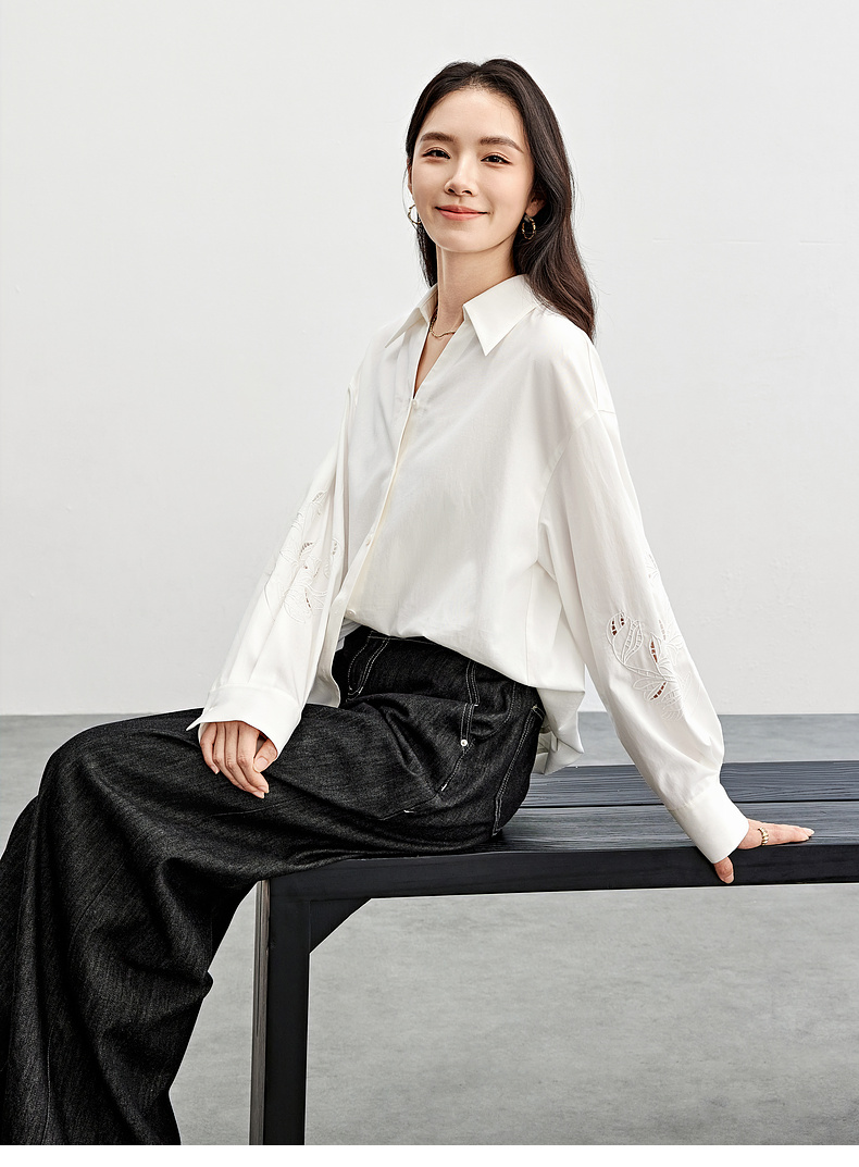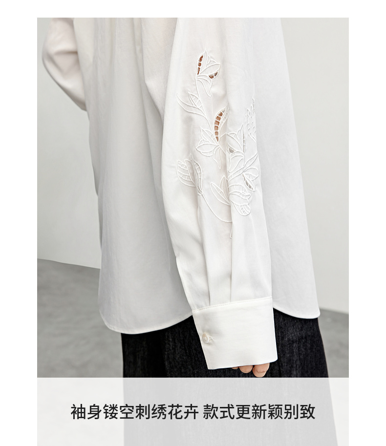 【内购】轻职场通勤镂空刺绣花卉落肩长袖宽松柔软清爽衬衫-151C57983