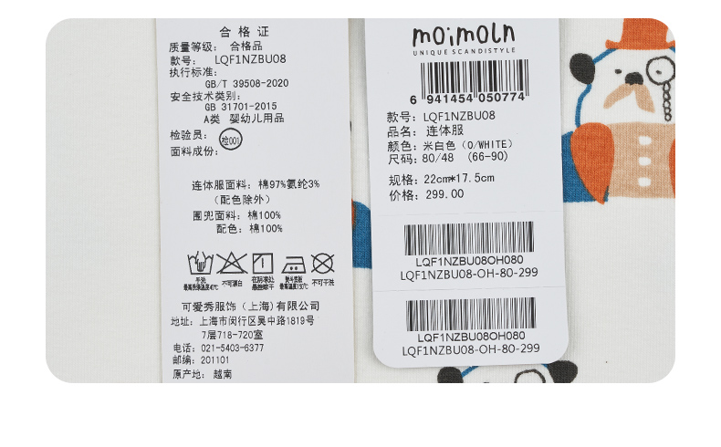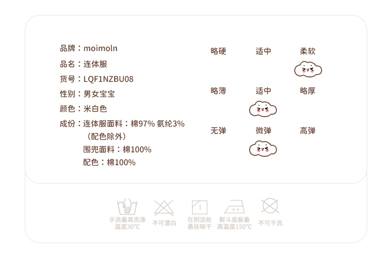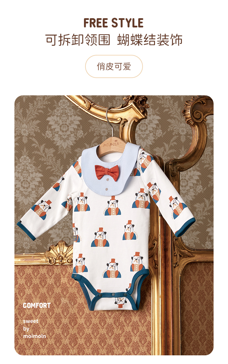 【尺码偏小请拍大一码】moimoln小云朵童装2021秋季新款男女宝三角爬服新生儿可爱连身衣LQF1NZBU08