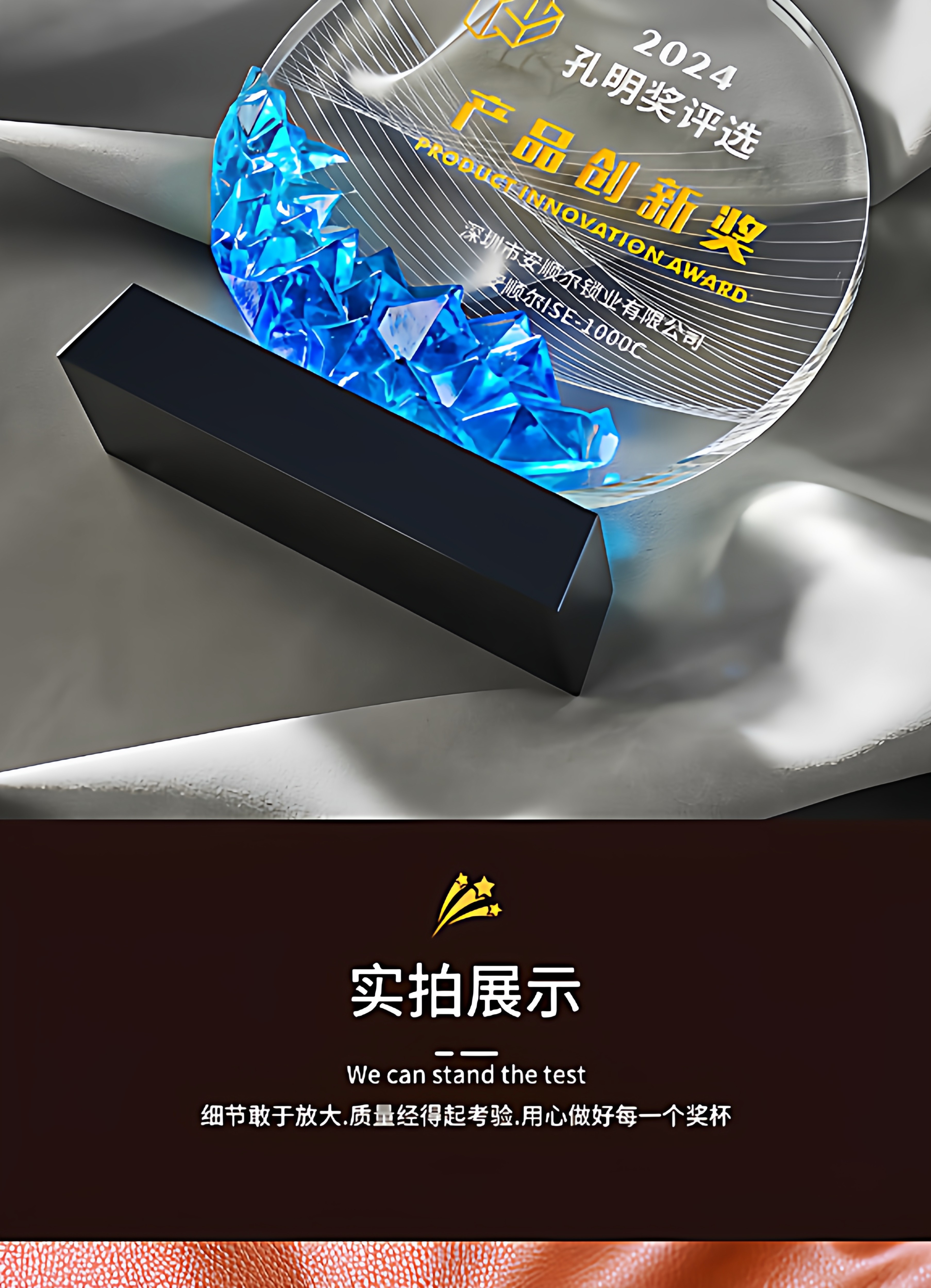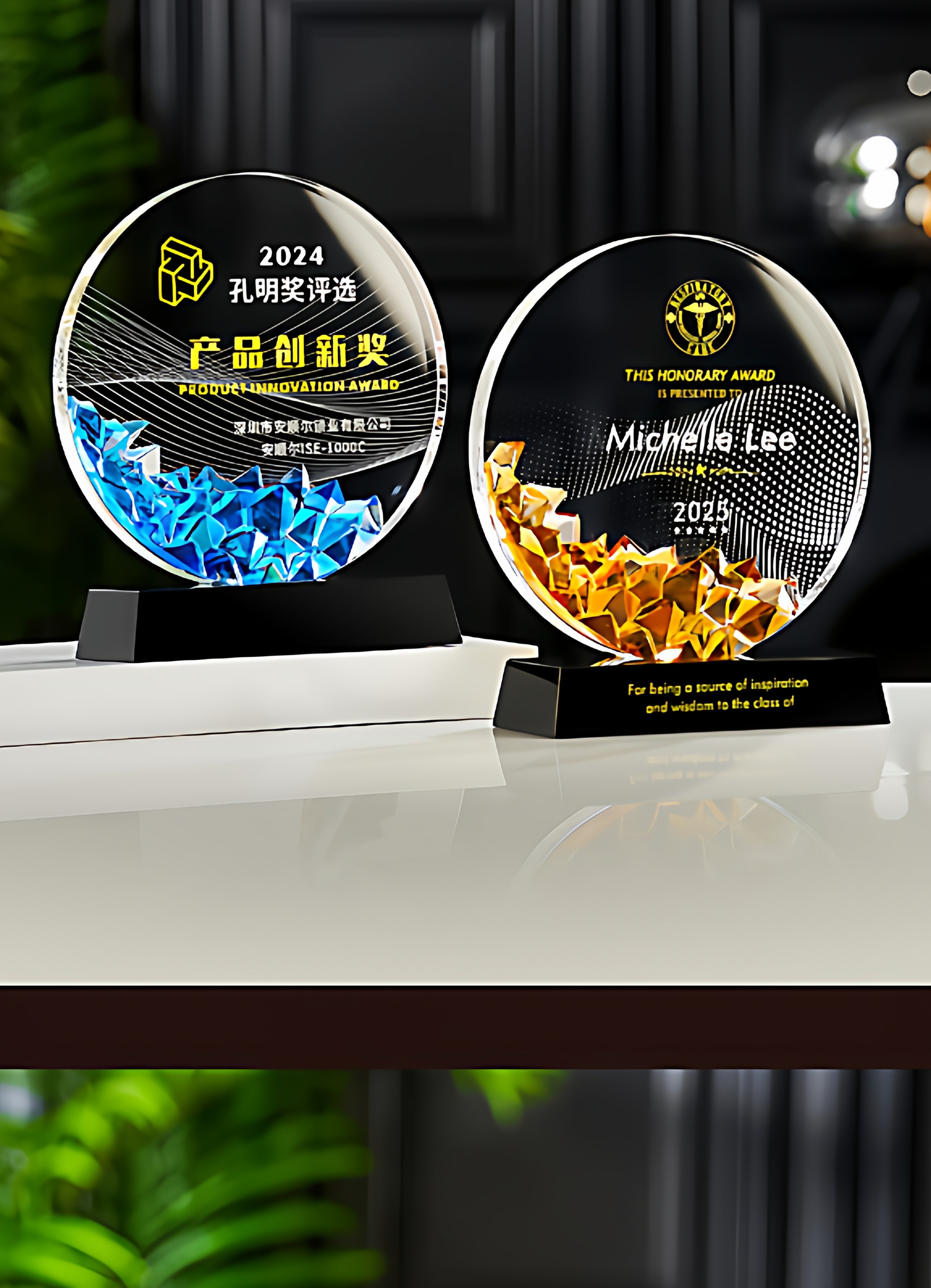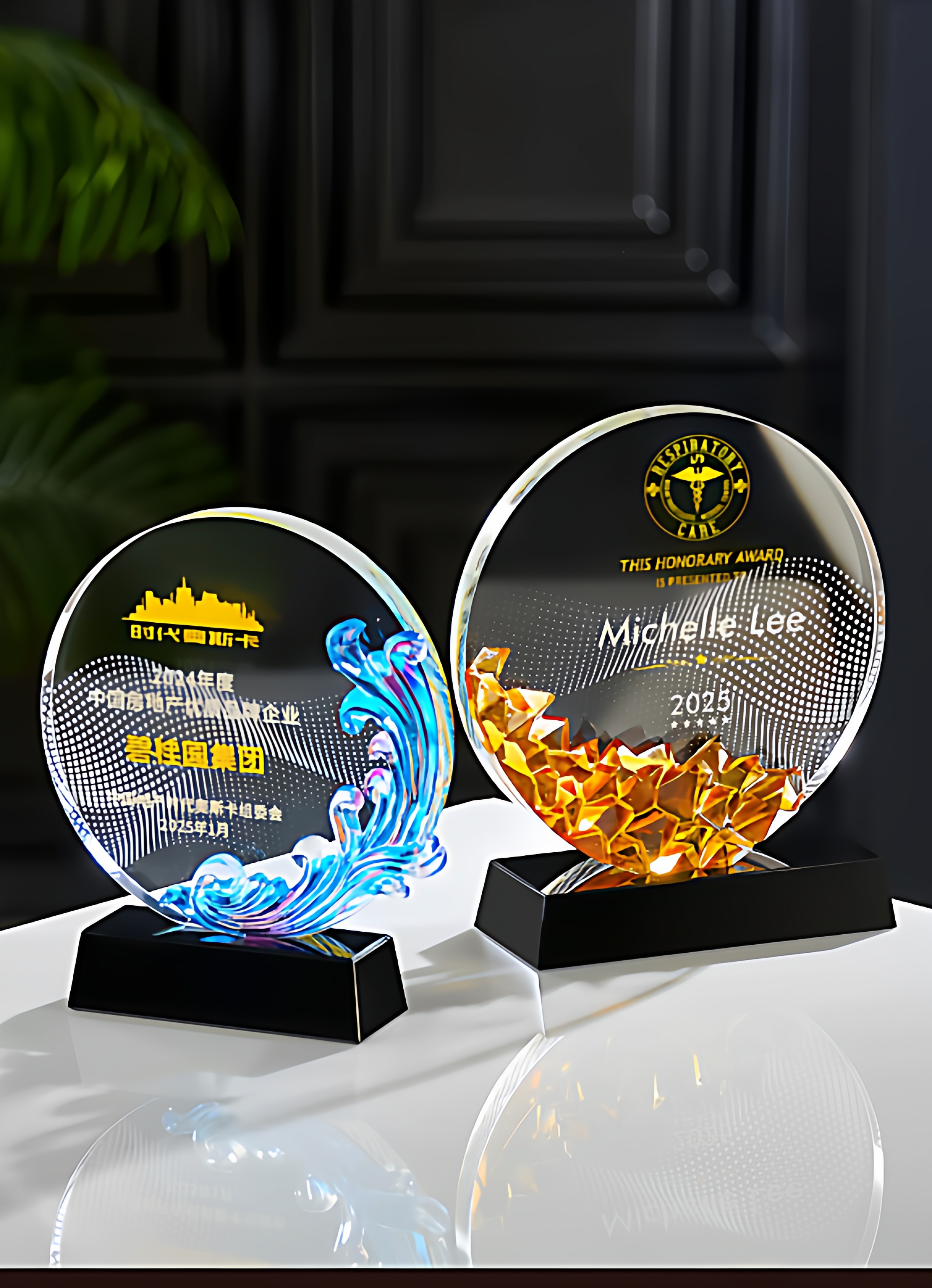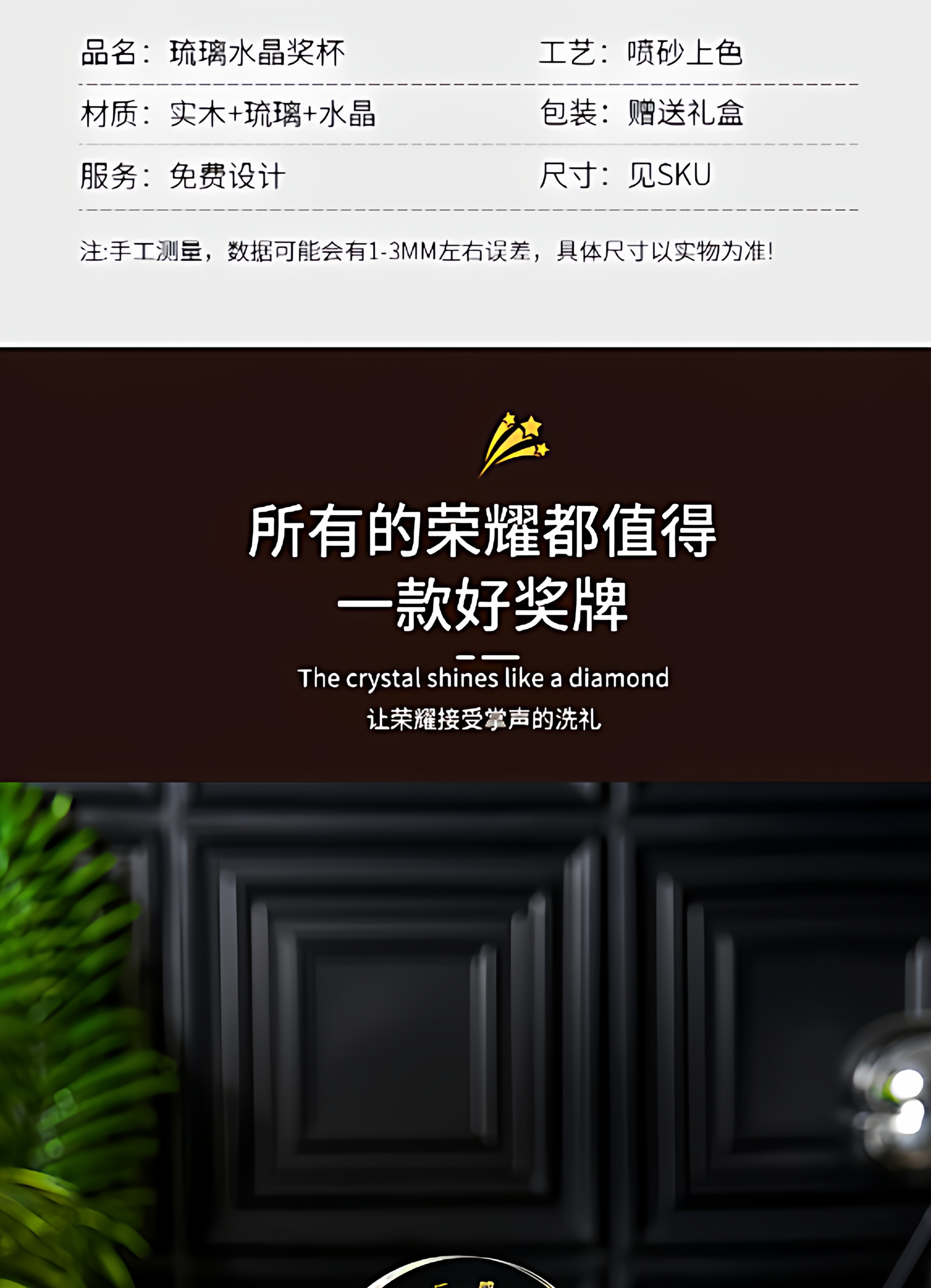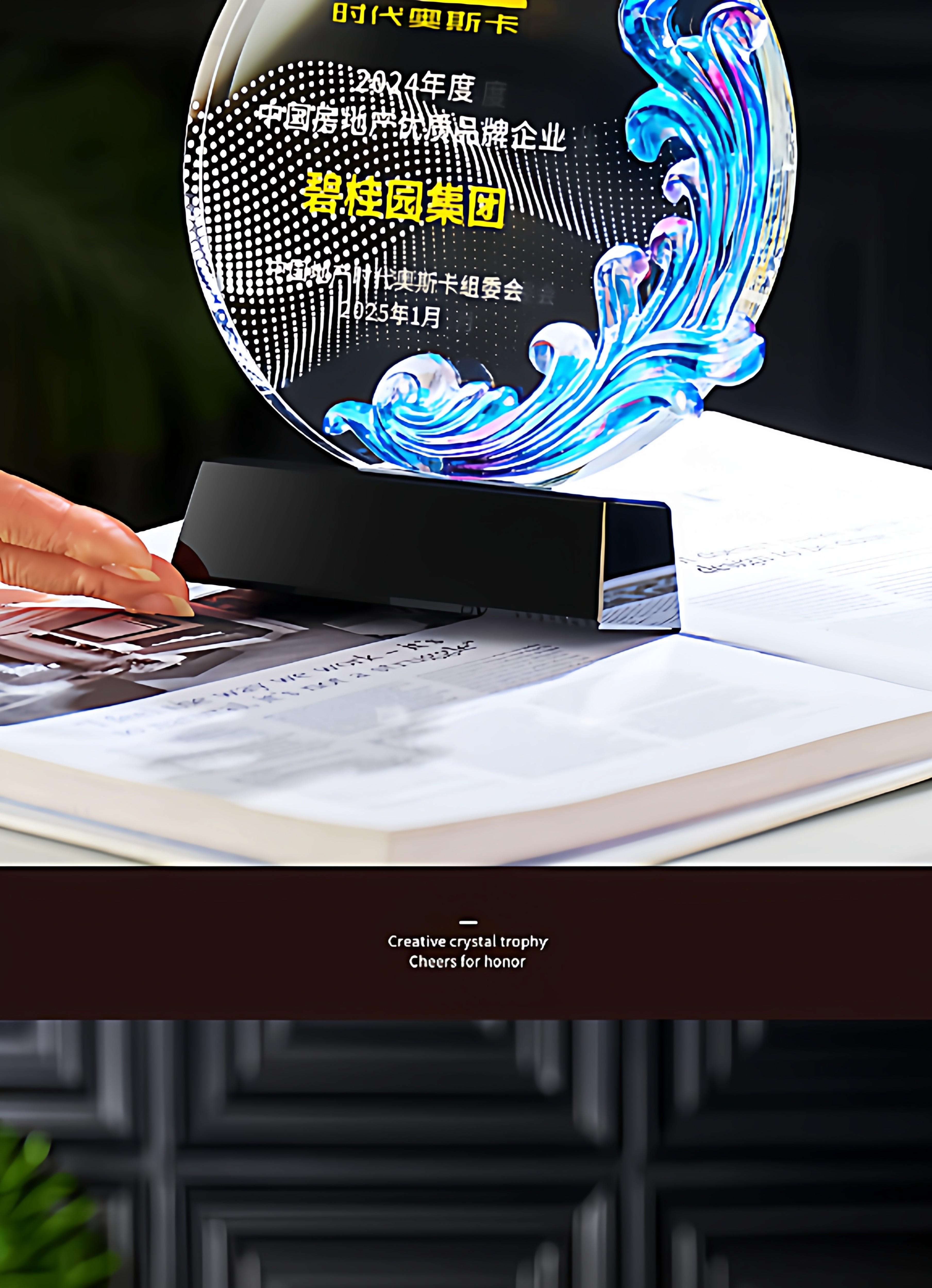 琉璃水晶奖杯牌企业年会新款授权加盟商会领导人新款创意发光奖杯