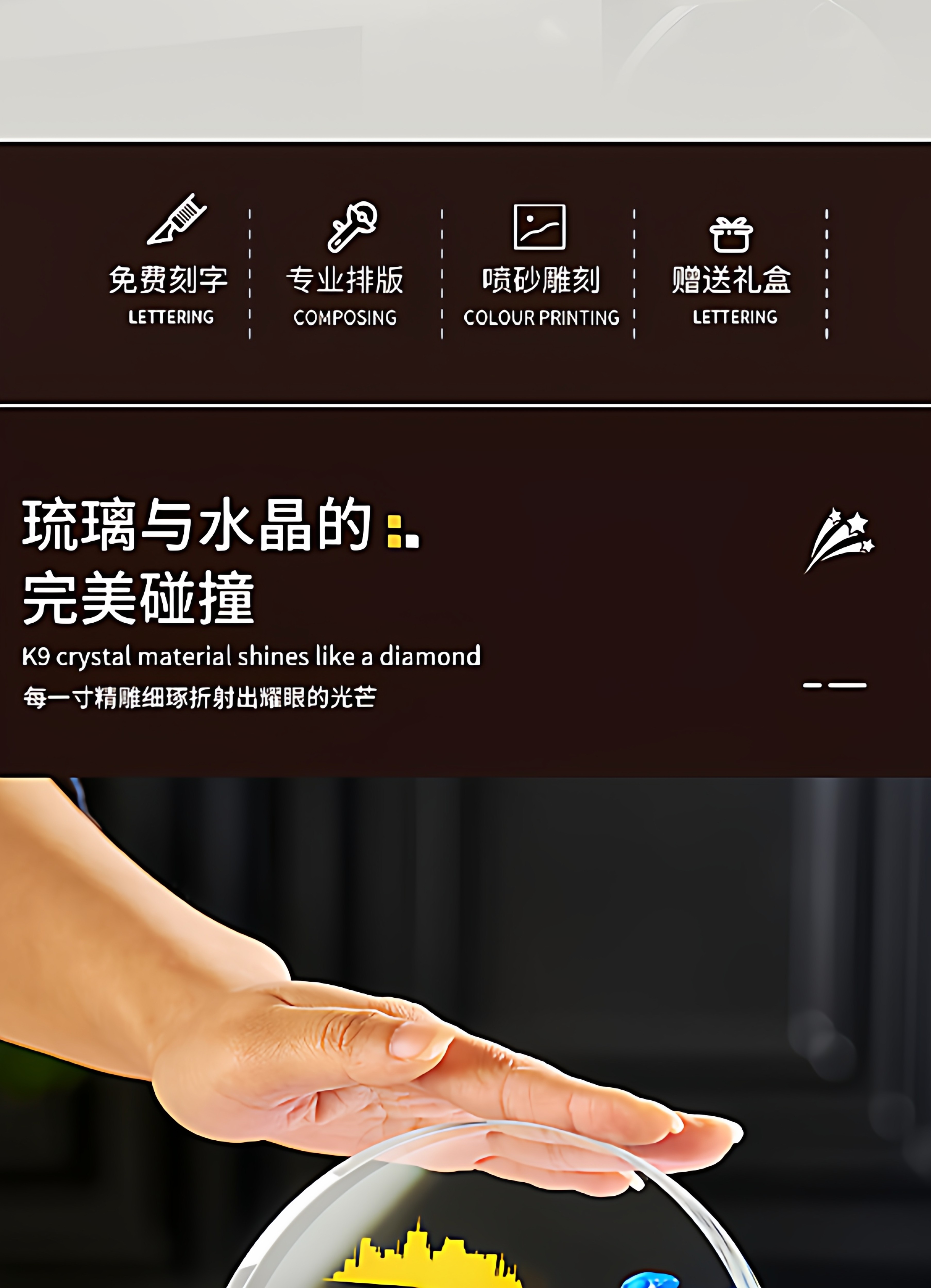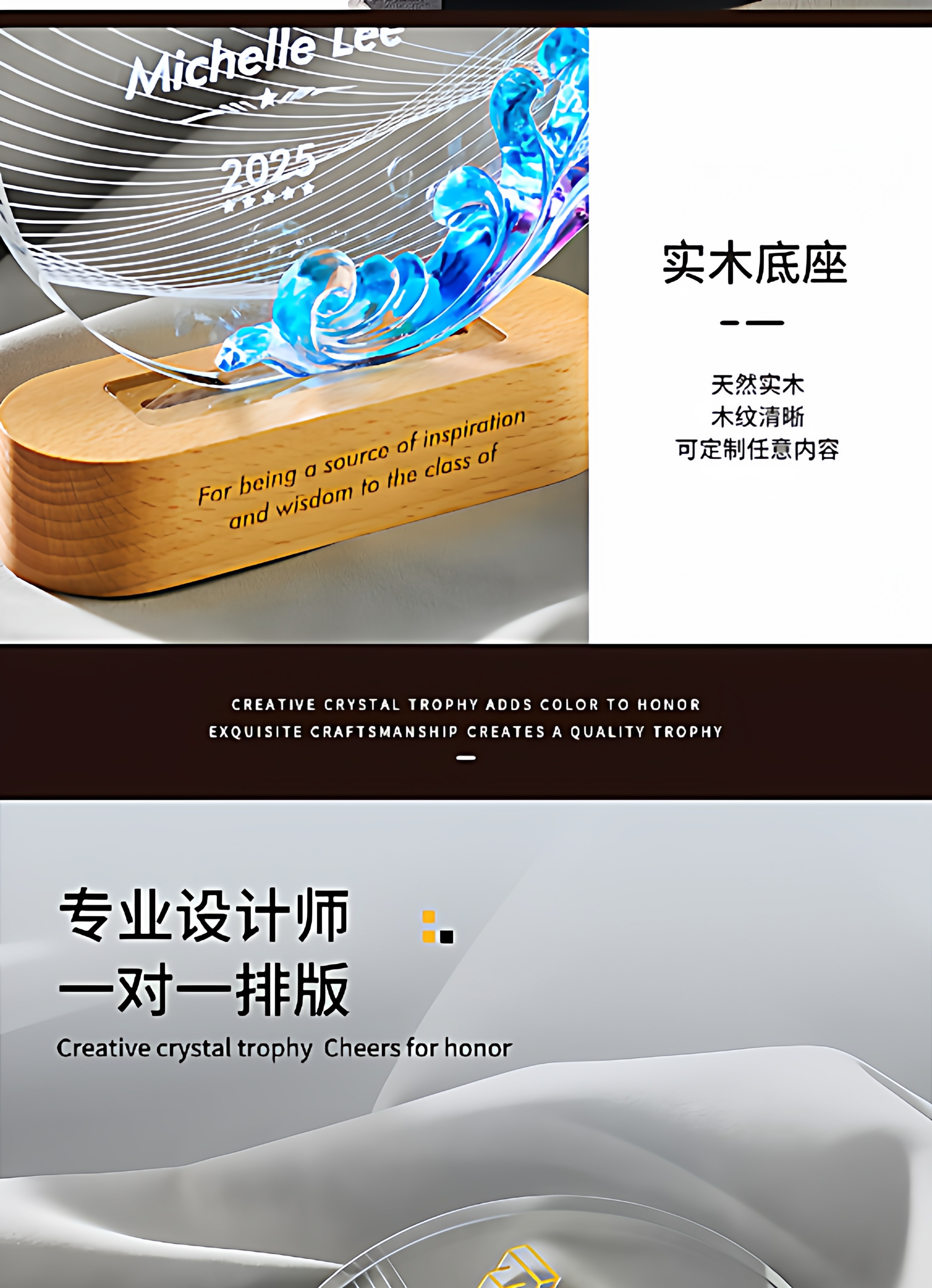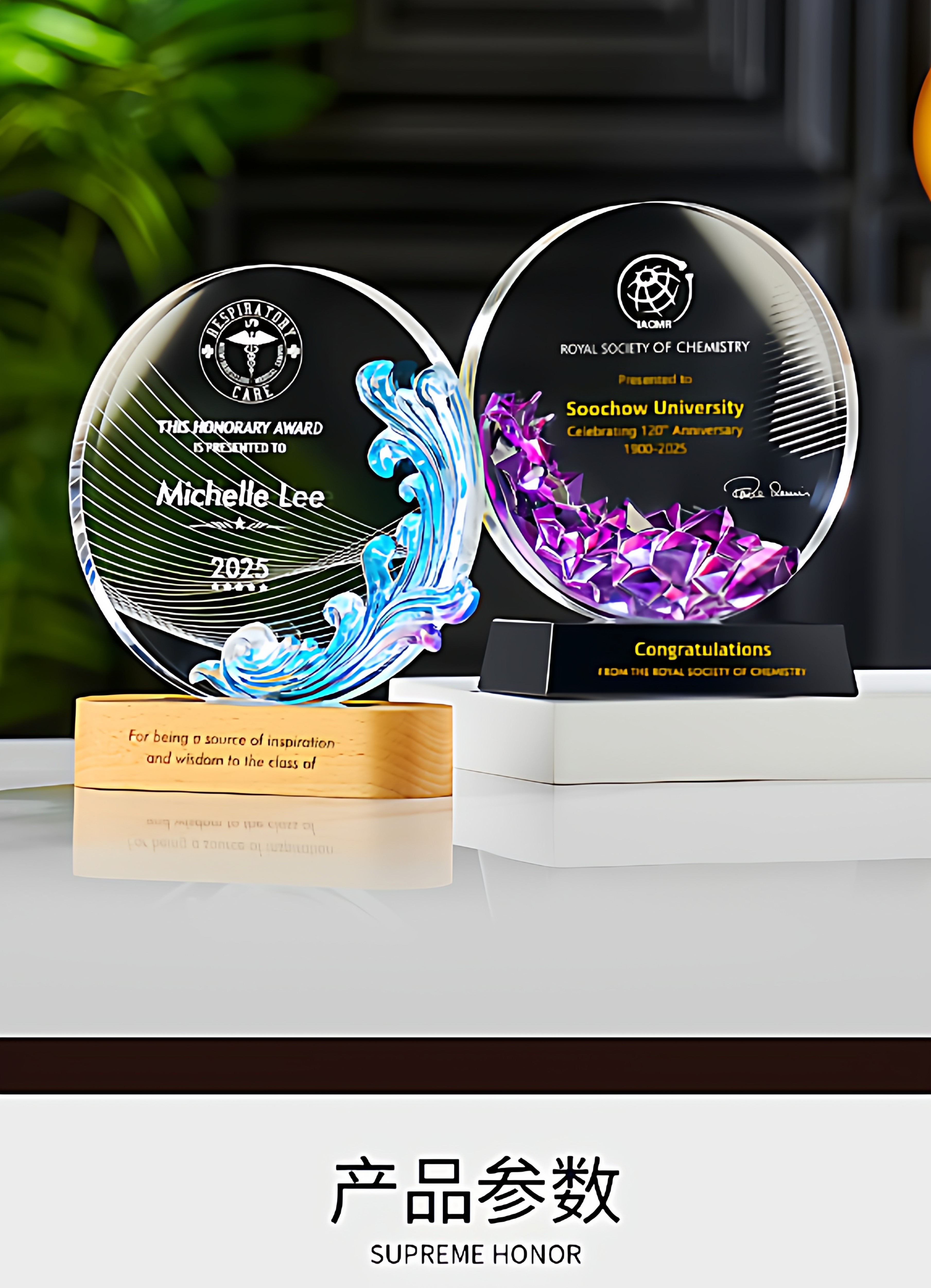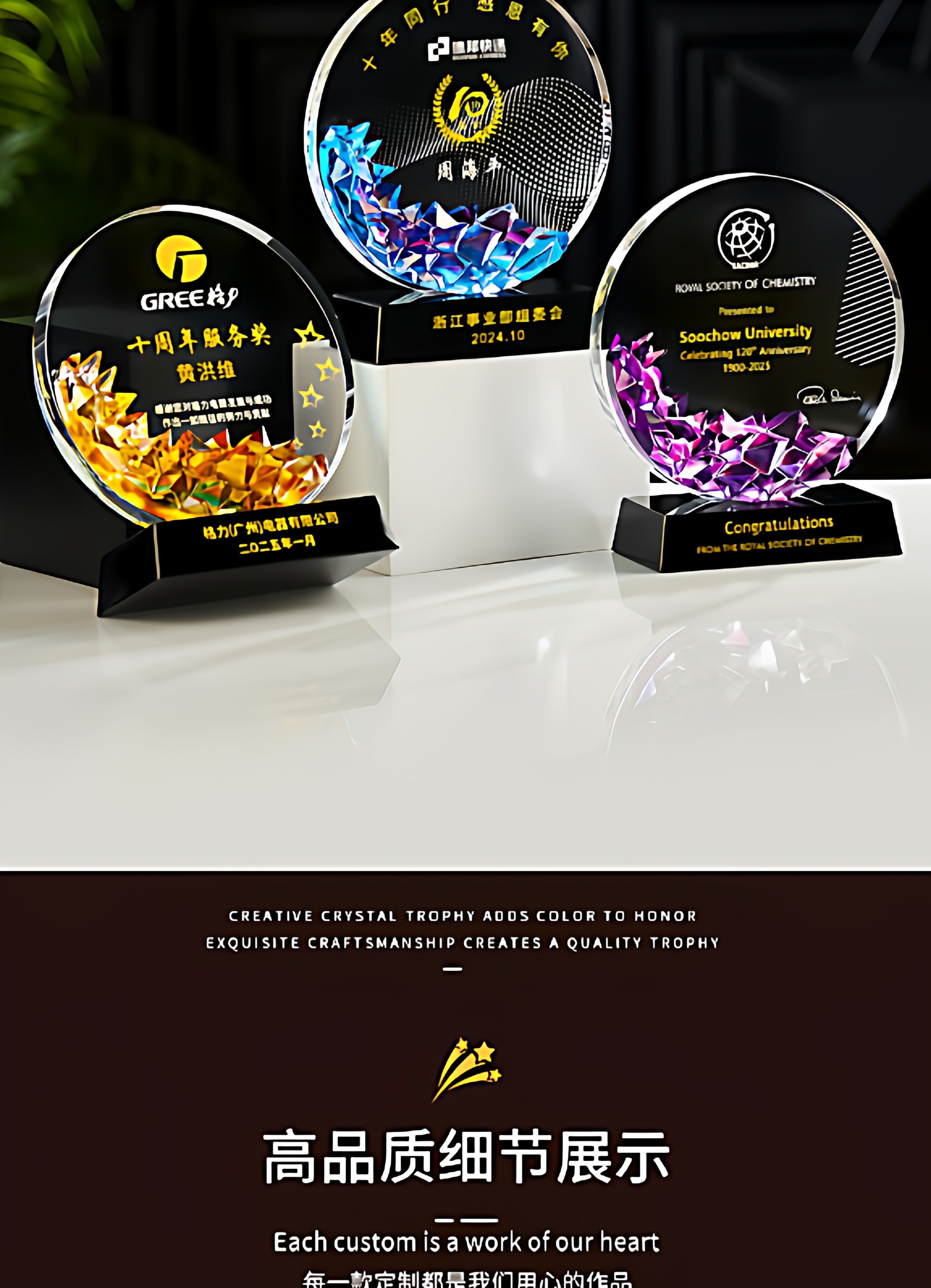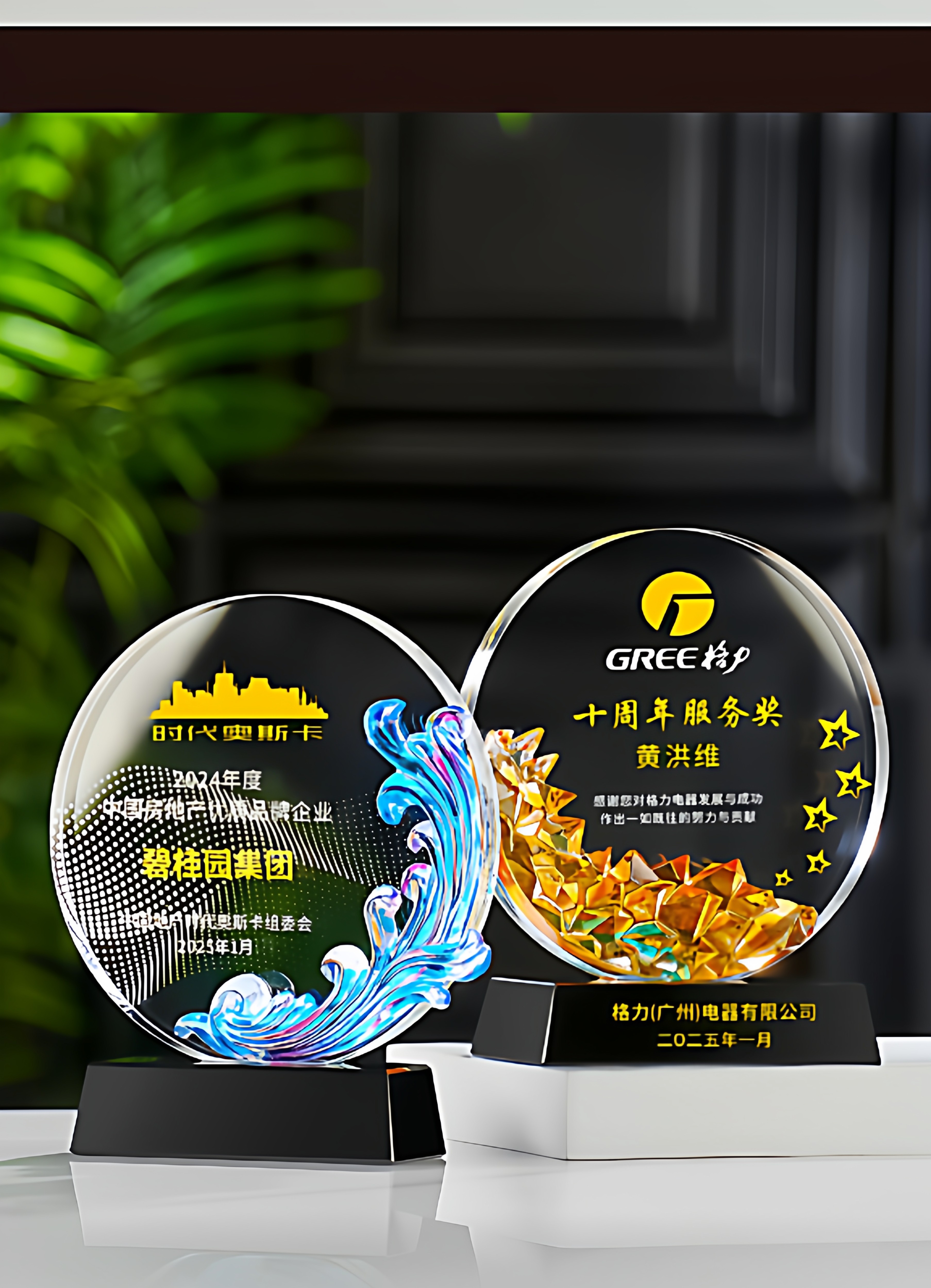 琉璃水晶奖杯牌企业年会新款授权加盟商会领导人新款创意发光奖杯