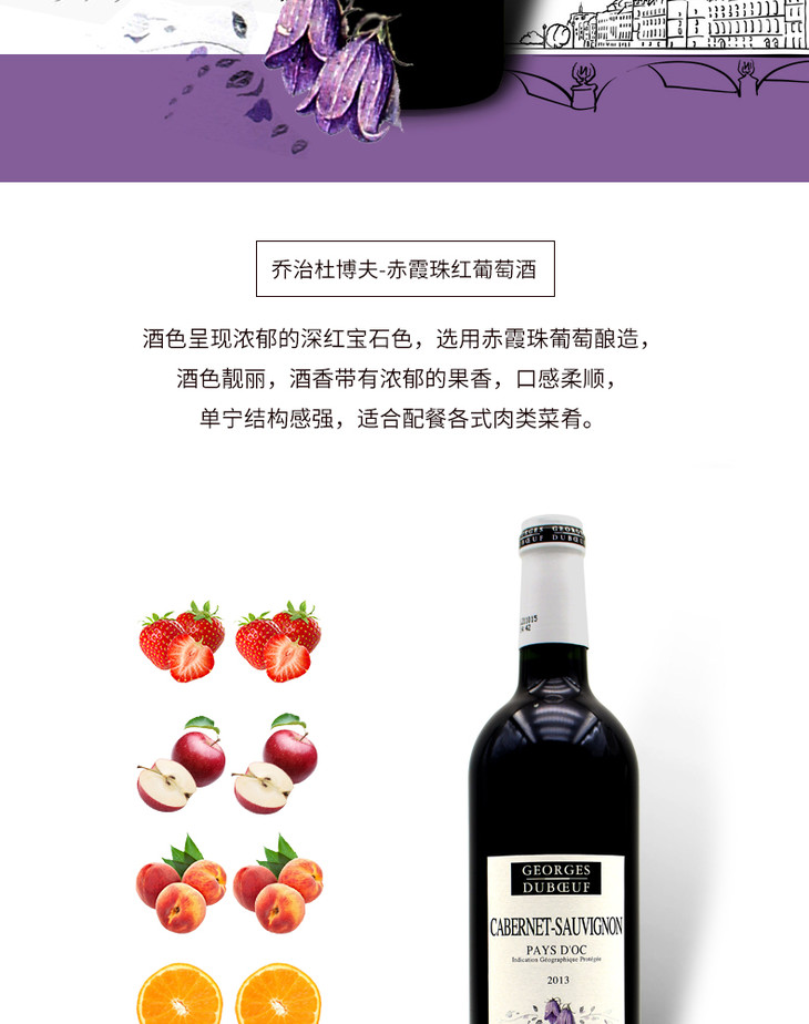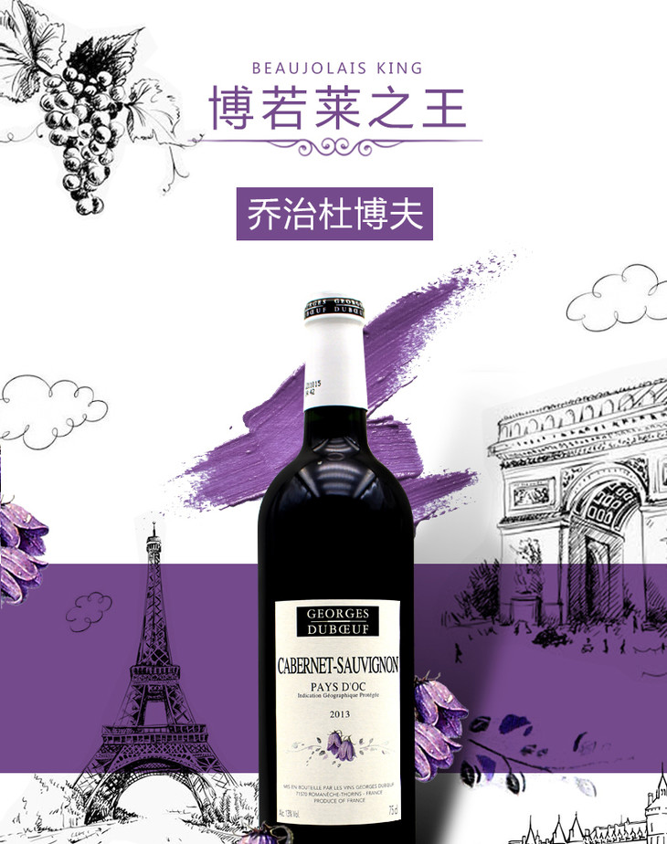 法国原瓶进口红酒 乔治杜博夫赤霞珠干红葡萄酒 Georges Duboeuf Cabernet Sauvignon 单支装750ml