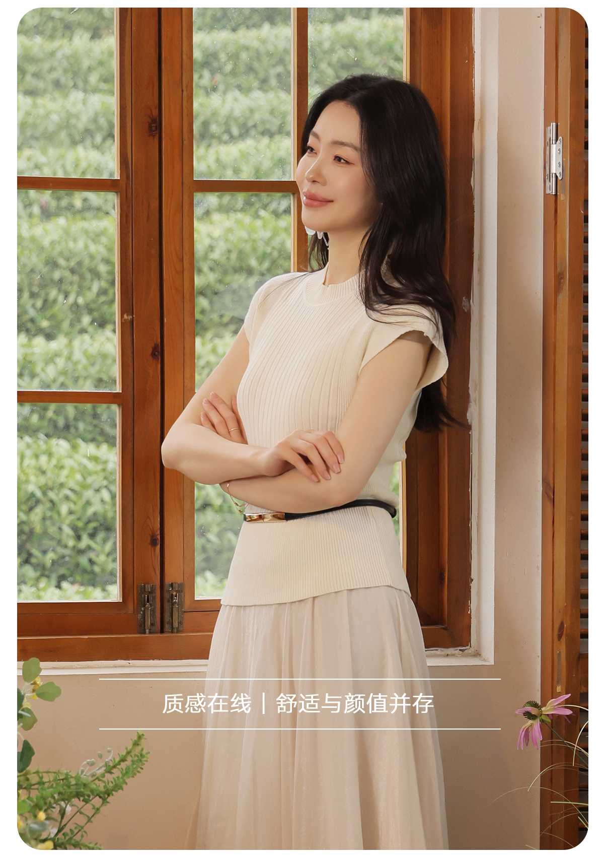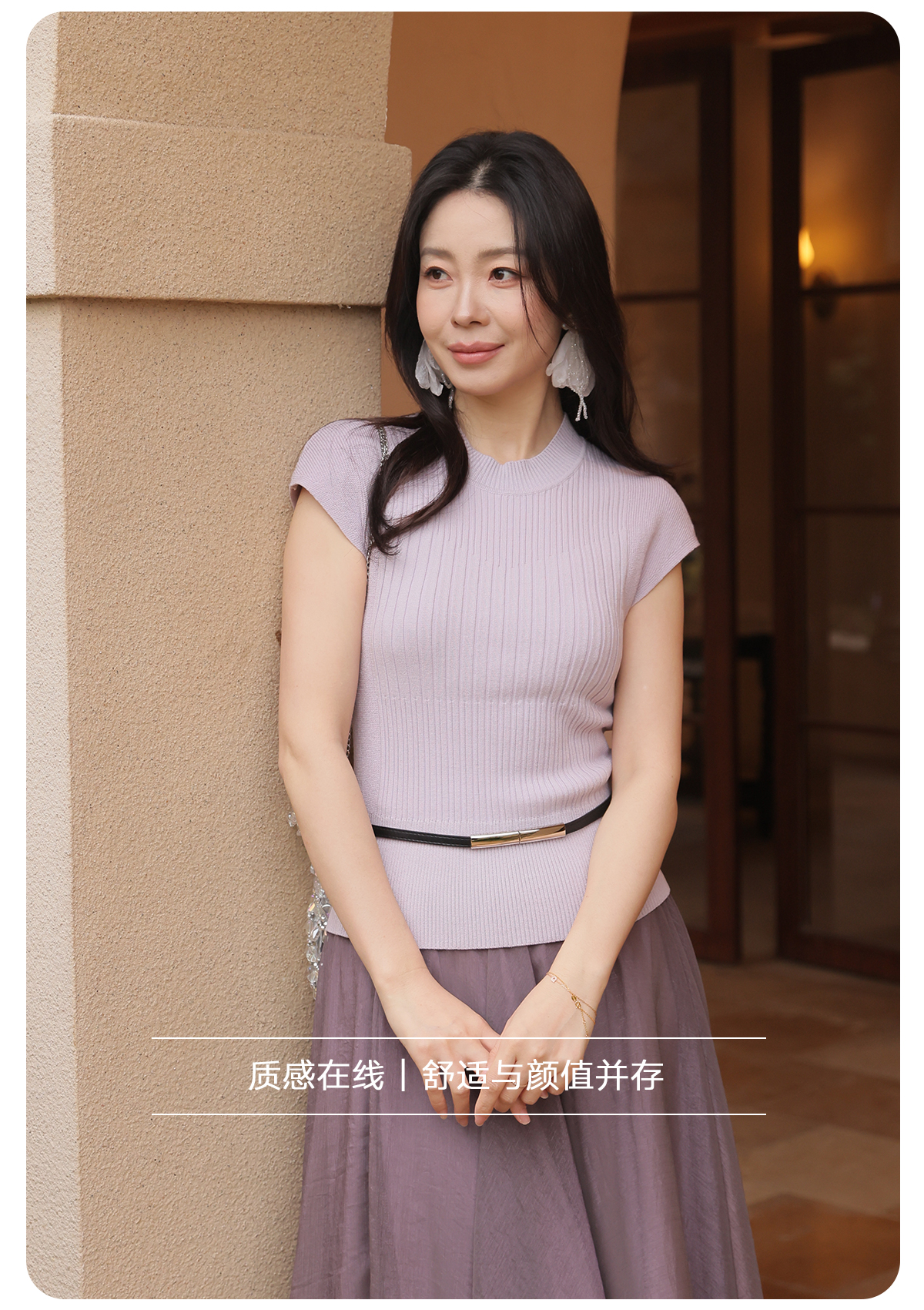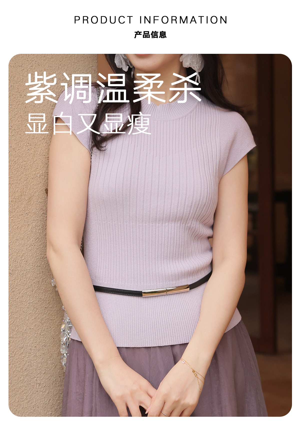 【门店同款】ENJOY春季“柔光芳序”腰带修身针织上衣 169100058