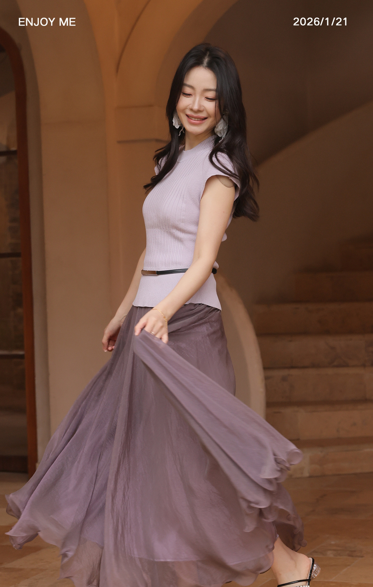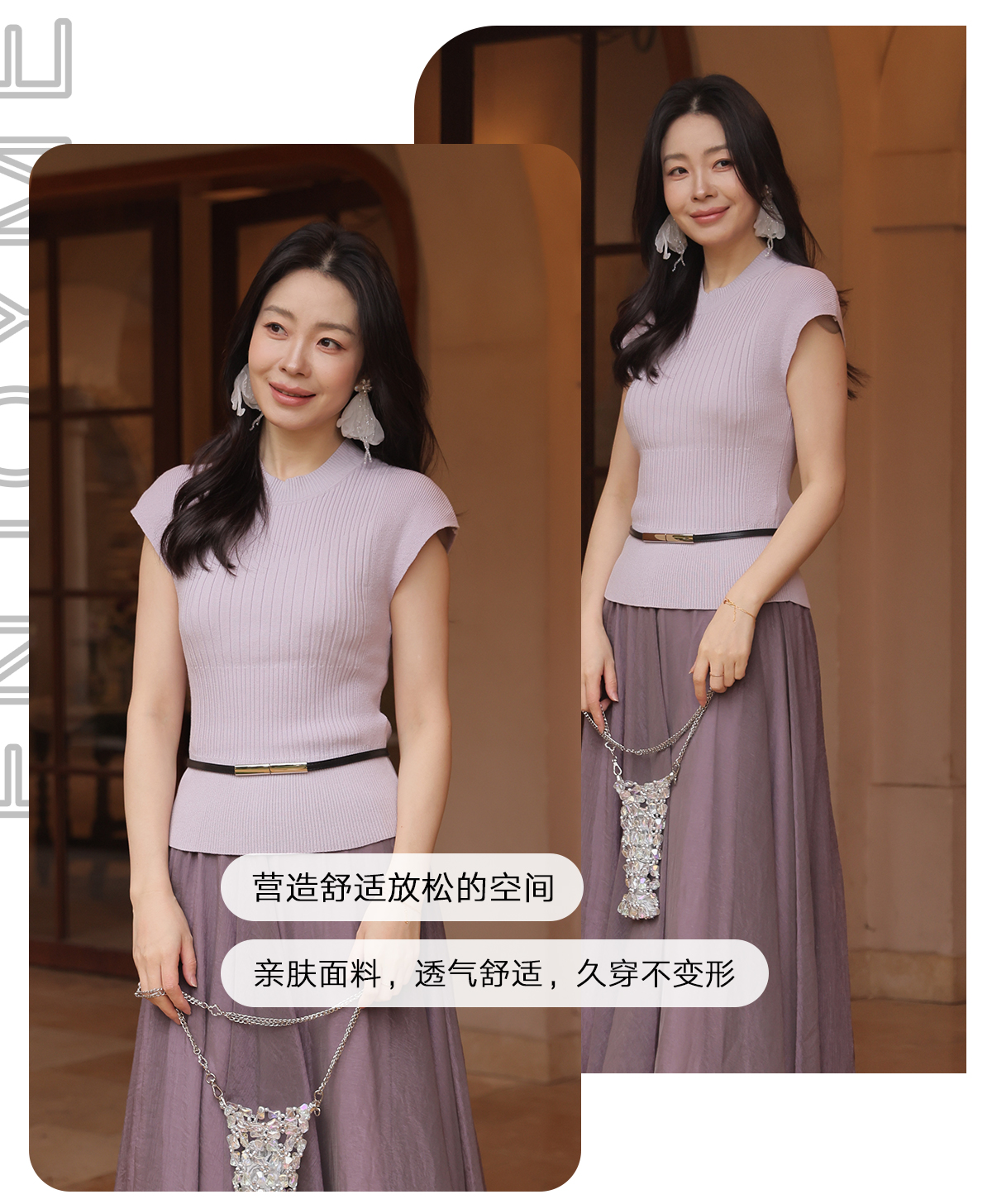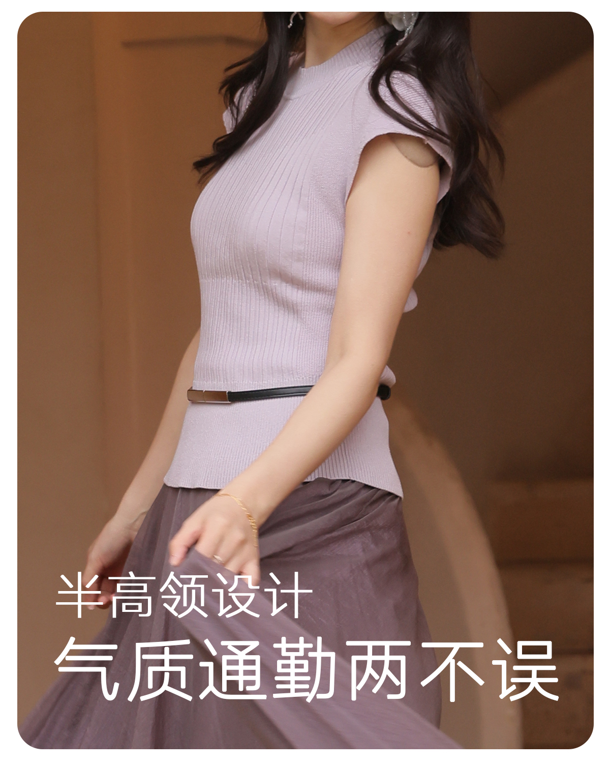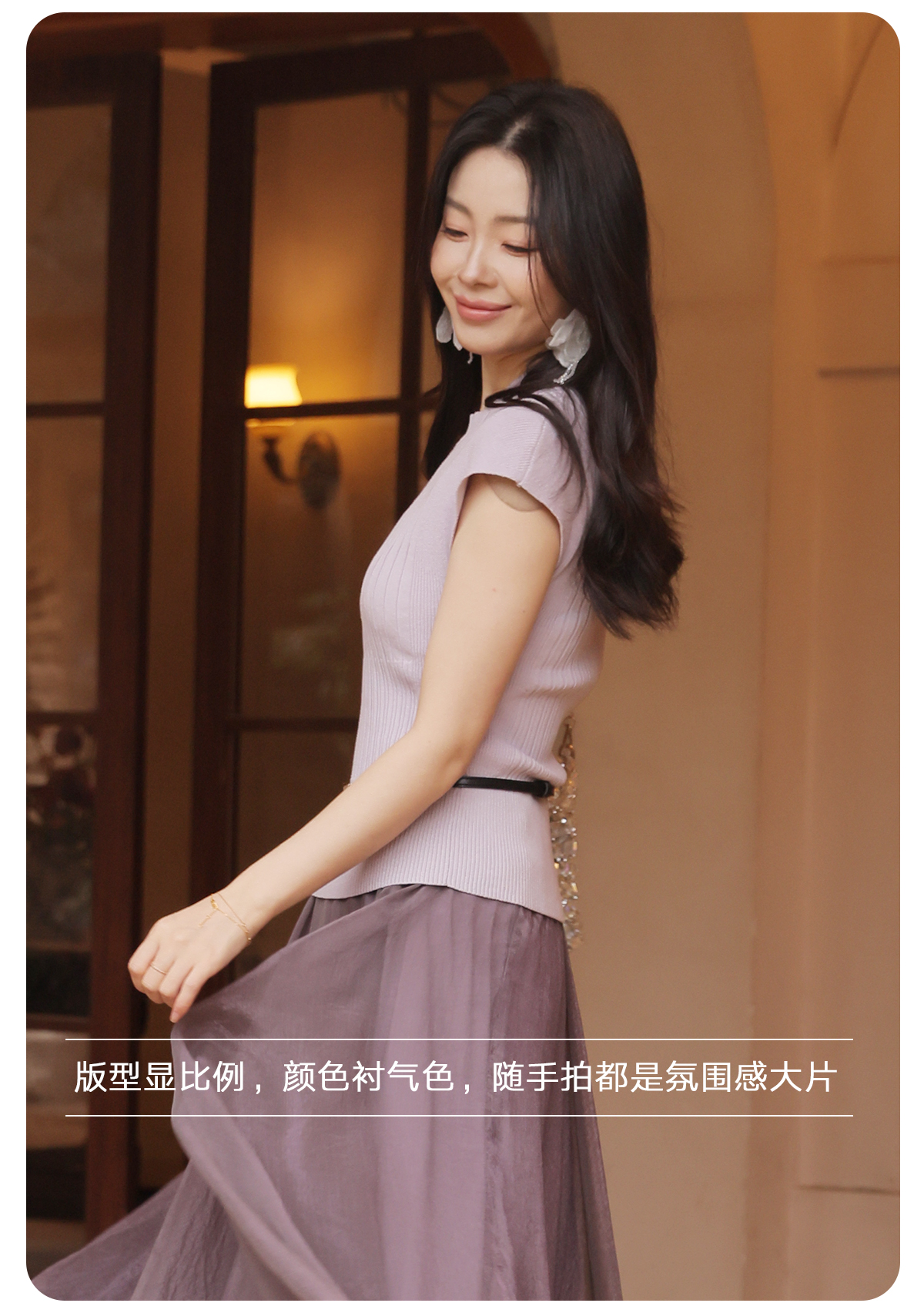【门店同款】ENJOY春季“柔光芳序”腰带修身针织上衣 169100058