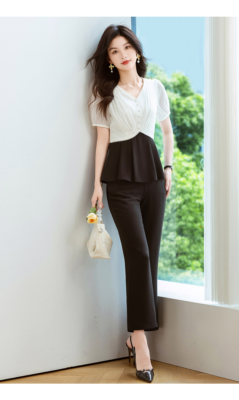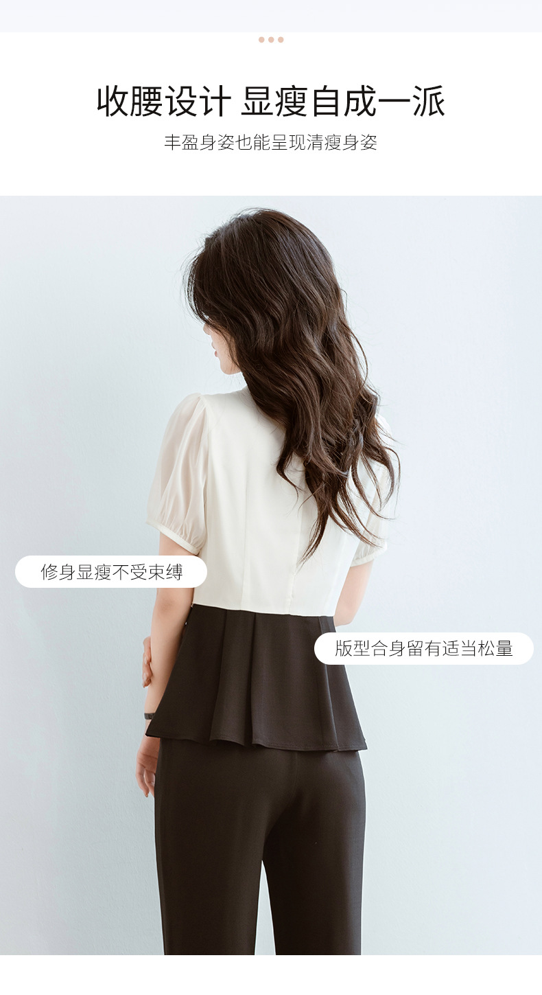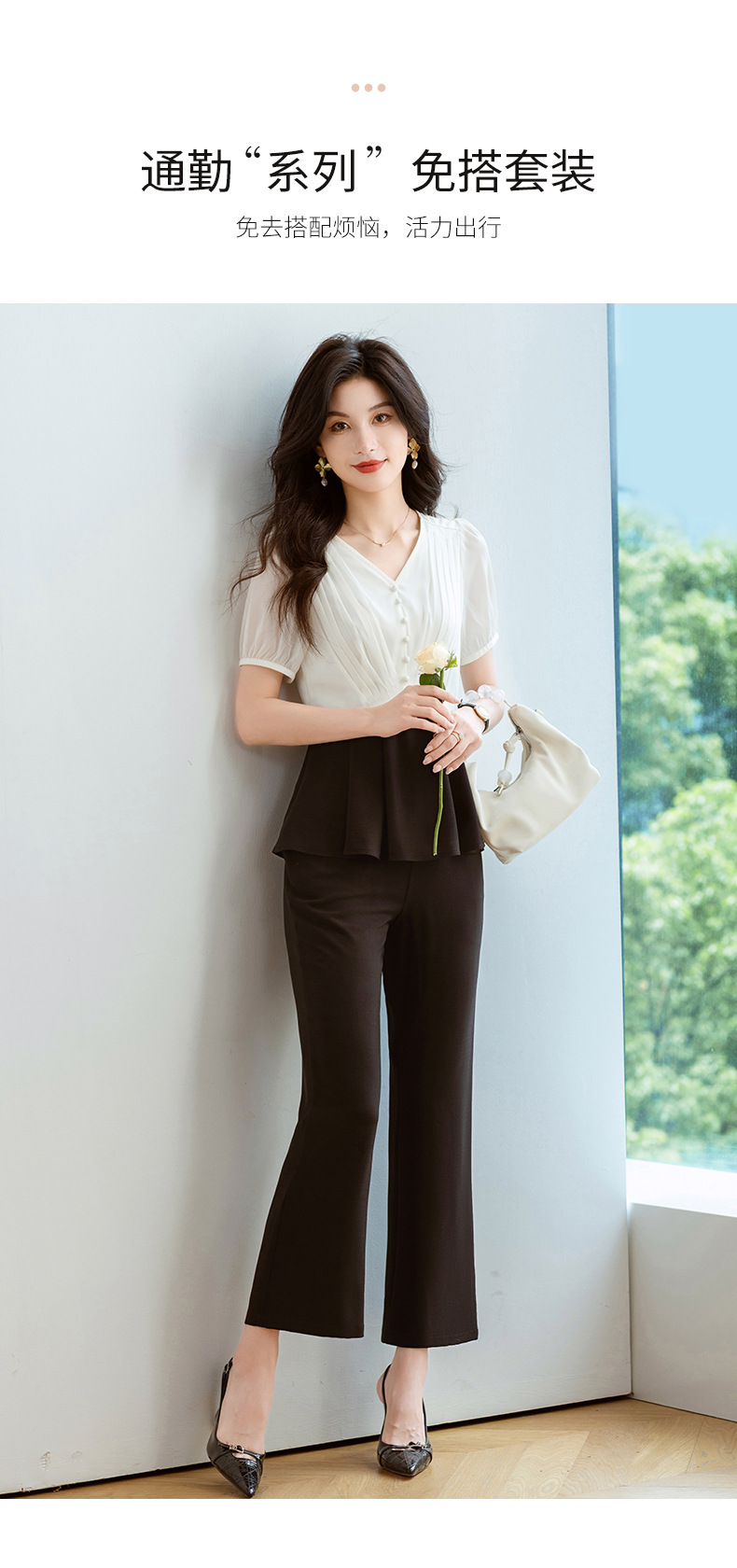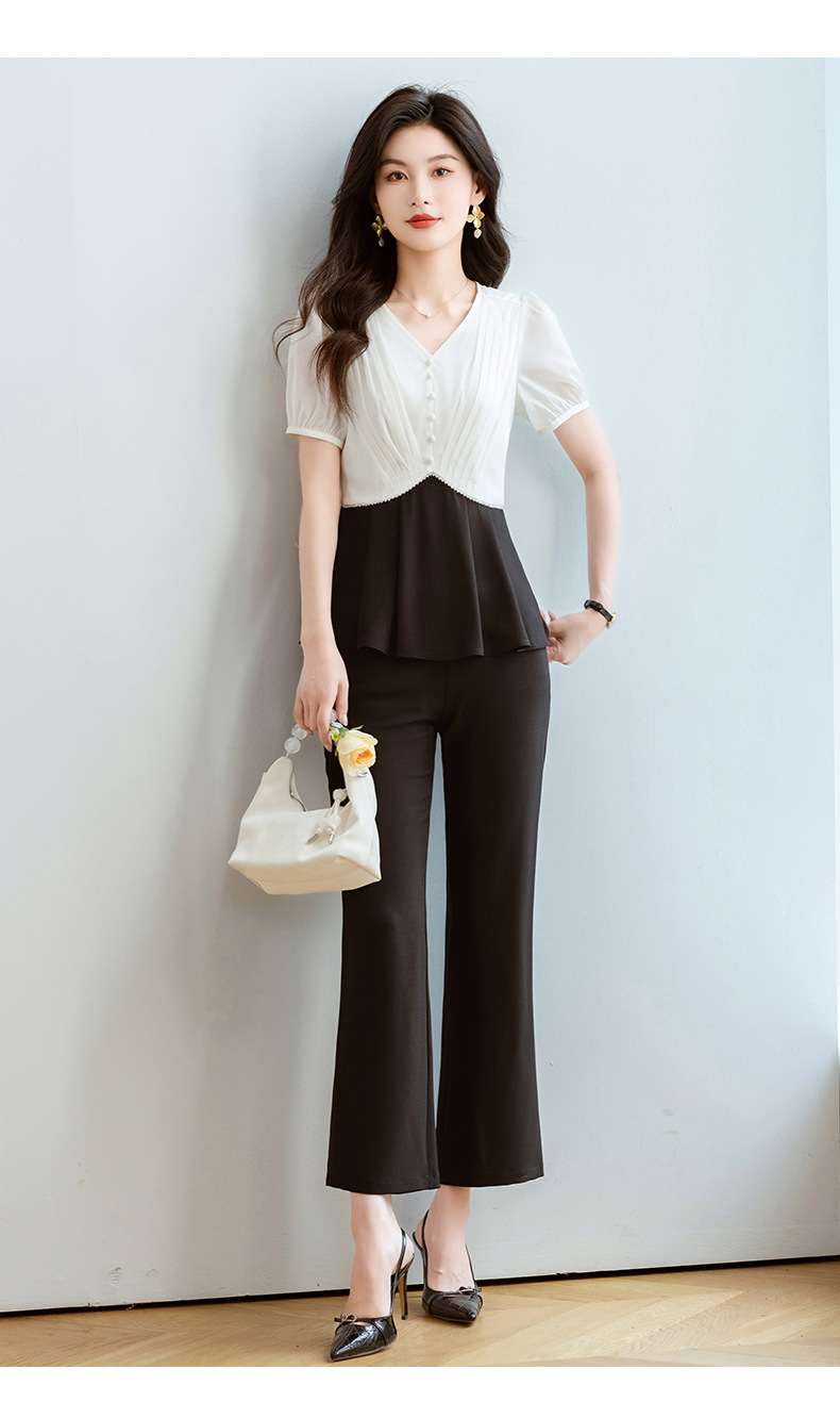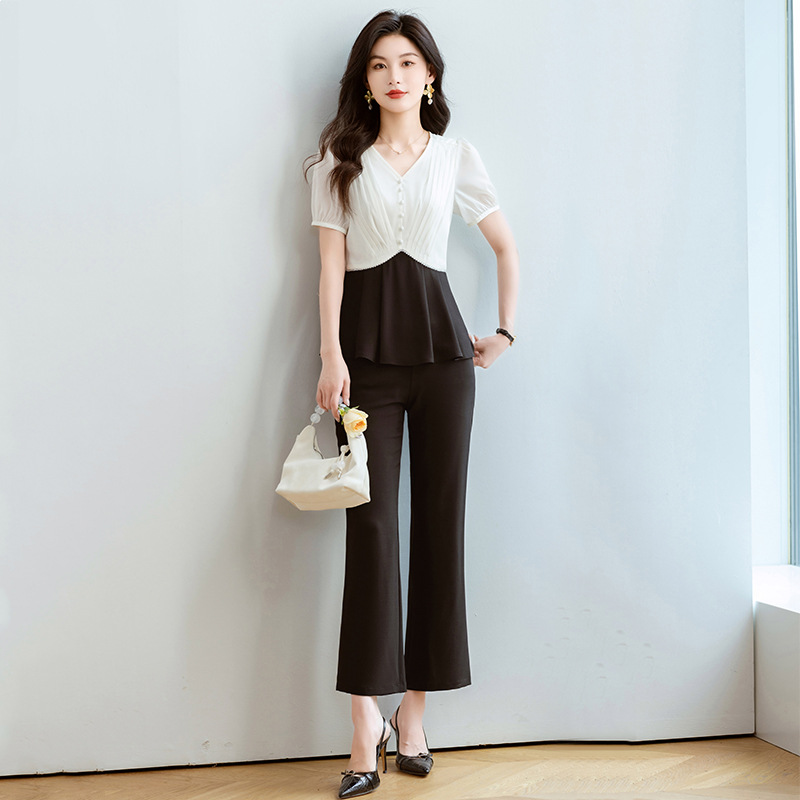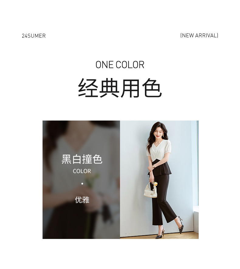 拼色短袖小衫,微喇裤两件套QYM-TB-FD1035-Y