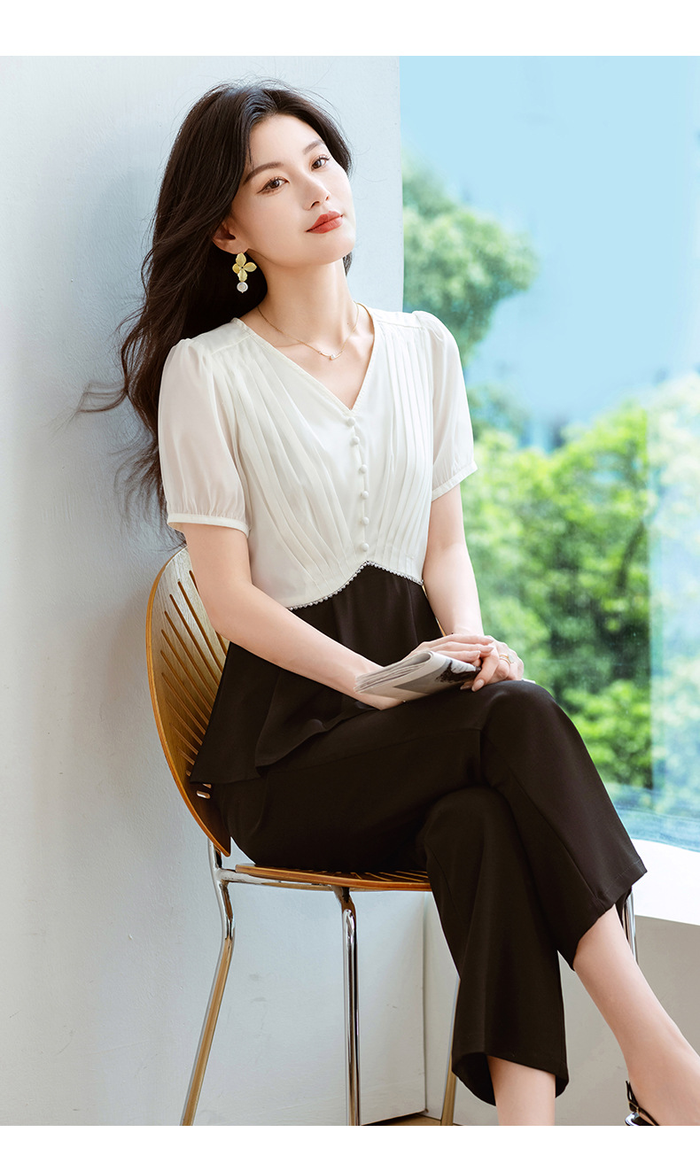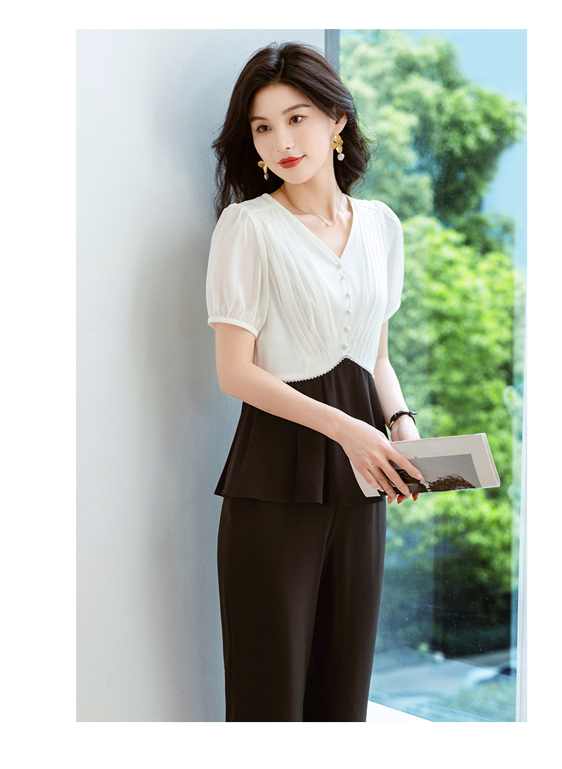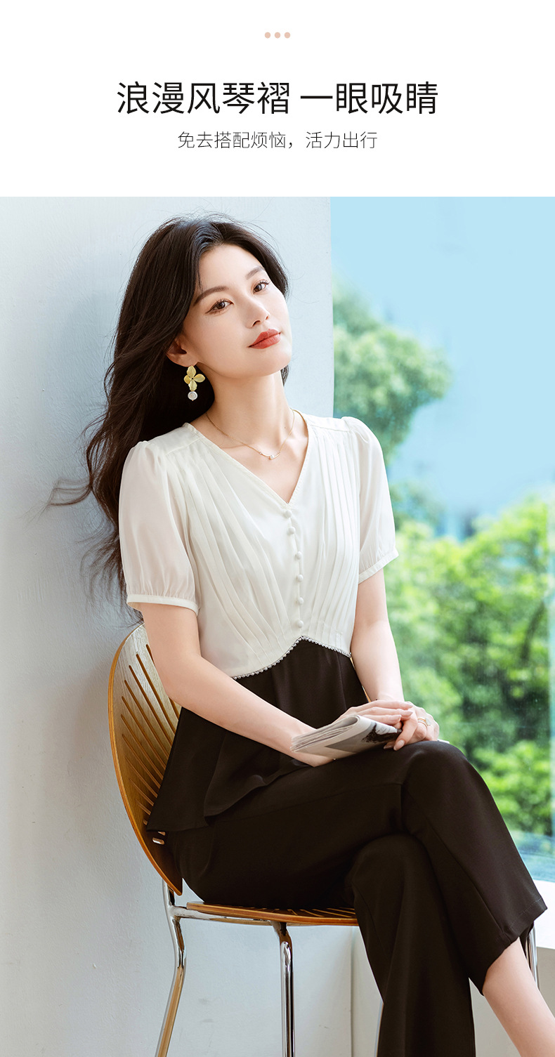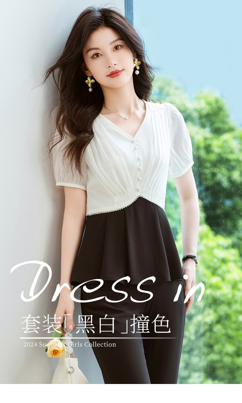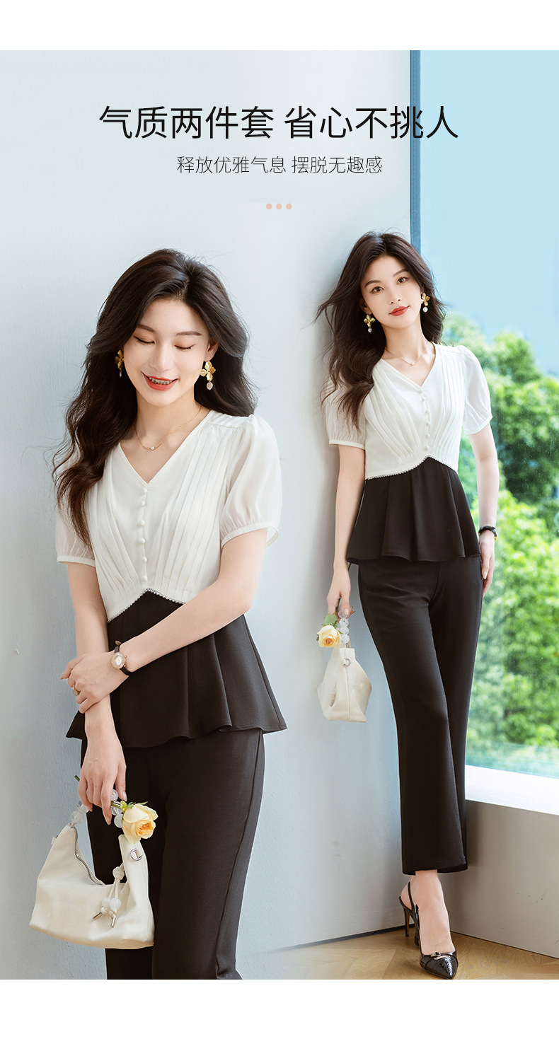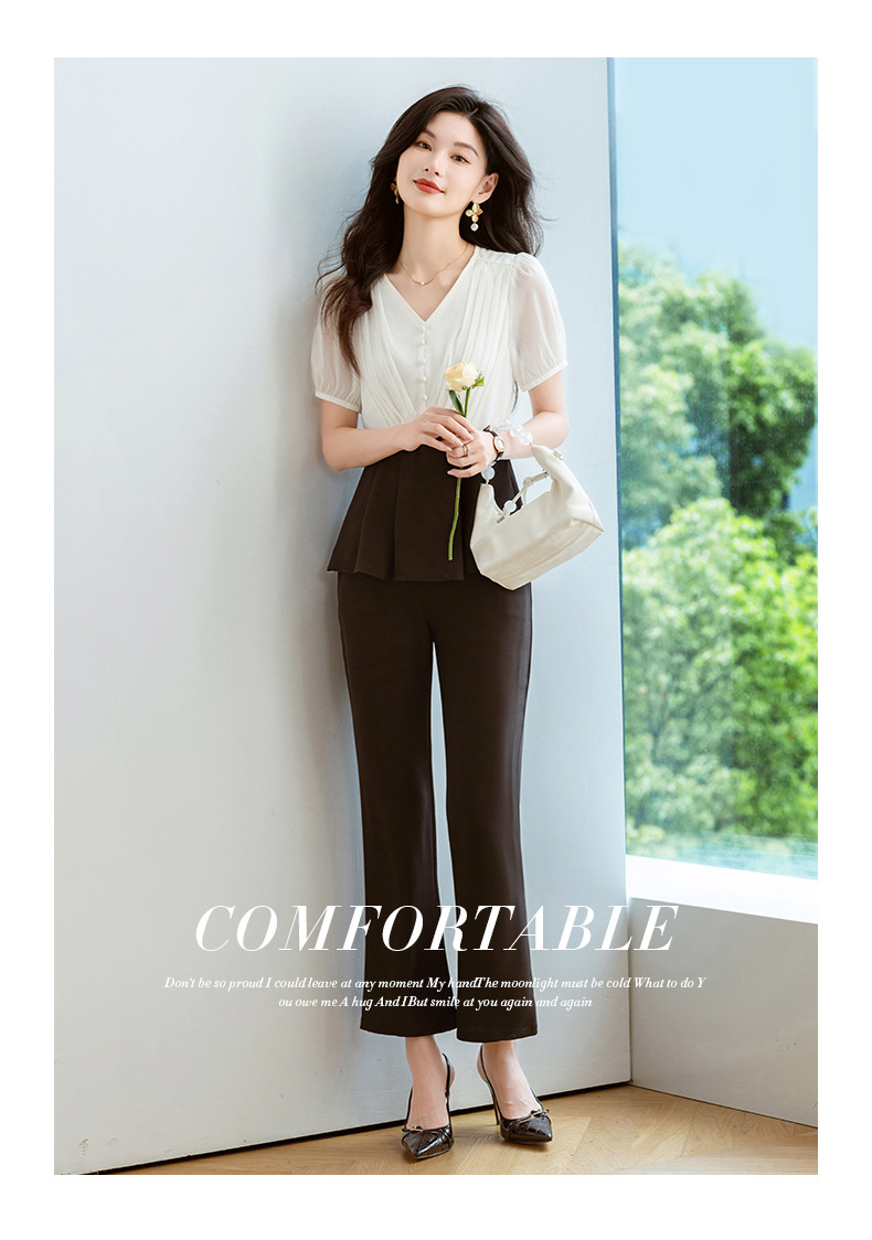 拼色短袖小衫,微喇裤两件套QYM-TB-FD1035-Y