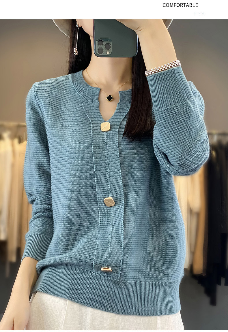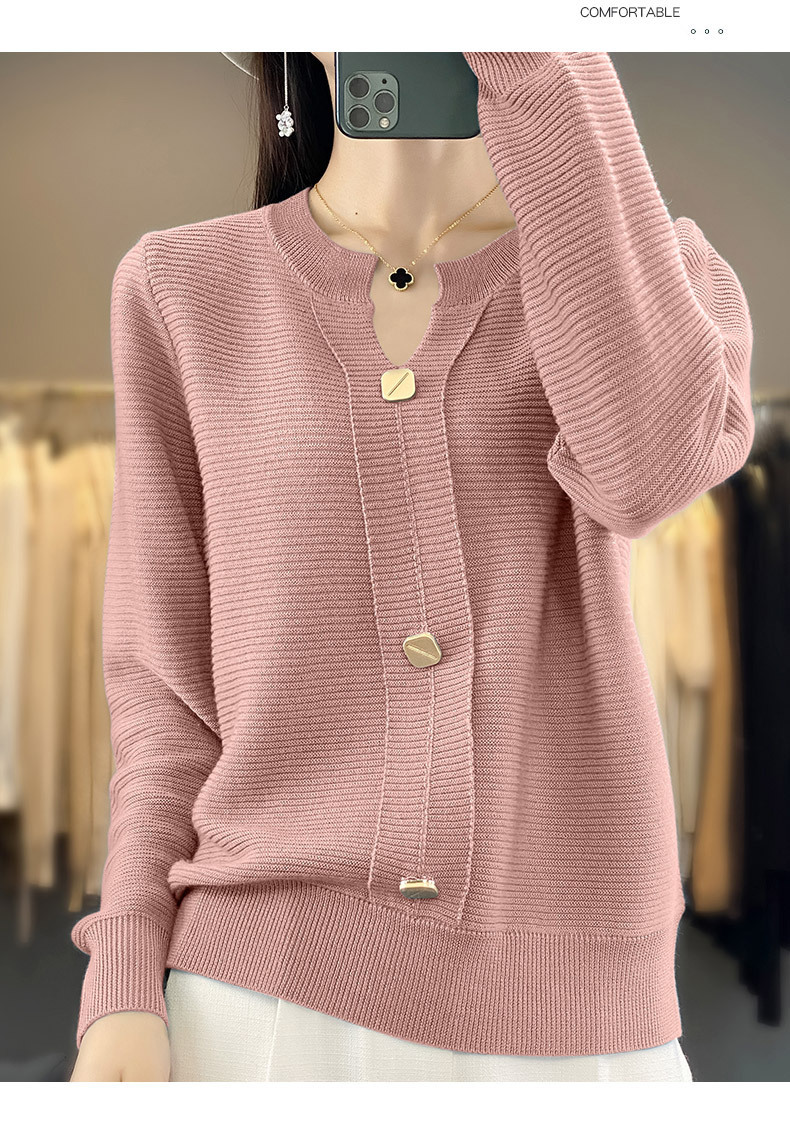 秋冬季上新打底衫气质套头圆领毛衣针织宽松内搭QH-JR-387