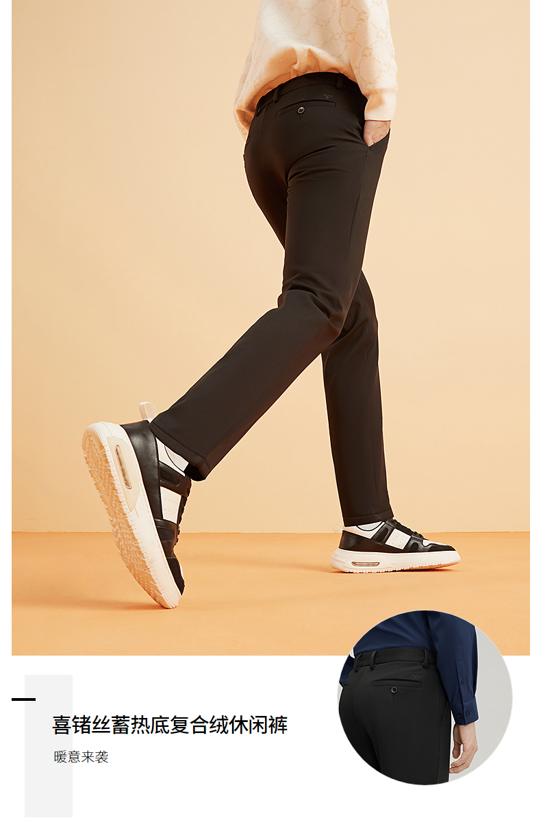 【复合绒】柒牌男装休闲裤男秋冬新品商务百搭保暖修身直筒长裤子 127H70720
