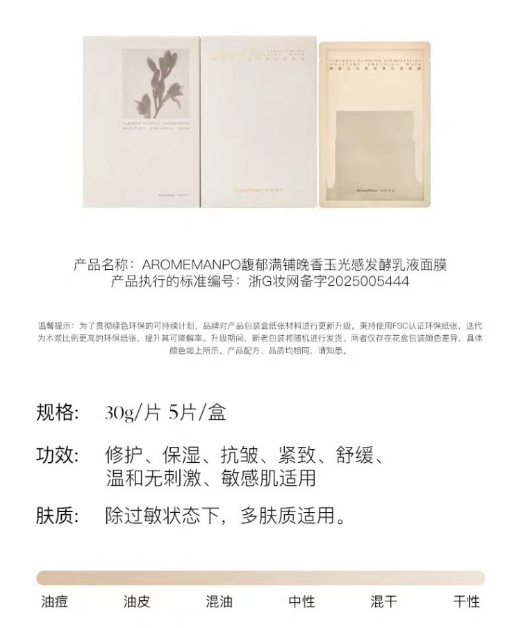 【恬趣轻奢专属】AromeManpo/馥郁满铺 晚香玉光感发酵乳液面膜 30g/P 30g-1片
