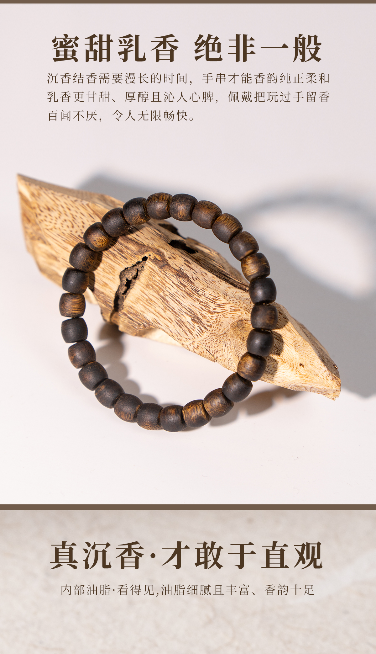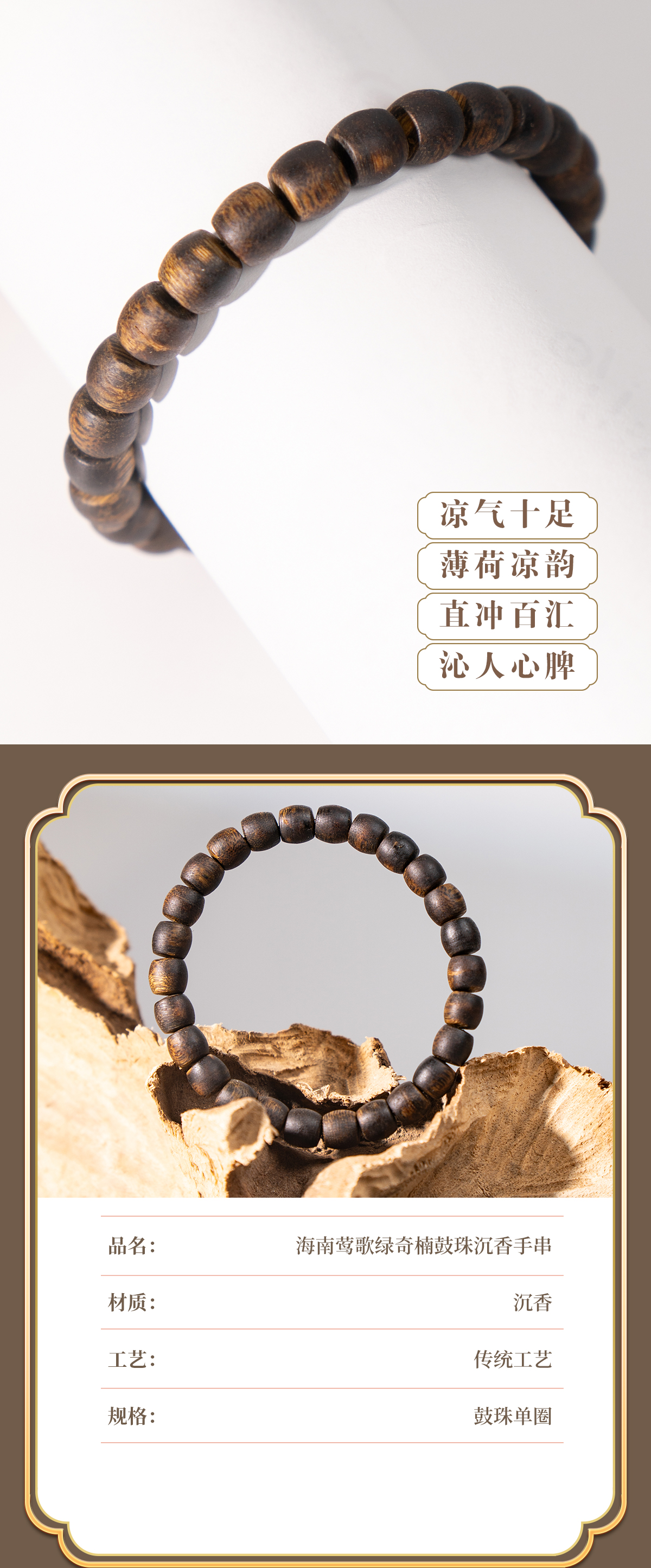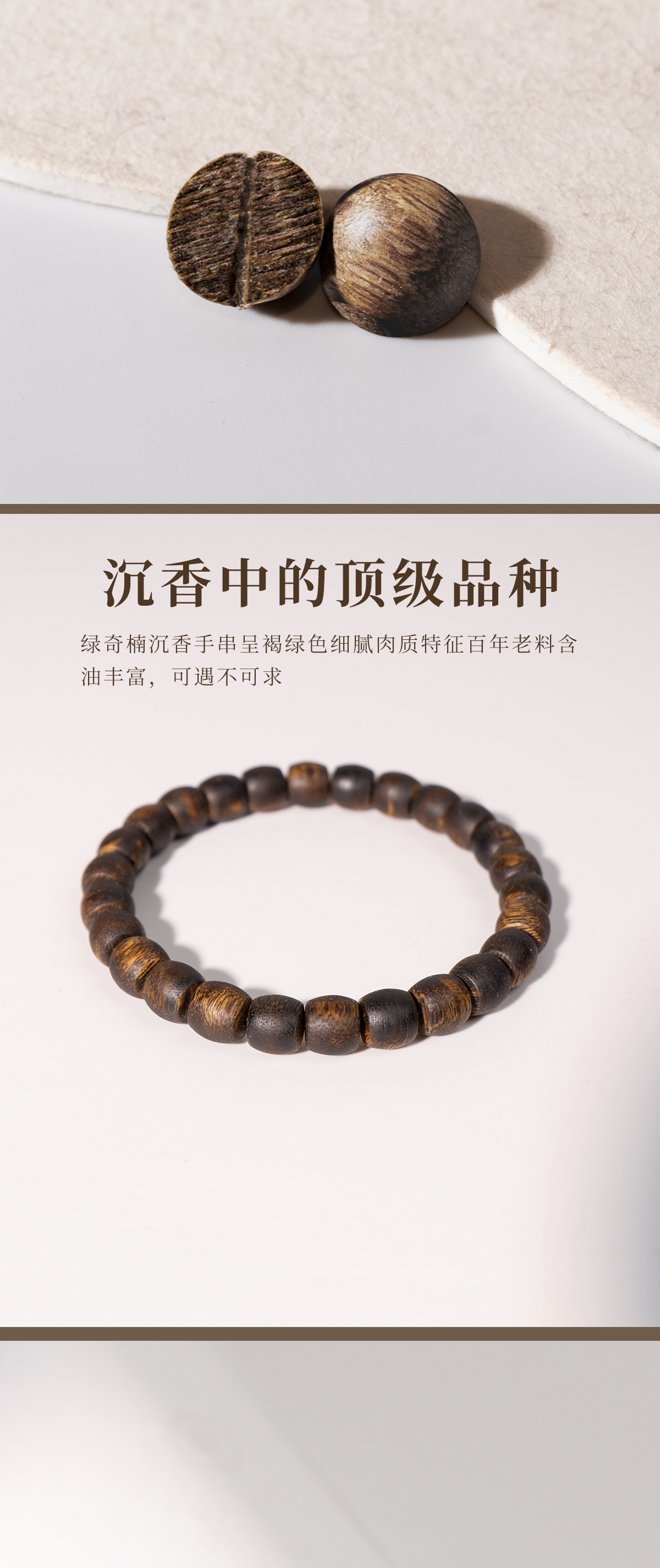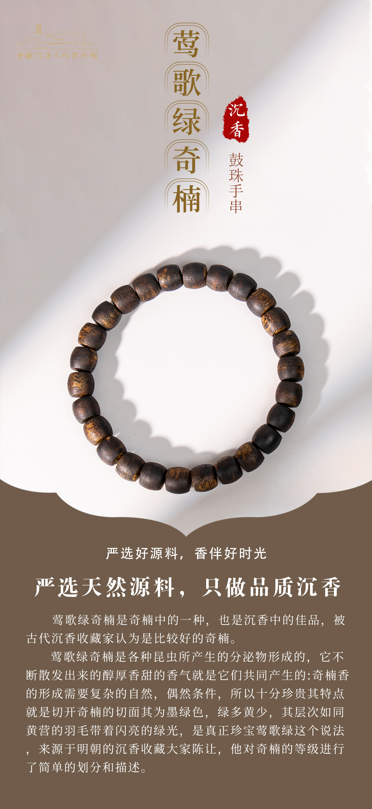 中国沉香文化博物馆 绿奇楠鼓珠沉香手串0.8(99沉)8g+