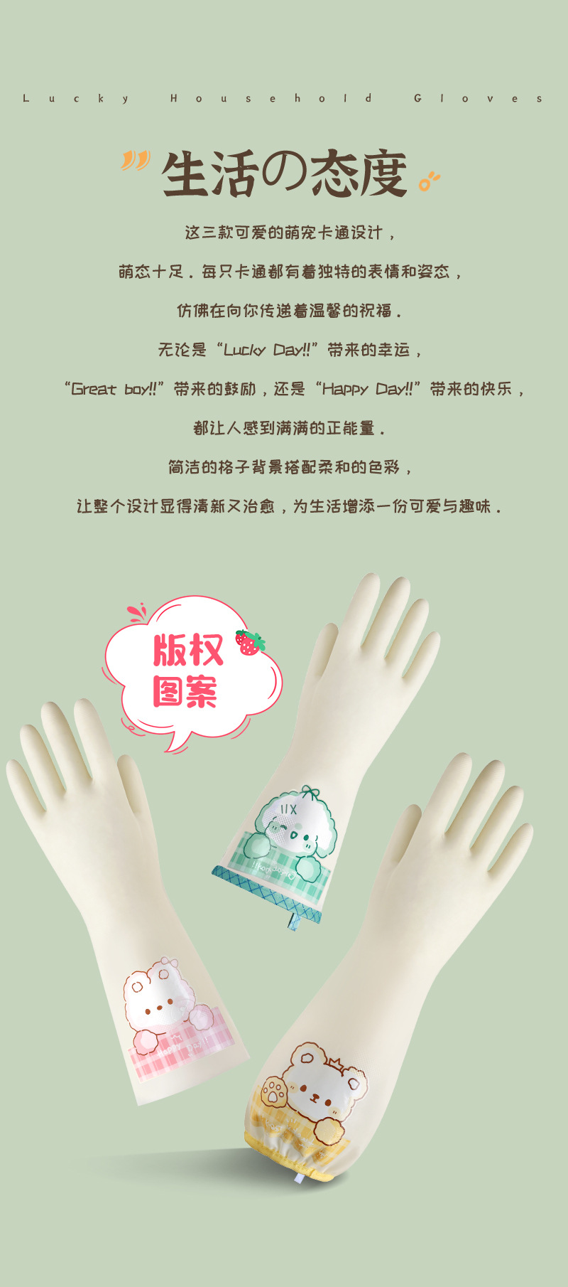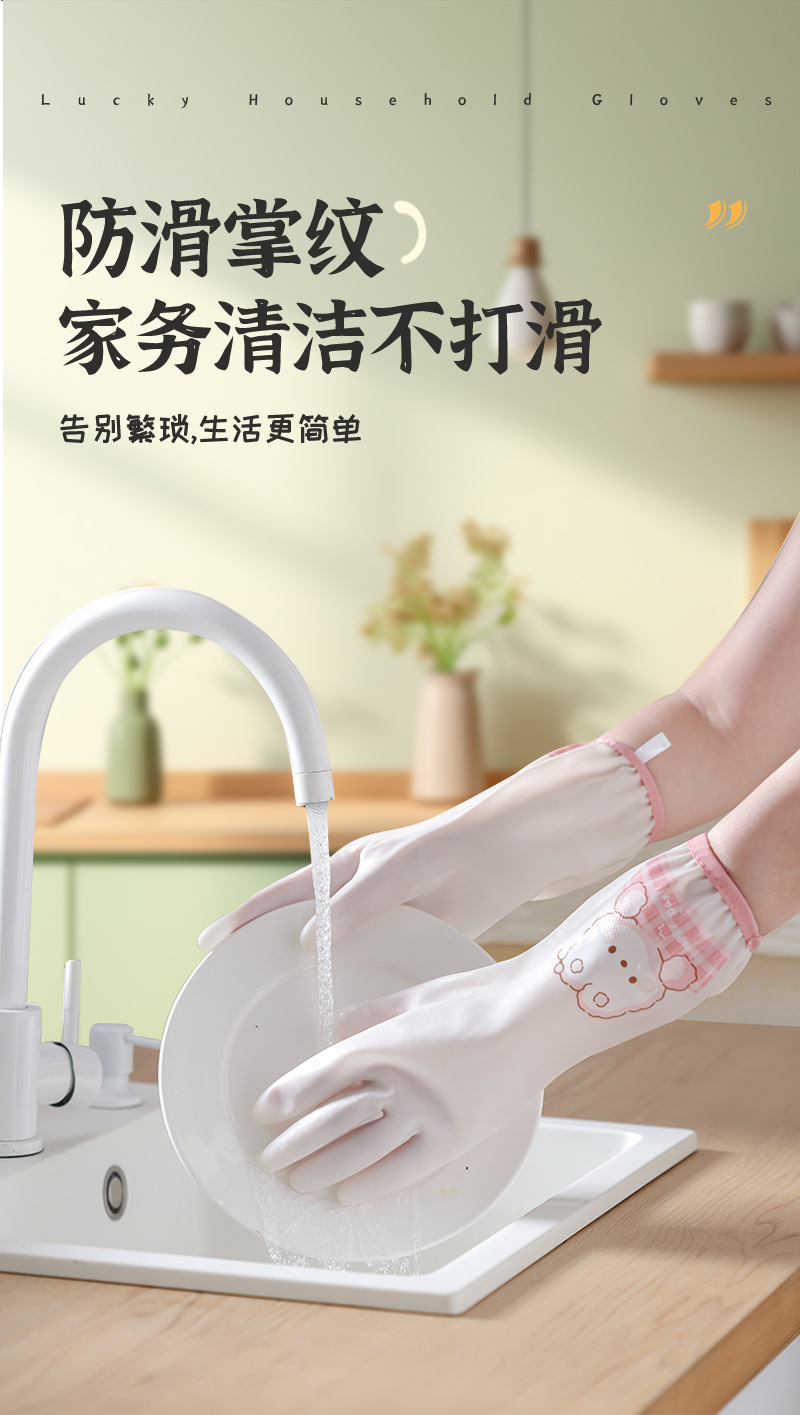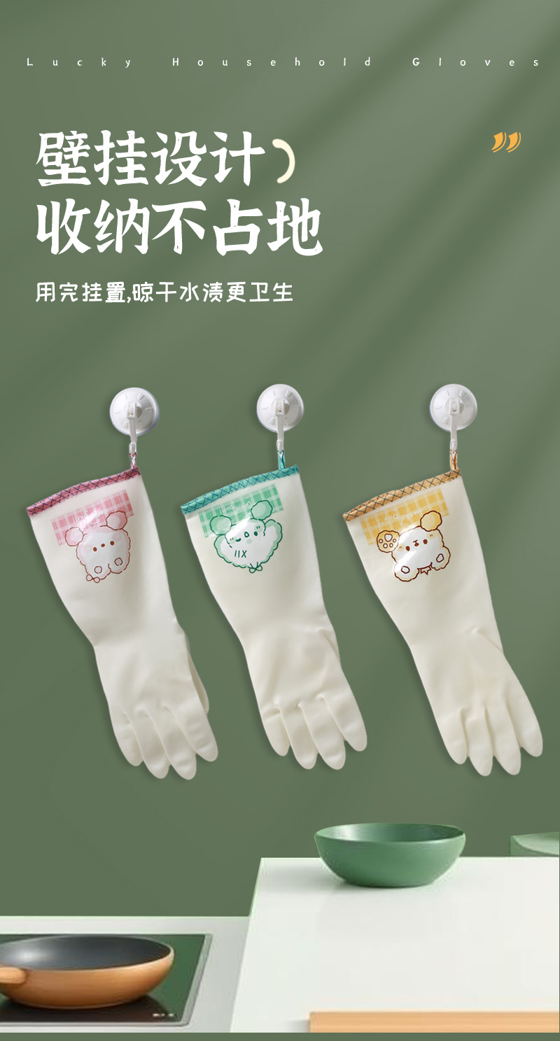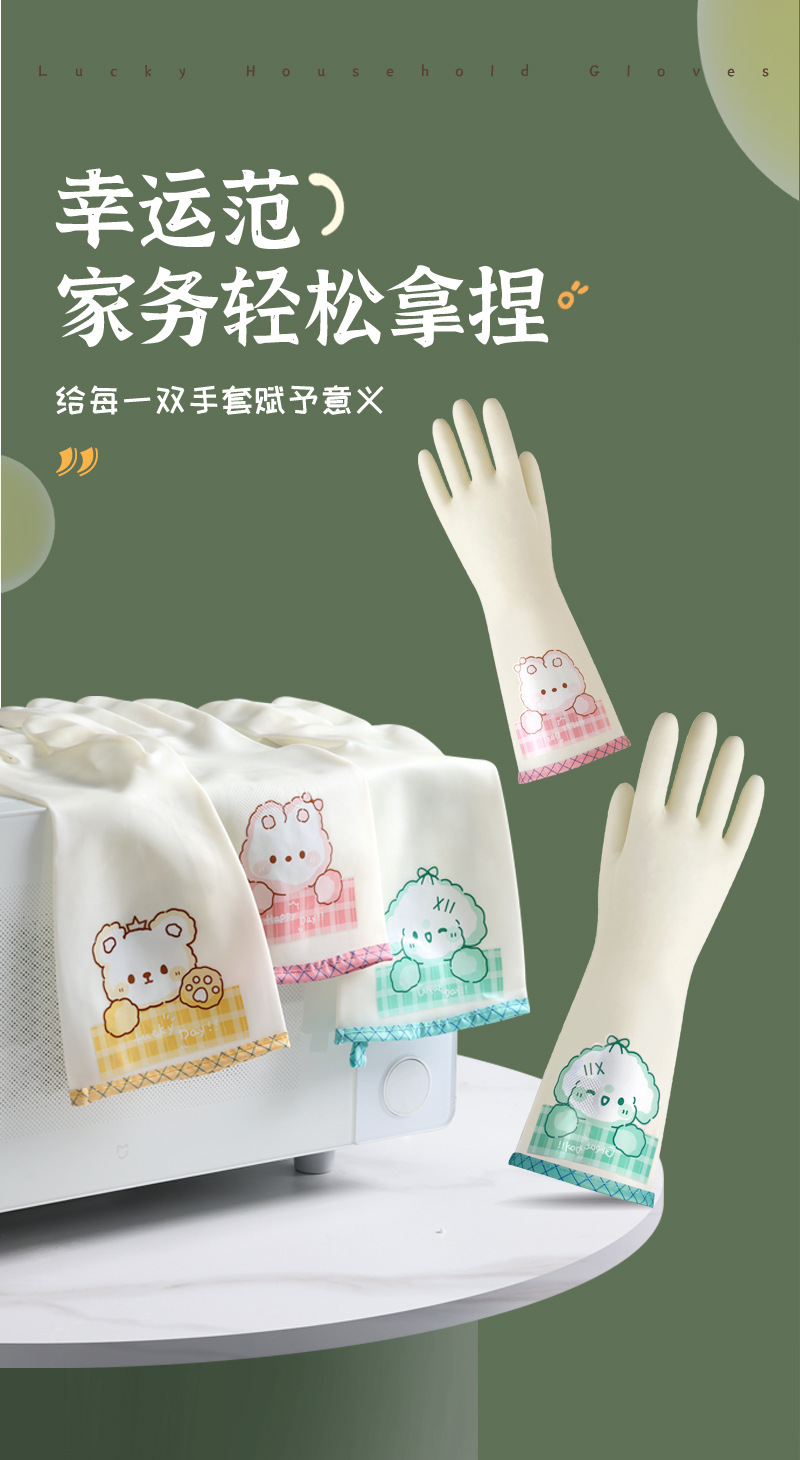 2双巨划算【萌宠卡通设计❗️耐用不易破】洗碗手套丁腈清洁用加厚耐用防水胶皮家用洗衣厨房手套丁晴做家务。ja