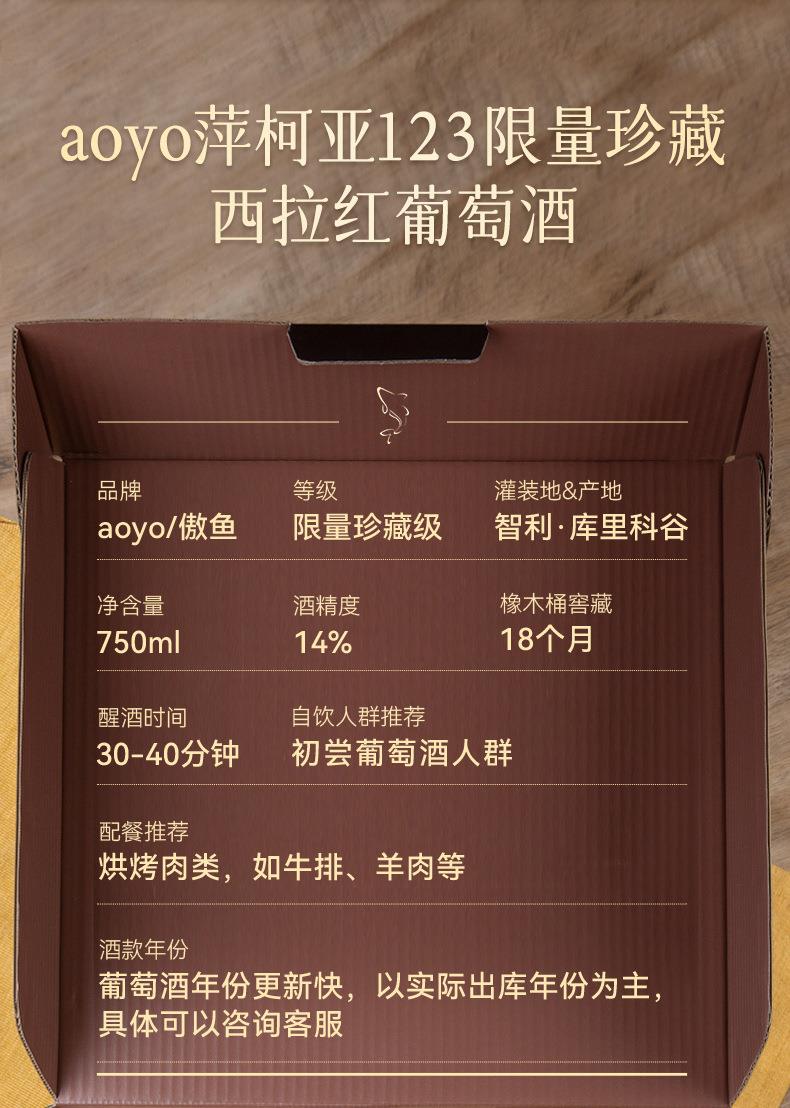 傲鱼智利原装原瓶进口红酒萍柯亚干红葡萄酒水整箱礼盒装