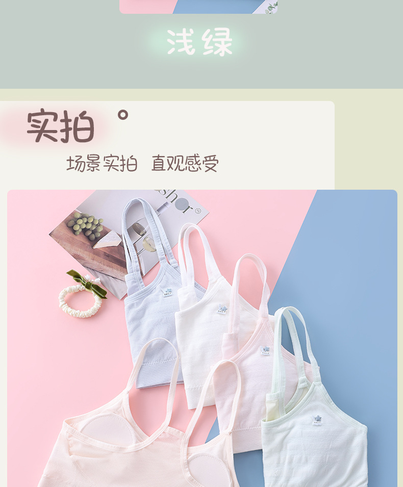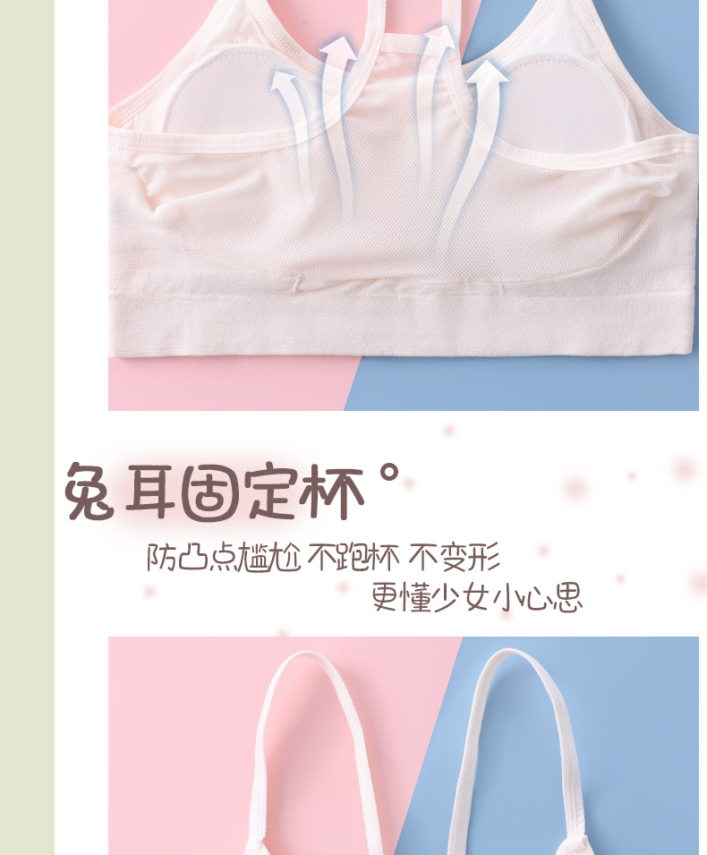 【兔耳固定杯! 防凸点尴尬】无缝发育期少女内衣无痕初中生吊带背心女童兔耳朵杯垫固定杯文胸。ry