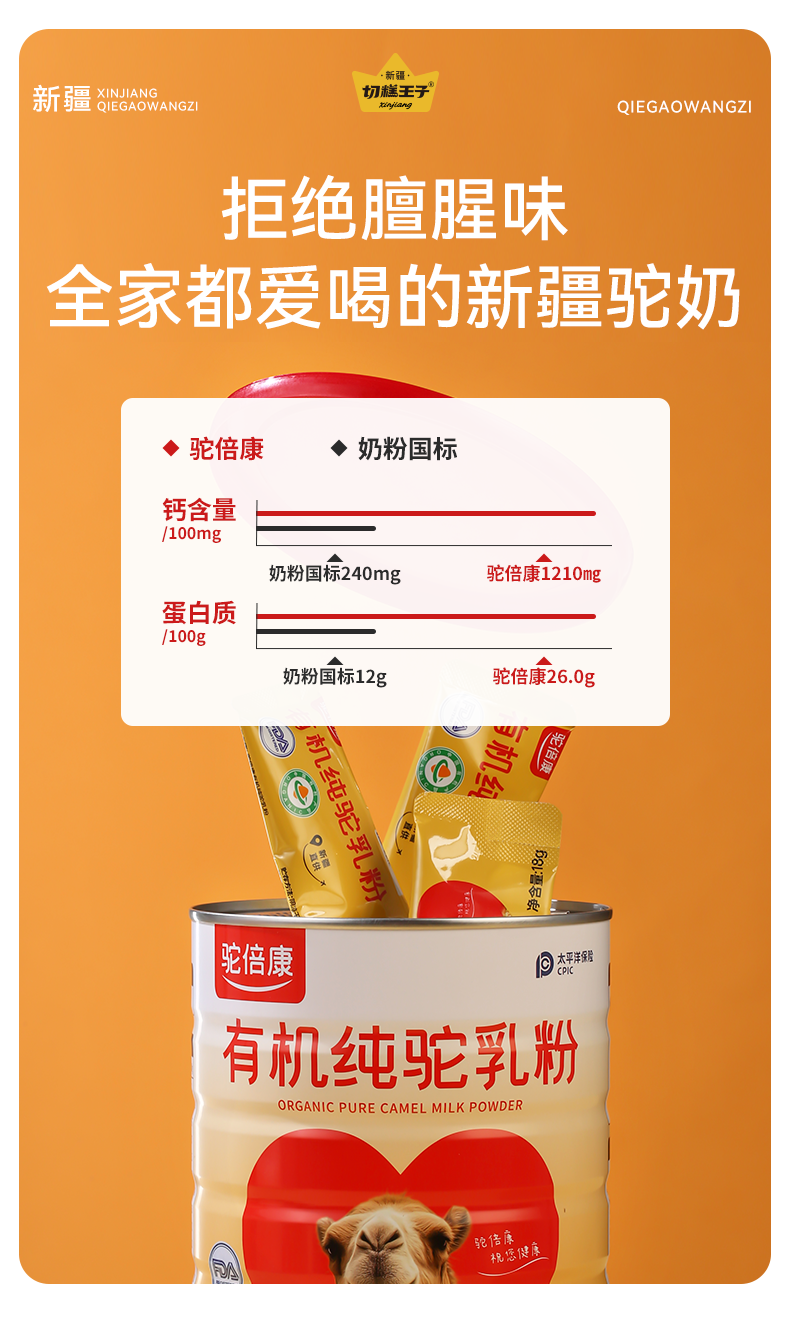切糕王子出品·驼倍康有机纯驼乳粉 一口穿越到北纬44°黄金牧场!