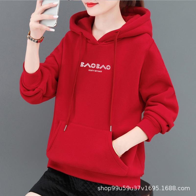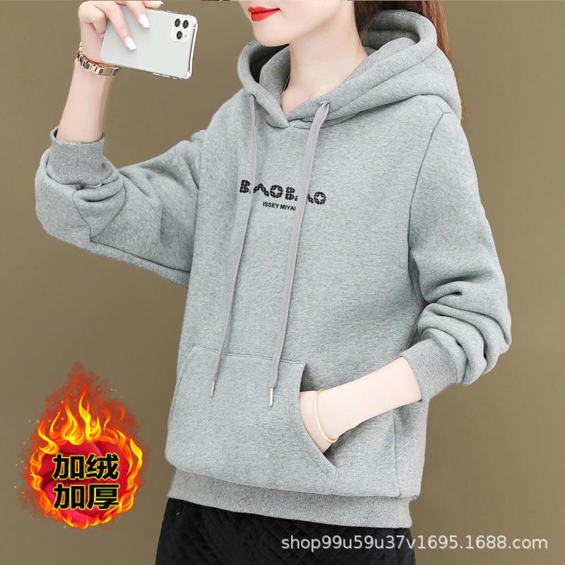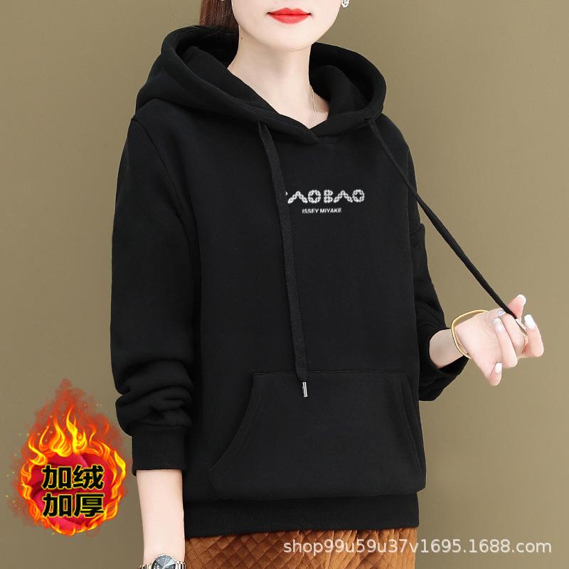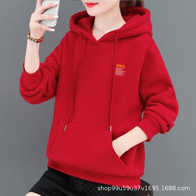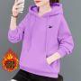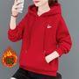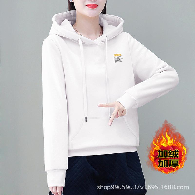 加绒卫衣连帽棉质正肩运动宽松休闲时尚印花秋冬外套多色女潮上衣