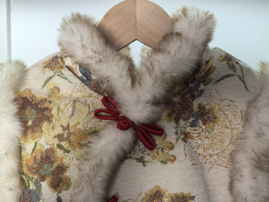 衣领、袖口、衣襟处都做了毛绒收边,暖和又时髦。