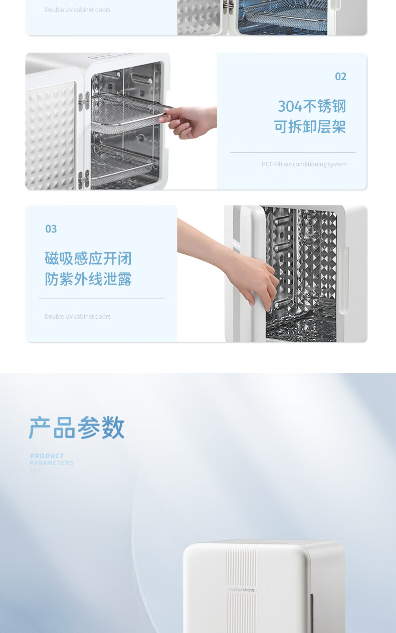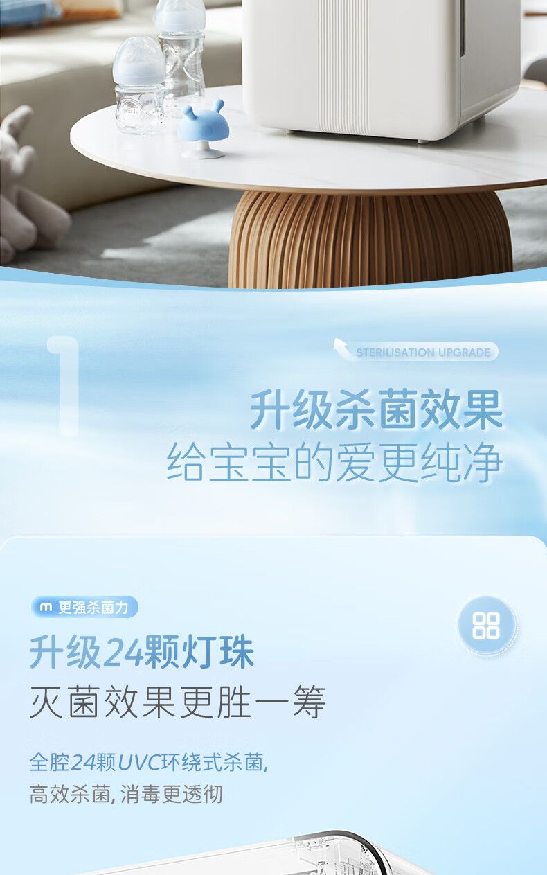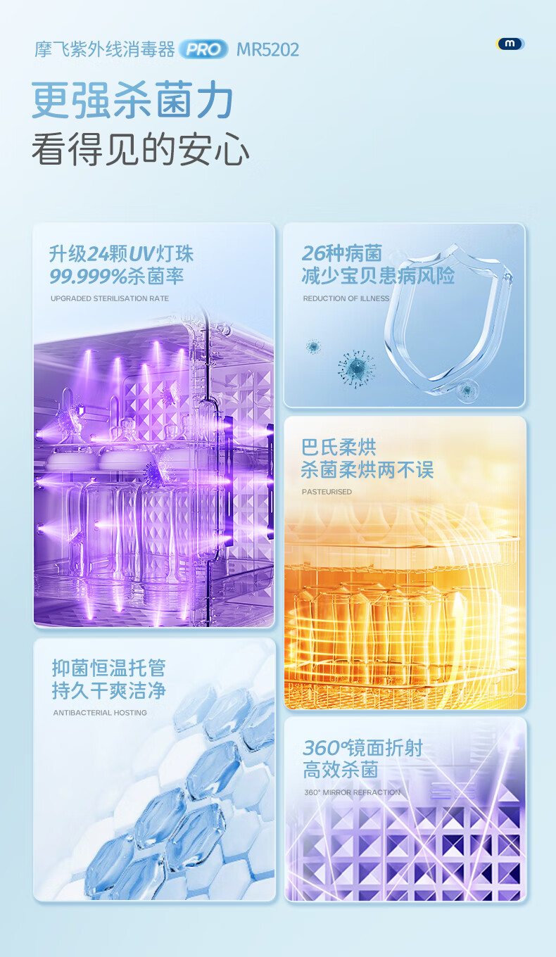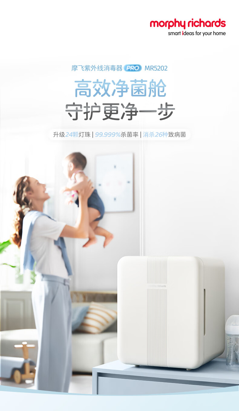摩飞电器(Morphyrichards)衣物烘干机内衣内裤消毒杀菌机紫外线杀菌护理高低温双频烘干台式21L大容量婴儿奶瓶消毒柜 【升级24颗灯珠】190W 72H保管 PRO款MR5202 21L