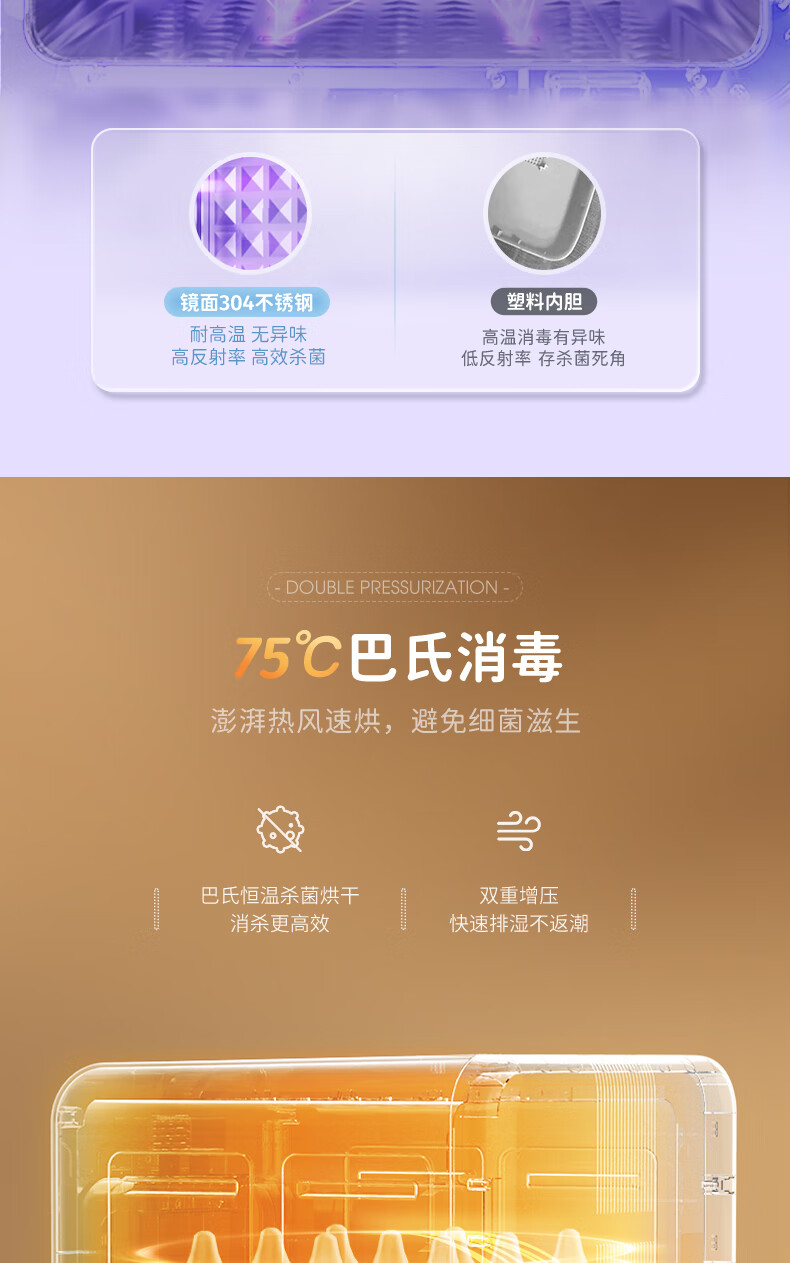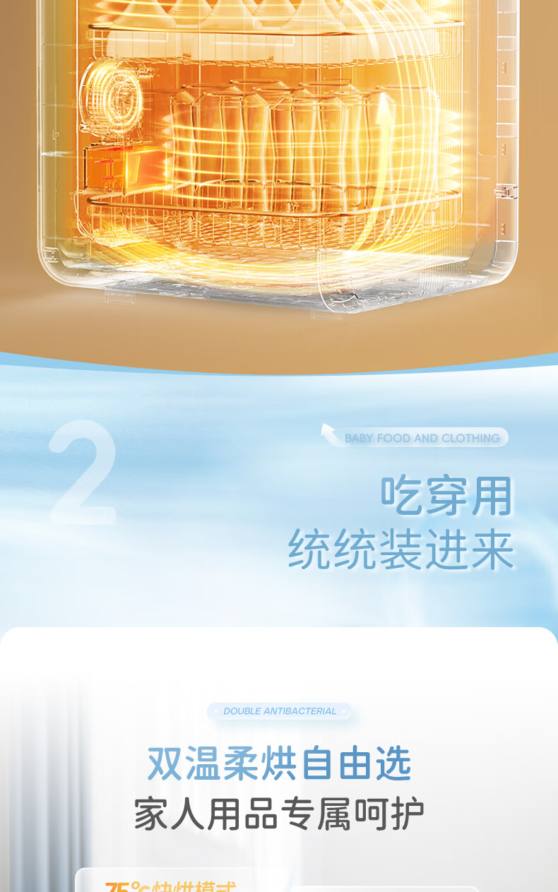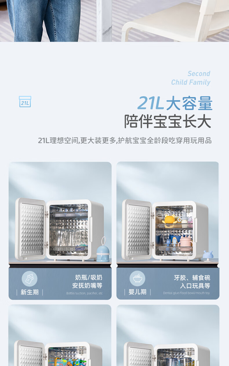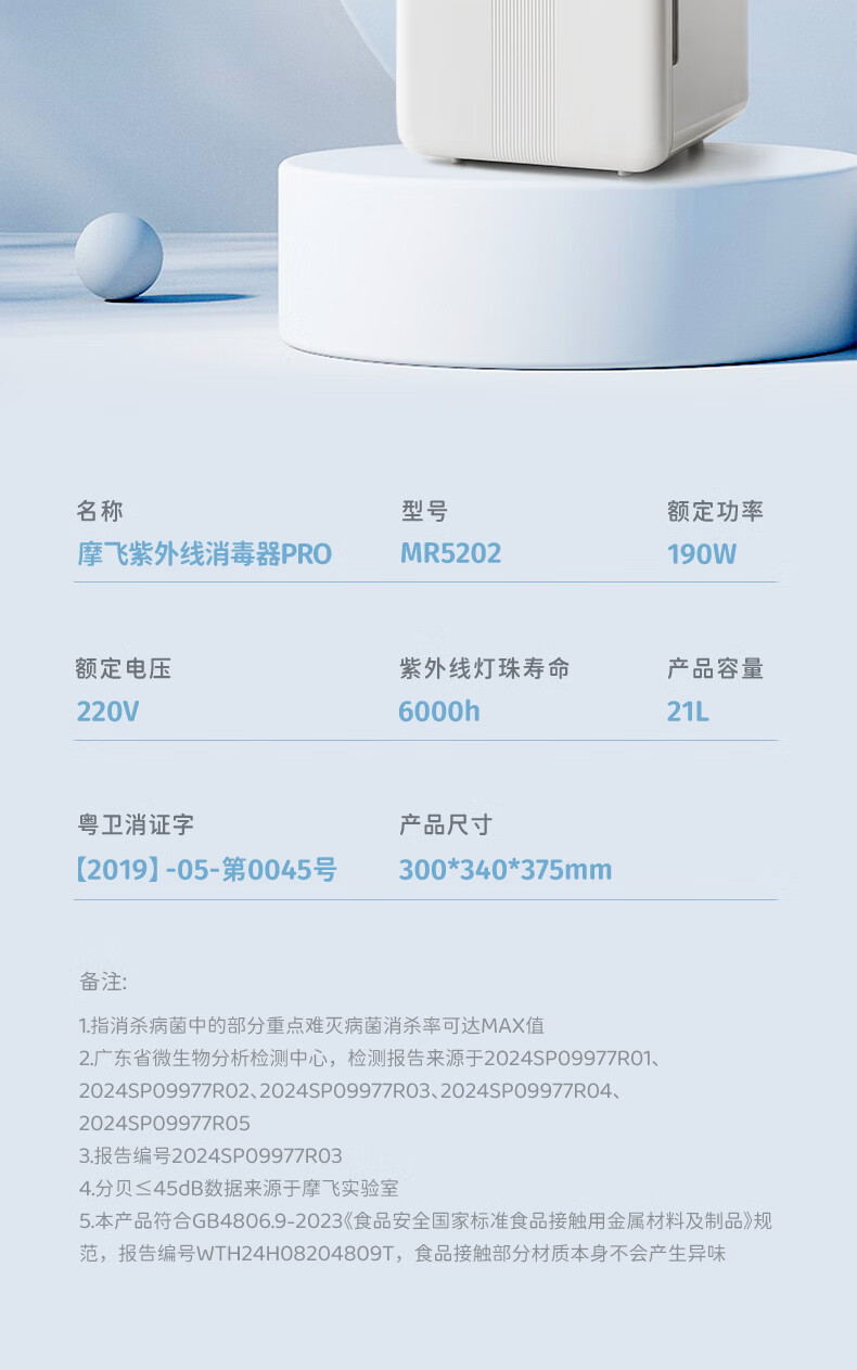 摩飞电器(Morphyrichards)衣物烘干机内衣内裤消毒杀菌机紫外线杀菌护理高低温双频烘干台式21L大容量婴儿奶瓶消毒柜 【升级24颗灯珠】190W 72H保管 PRO款MR5202 21L