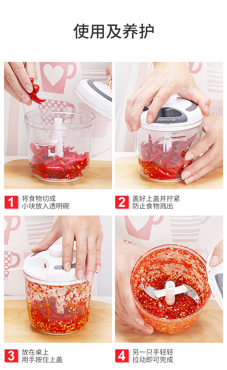 九阳蒜泥器 家用拉蒜器 捣蒜器 厨房多功能料理机搅切菜器碎辣椒神器(专用赠品勿拍)