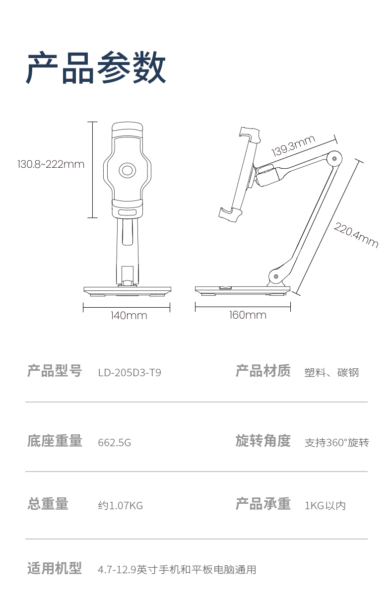 解放你的双手的神器:ledetech懒人长臂支架(PAD支架 4.7-12.9寸)
