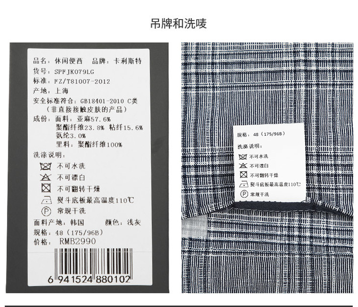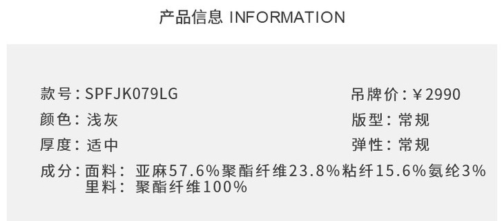 callisto亚麻格纹休闲便西 SPFJK079LG
