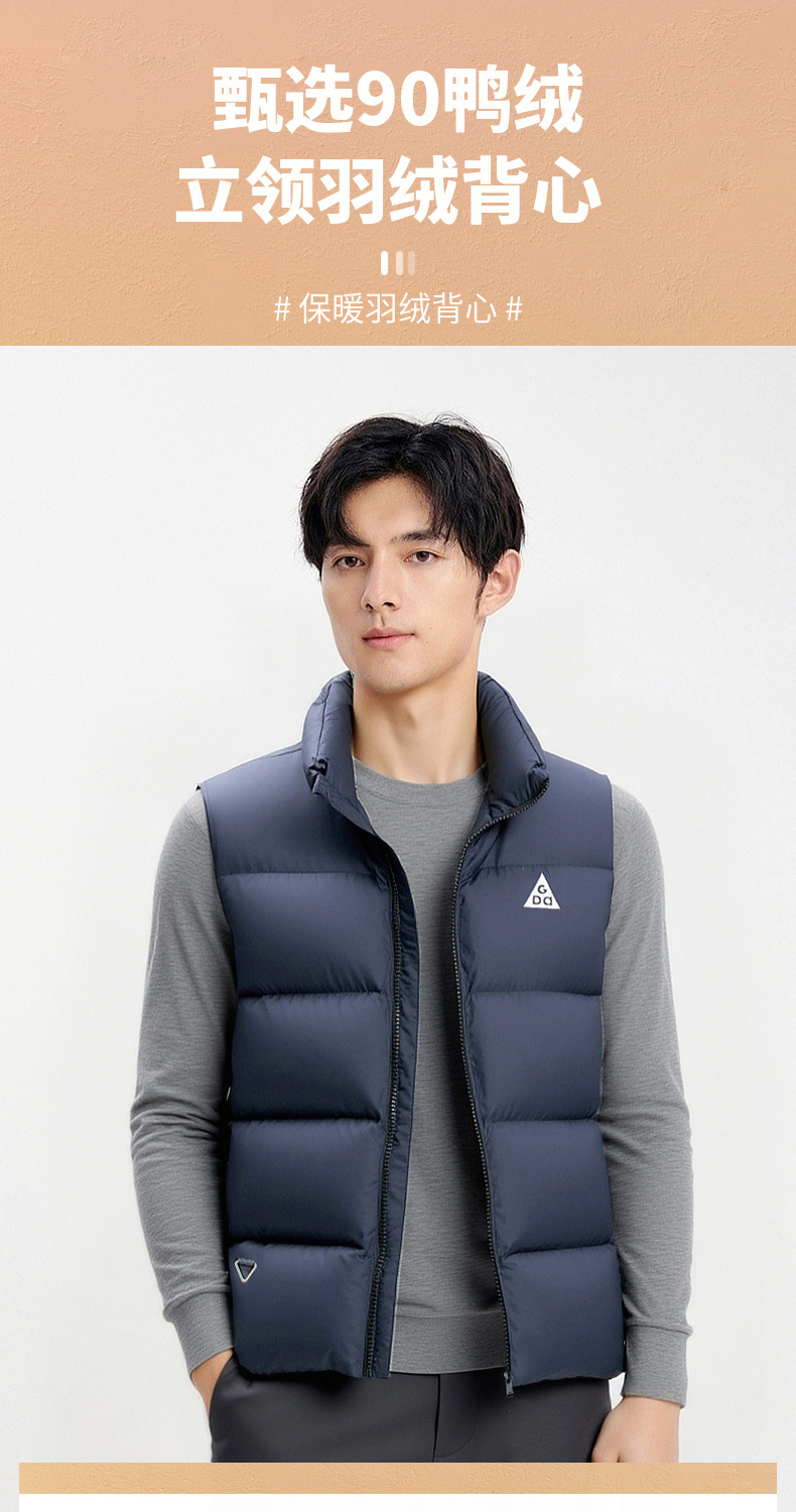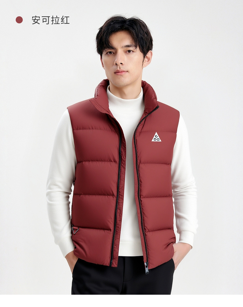 【鸭绒90%】圣得西男锁温立领羽绒背心2025秋冬款不跑绒简约外套