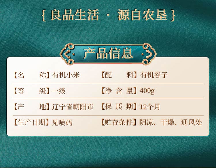 良农嫁稻 中国农垦 有机杂粮黄小米 东北小米 0添加 400g*2袋