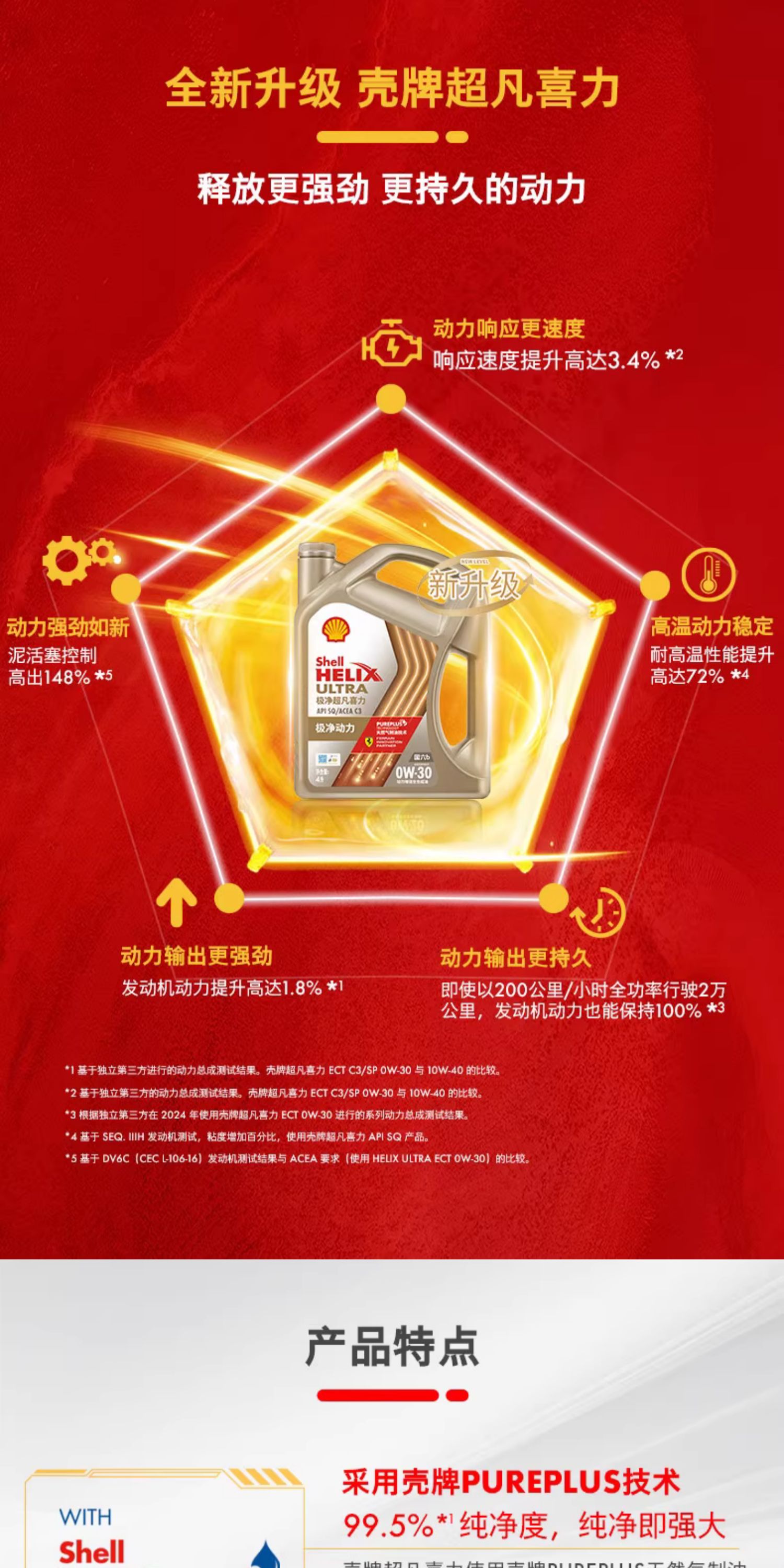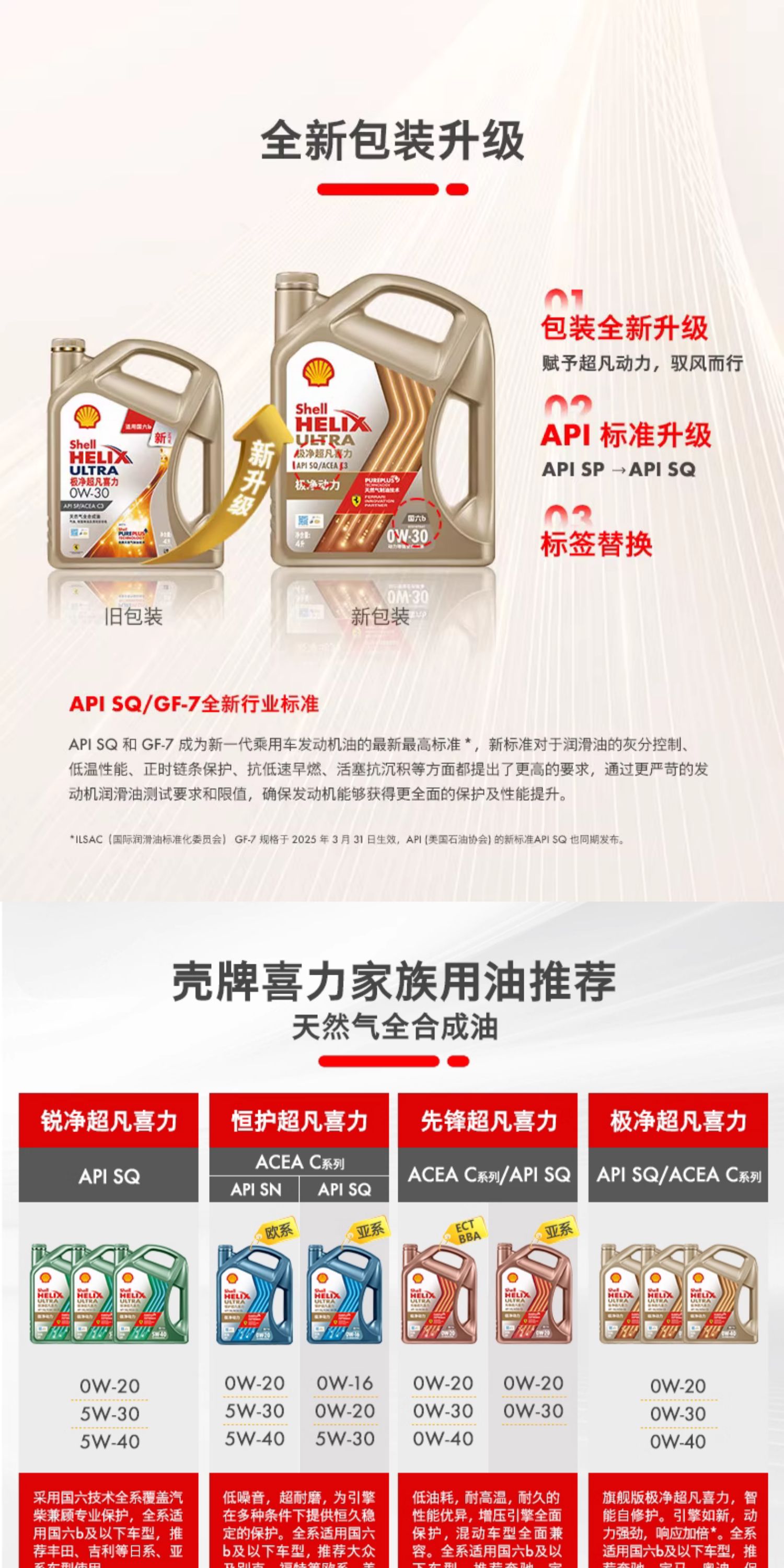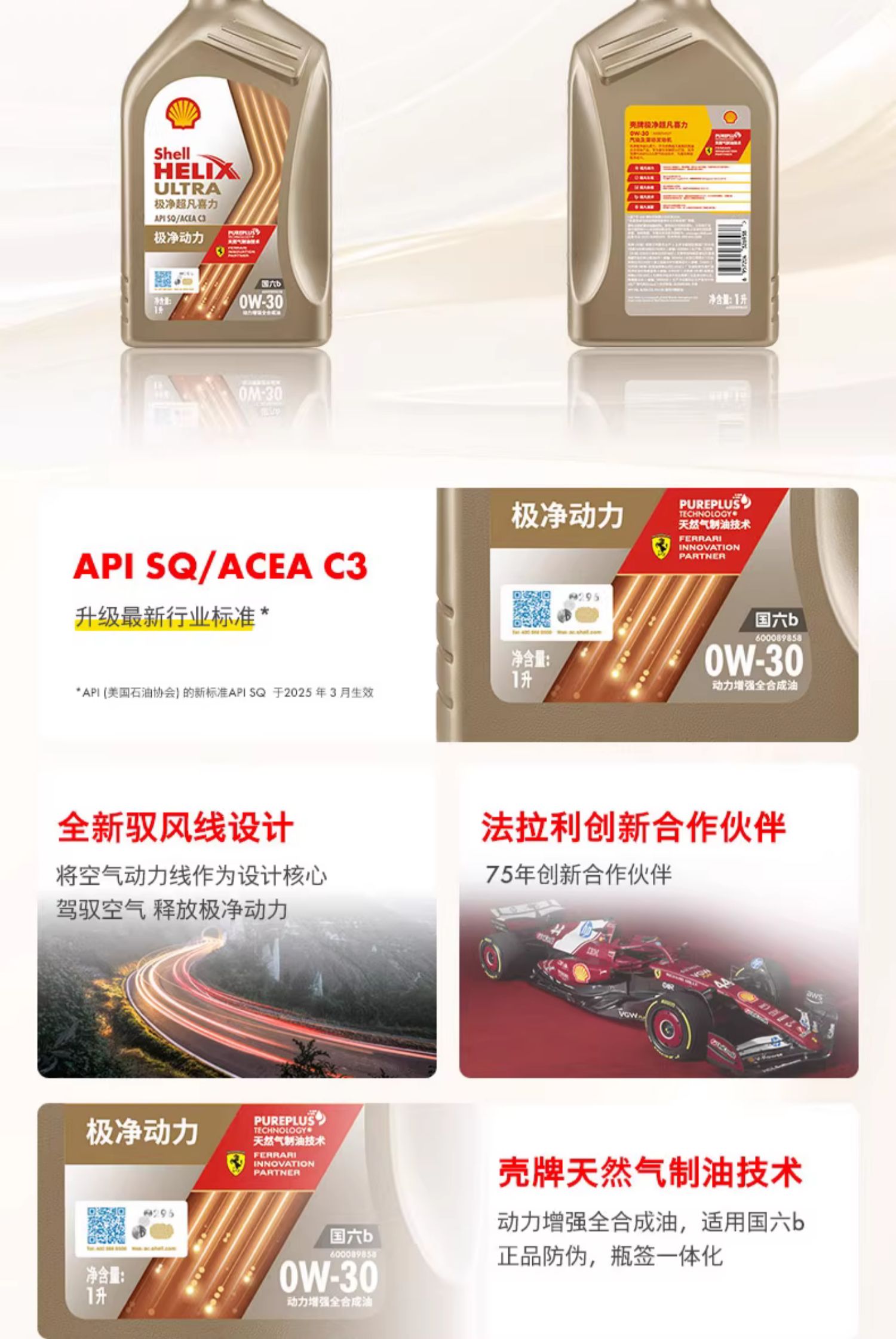 壳牌极净超凡喜力0W30 API SQ、ACEA C3全合成润滑油