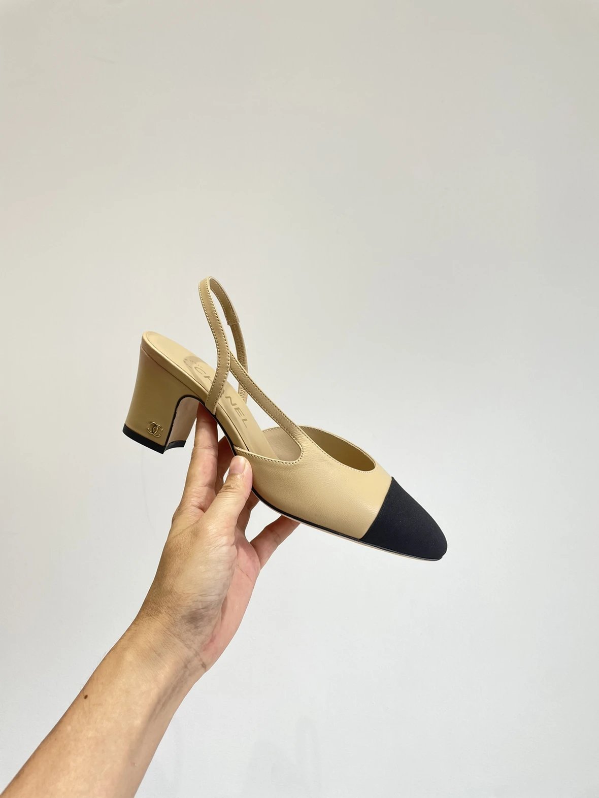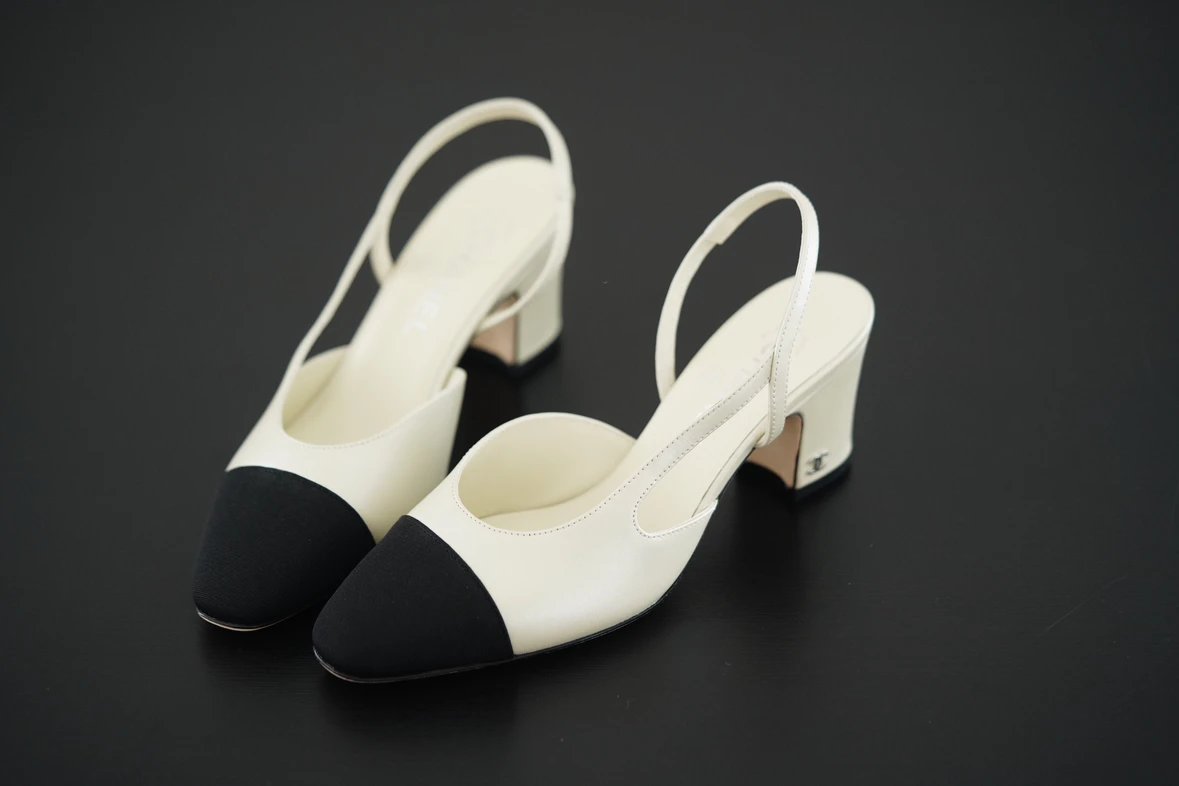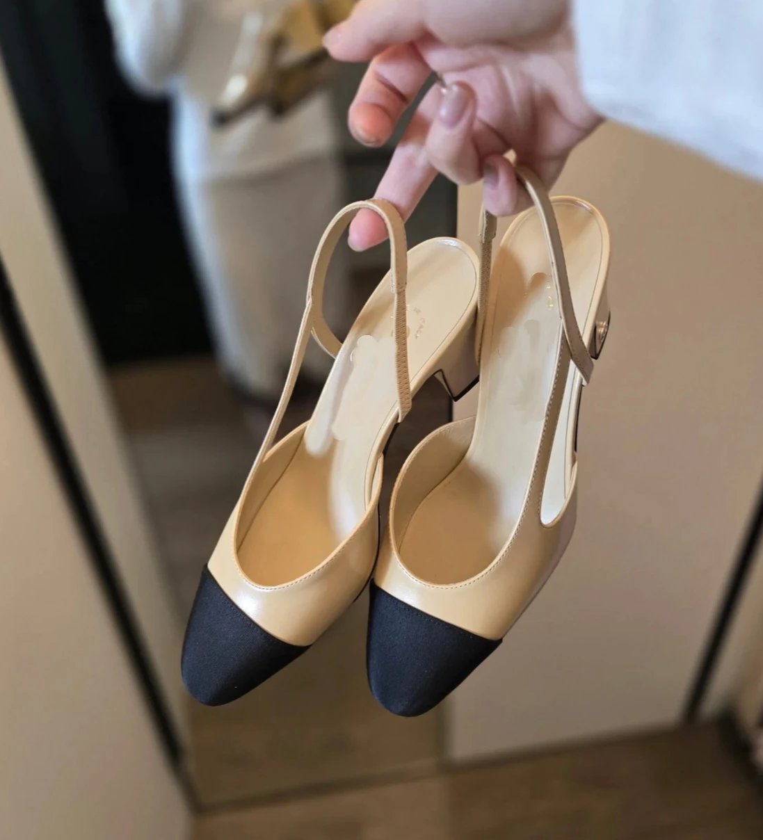 万年经典款 渠道货 经典Slingback粗跟凉鞋 双色单鞋露跟凉鞋
