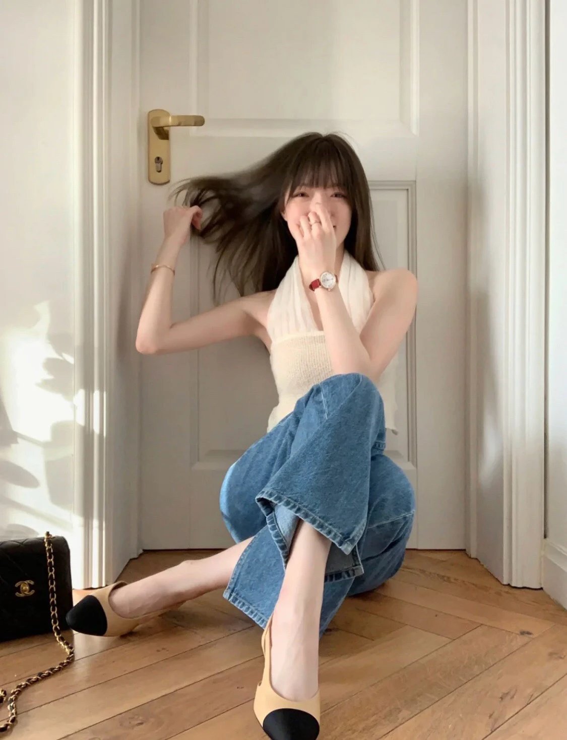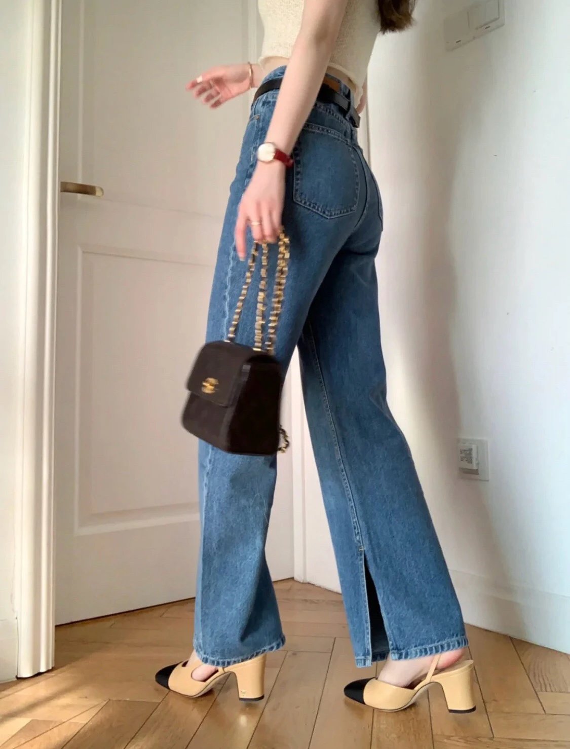 经典剪裁 MM6复古水洗直筒牛仔裤 9分直筒剪裁 四缝线 毛边磨破裤脚