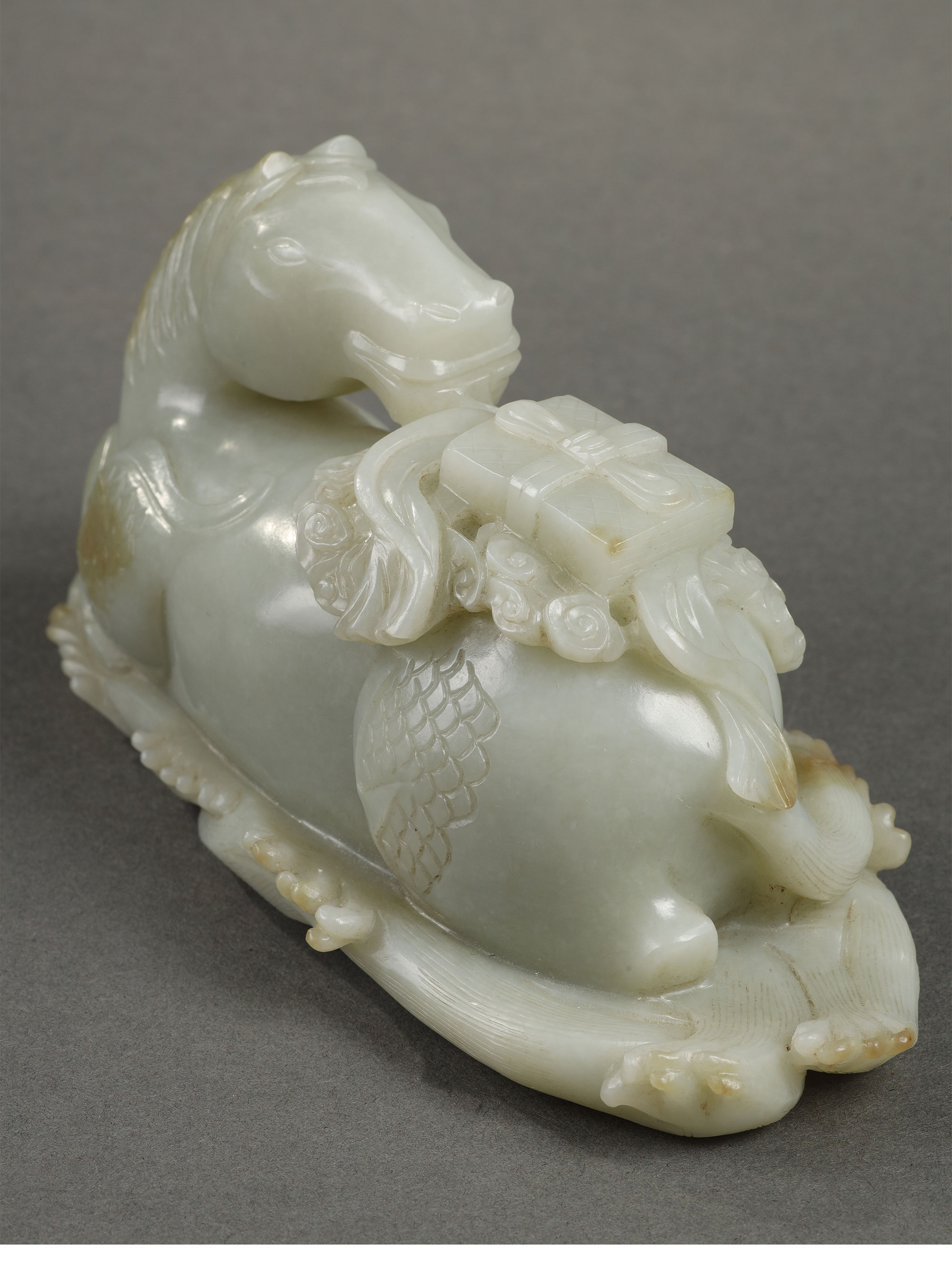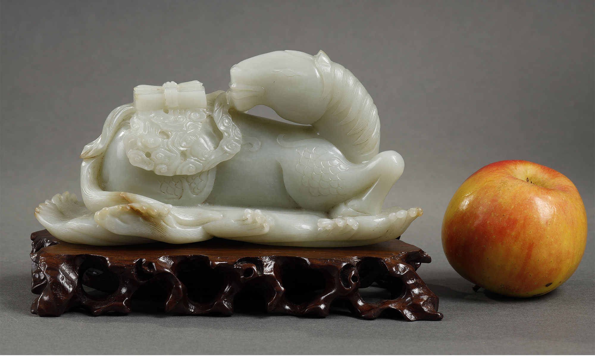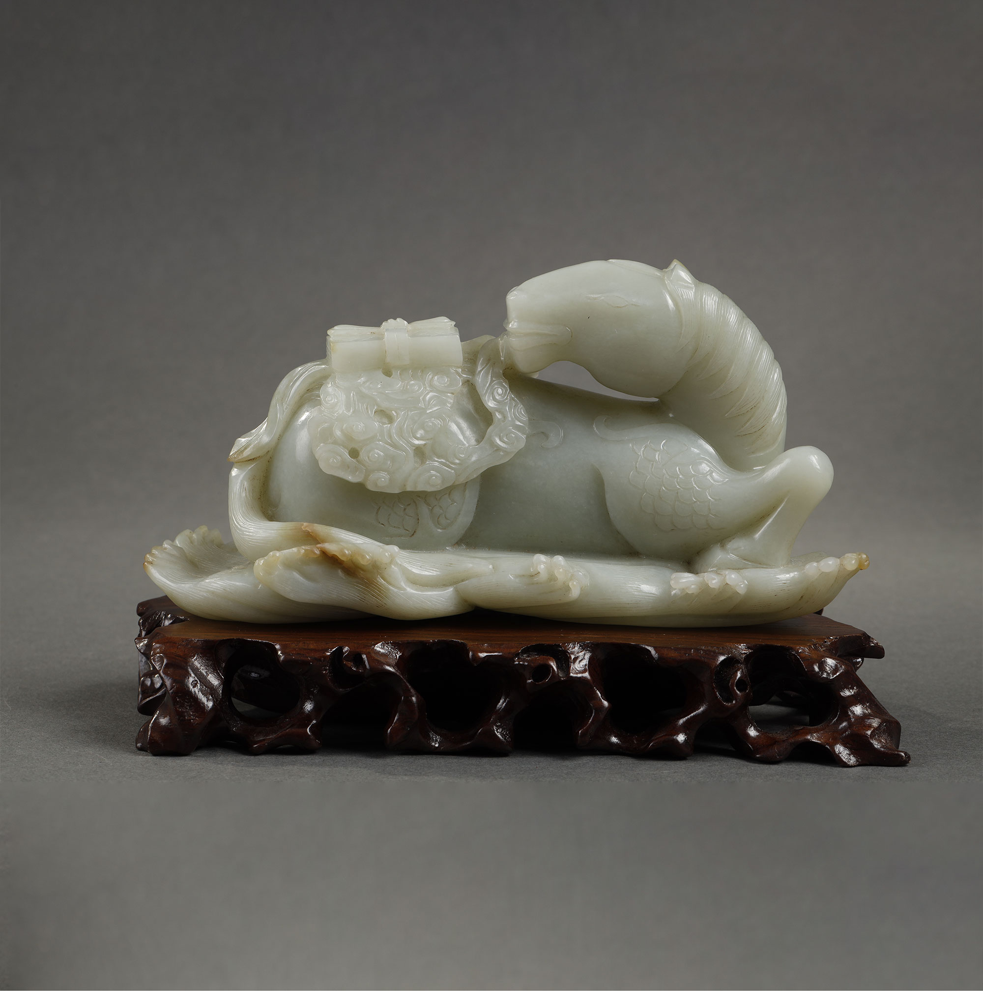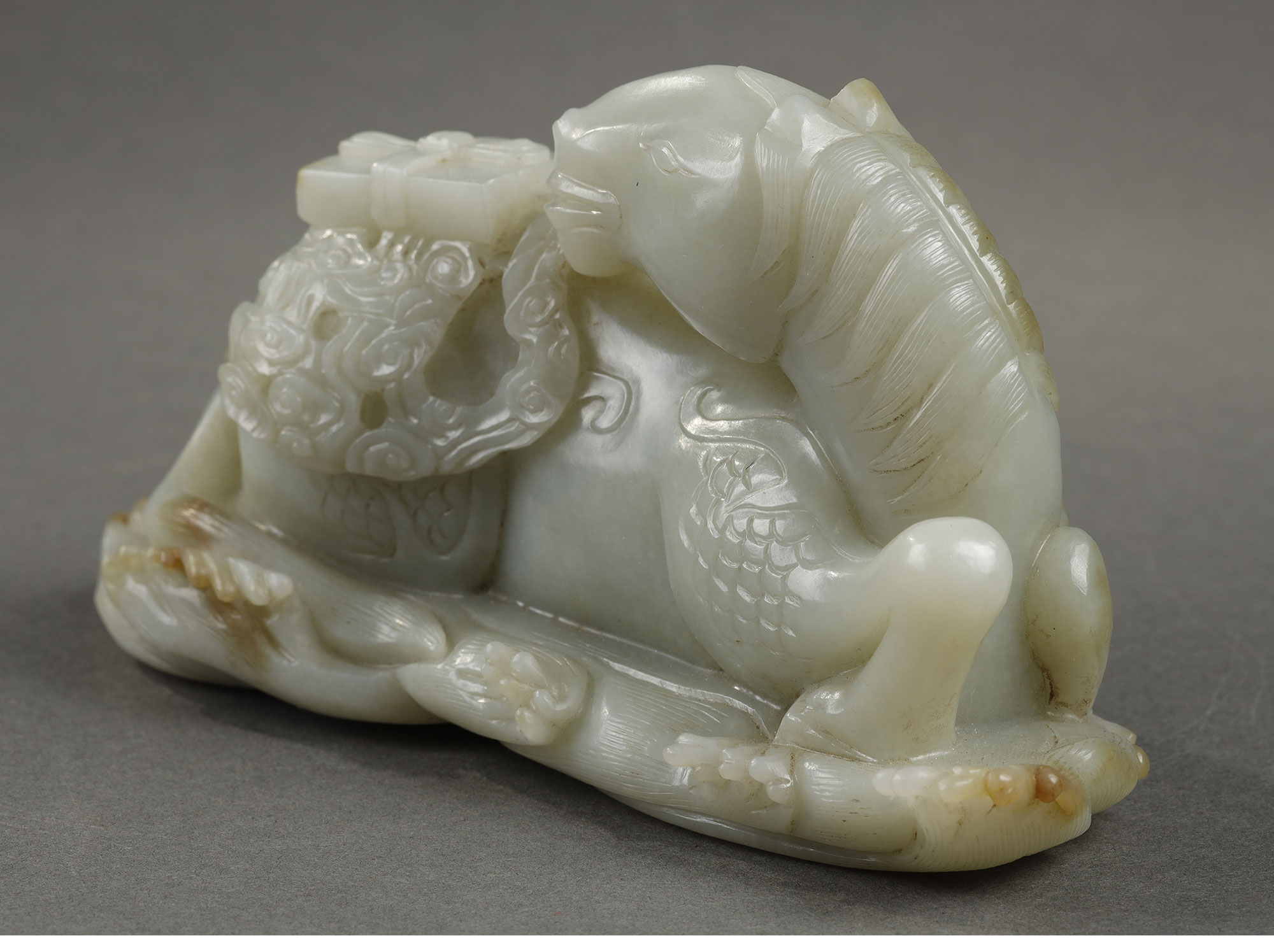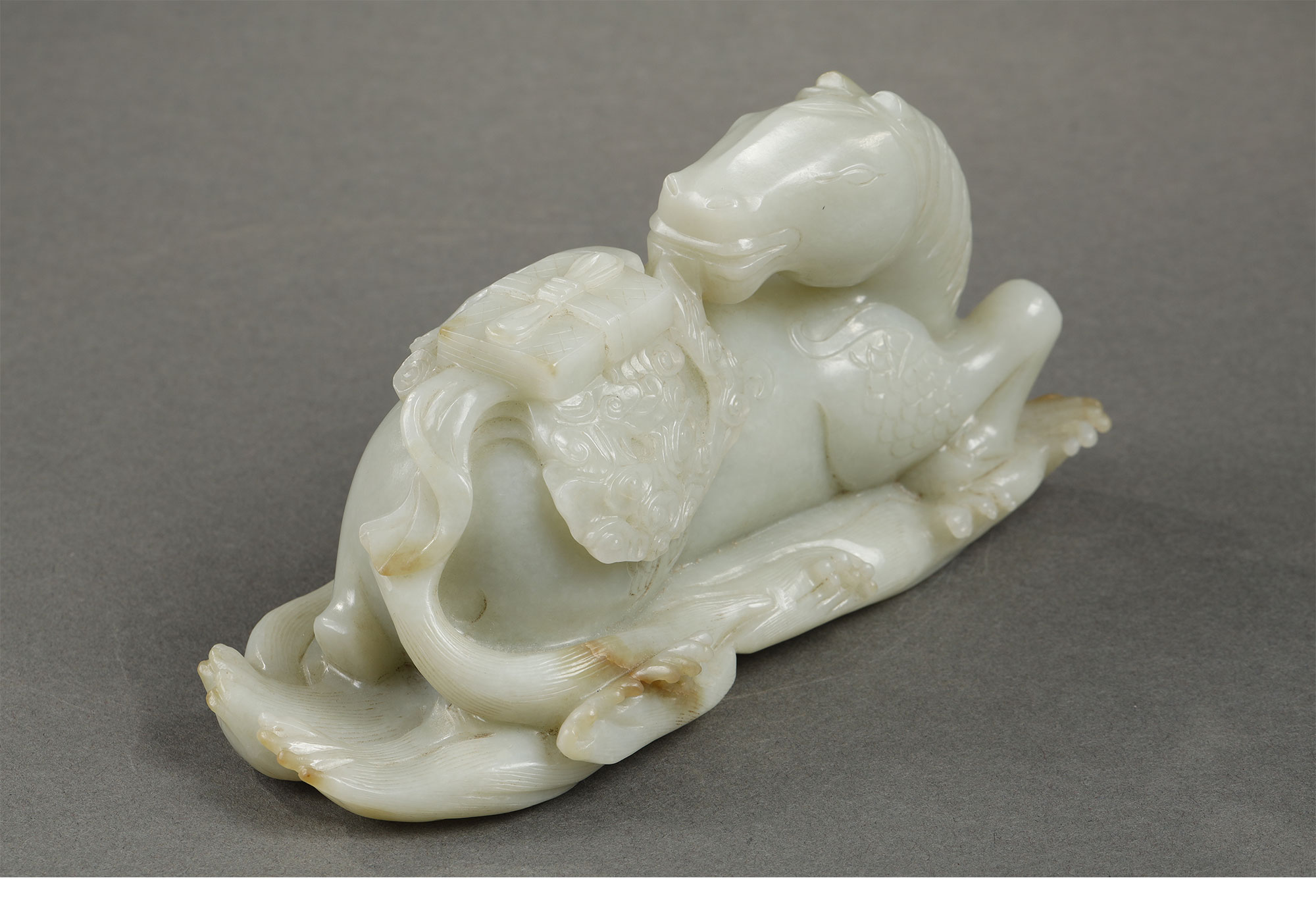 清代中期出品「麟吐玉书」主题白玉雕摆件