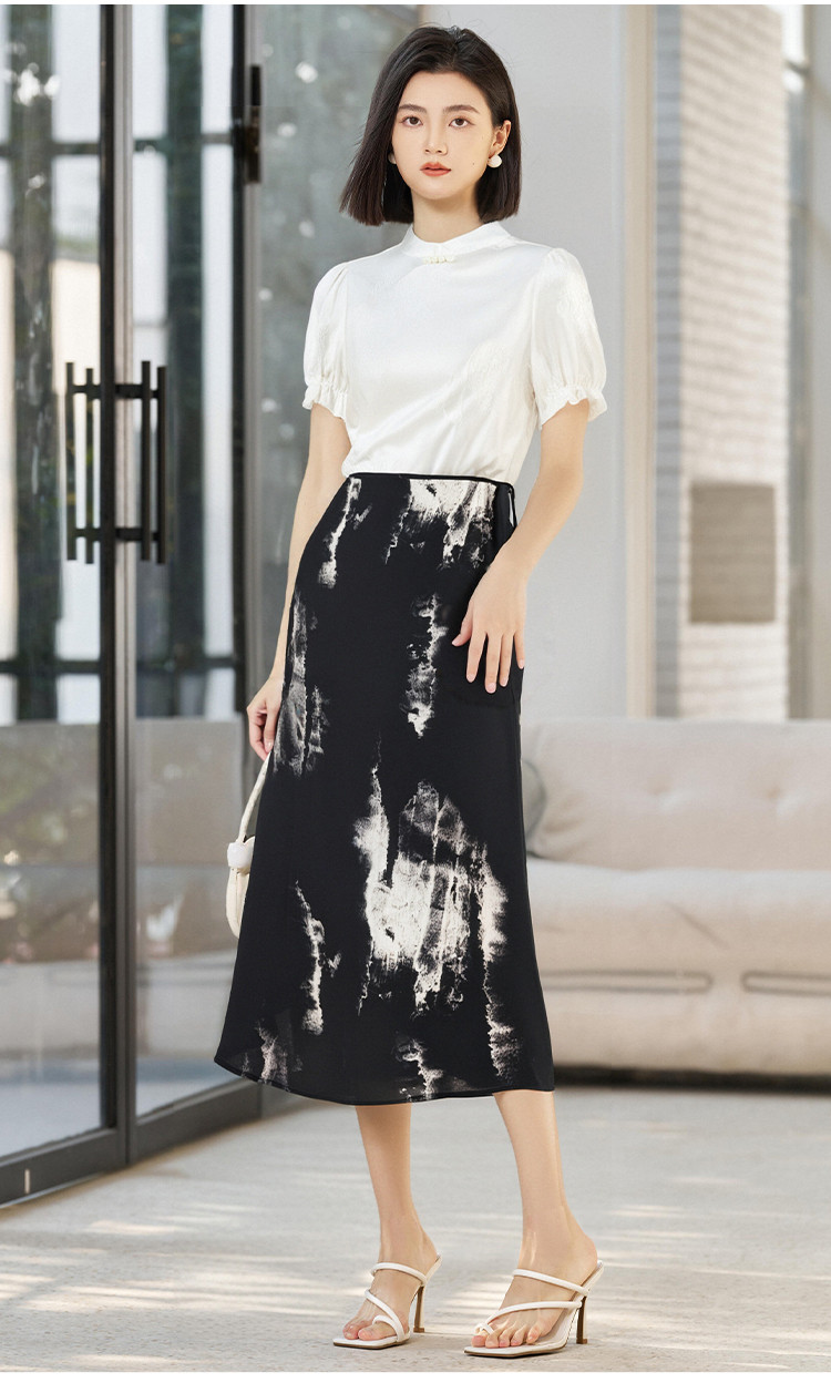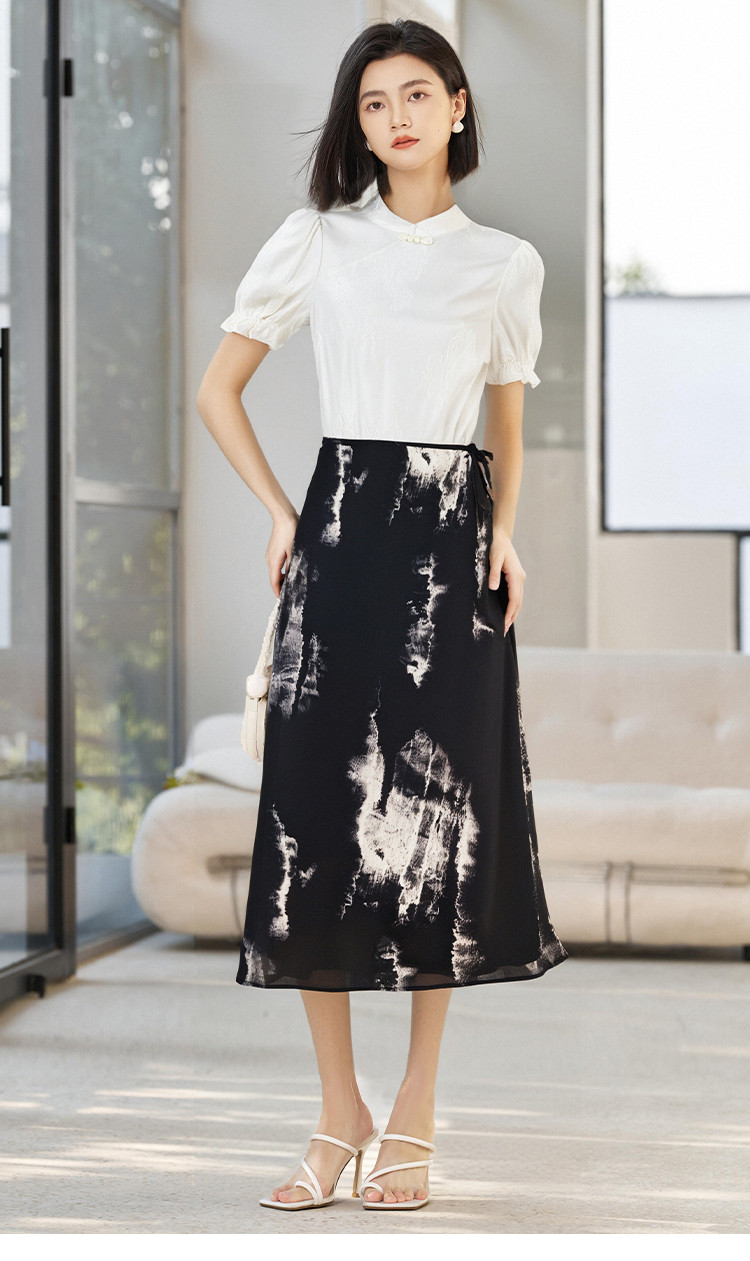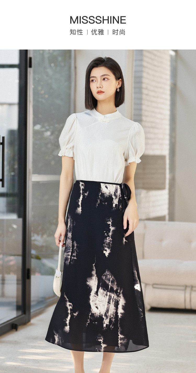 剩S/M/L 【国风提花衬衫水墨印花半裙两件套】新中式女套装夏季高级感气质3890
